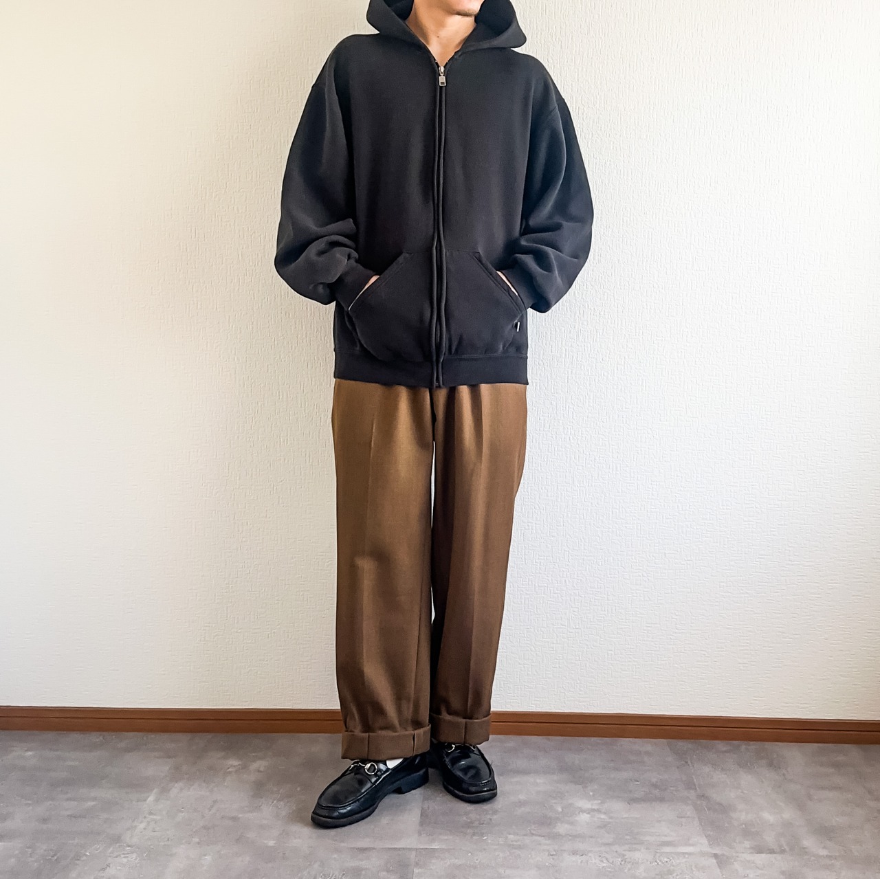 スウェットの中でも意外に見つかりづらいフルジップのスウェットパーカー。