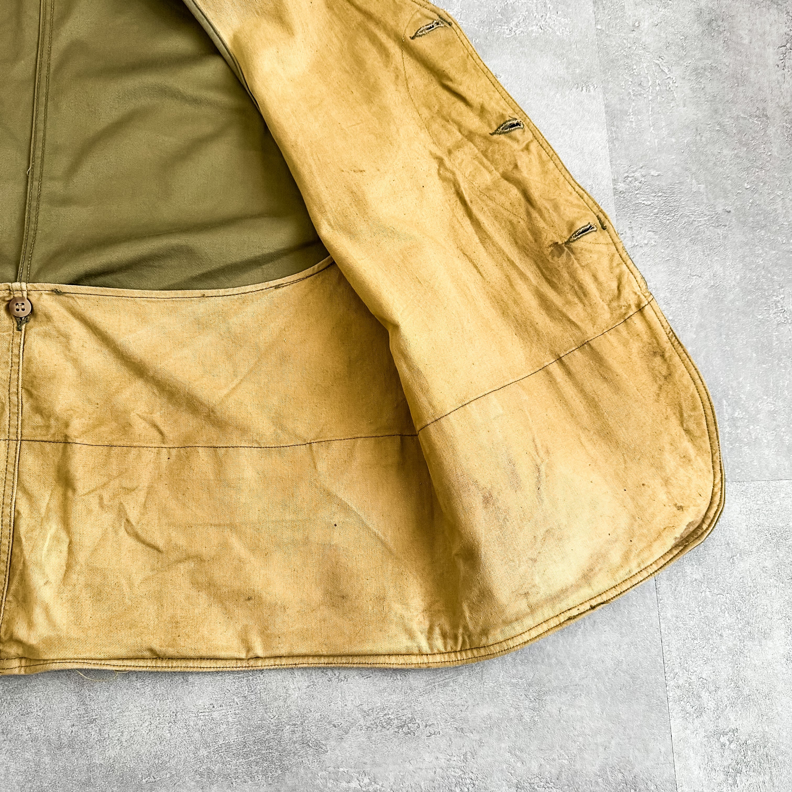 ※※画像のように表面に少し汚れはあるものの、タグや生地から見る限りウォッシュの回数も少なく着用頻度も少なかったであろうグッドコンディションな一着です。裏面には表面よりも汚れがありますが着用時には見えませんので気にならないかと。ヴィンテージのハンティングウェアはダメージや汚れが多い物がほとんどですので、かなり綺麗な部類に入るかと思います。古着に理解のない方のご購入はお控えください。