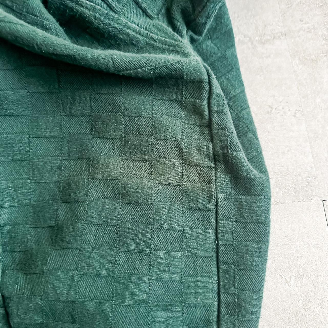 意外に見かけないグリーンカラーの同色のブロックチェック柄◎