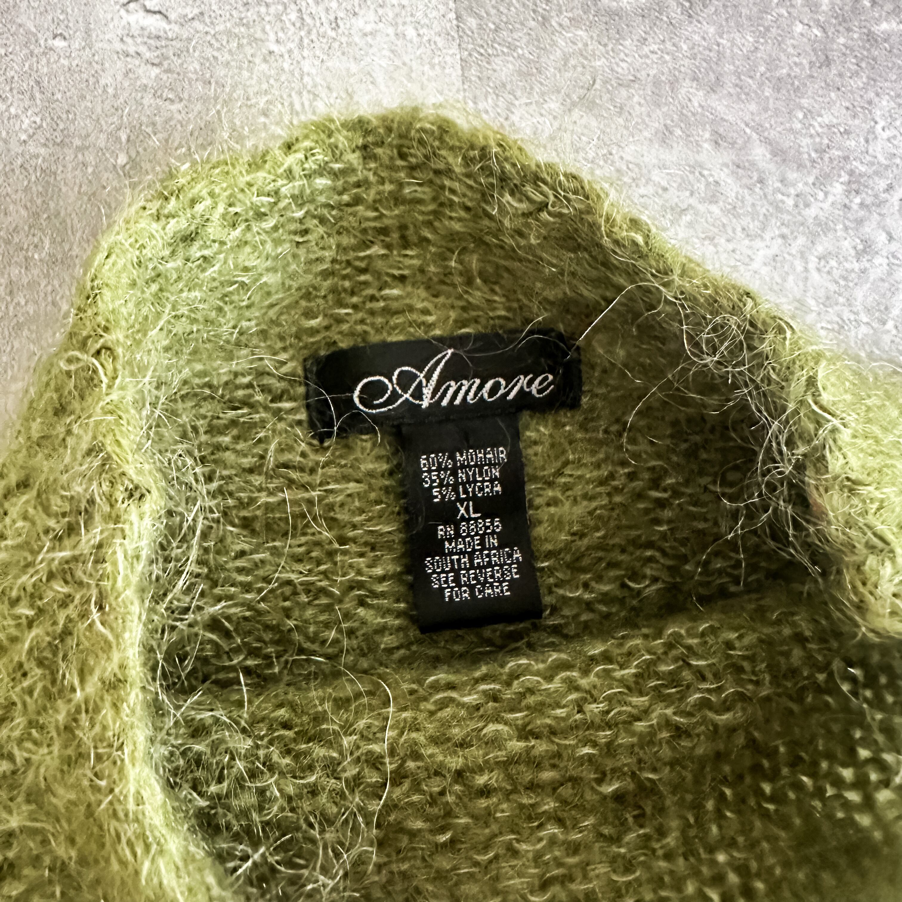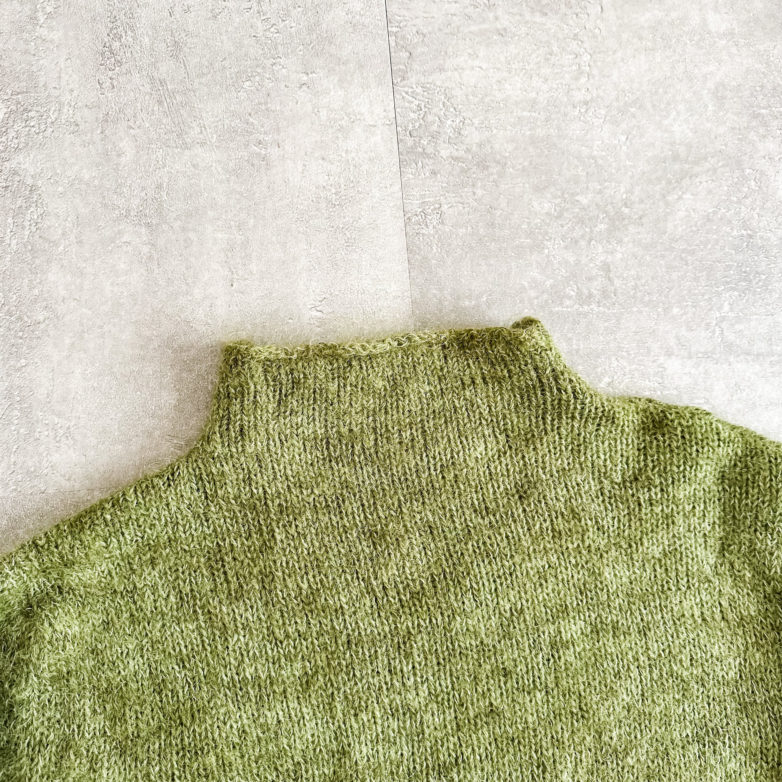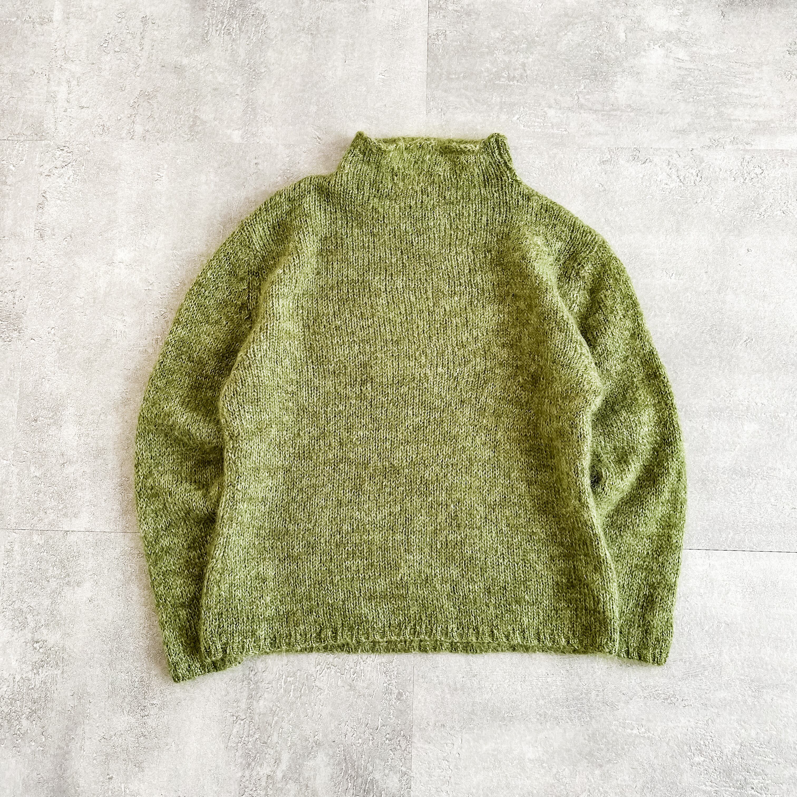 絶妙なグリーン系のカラーリングに、モヘアでは珍しいモックネックデザイン。