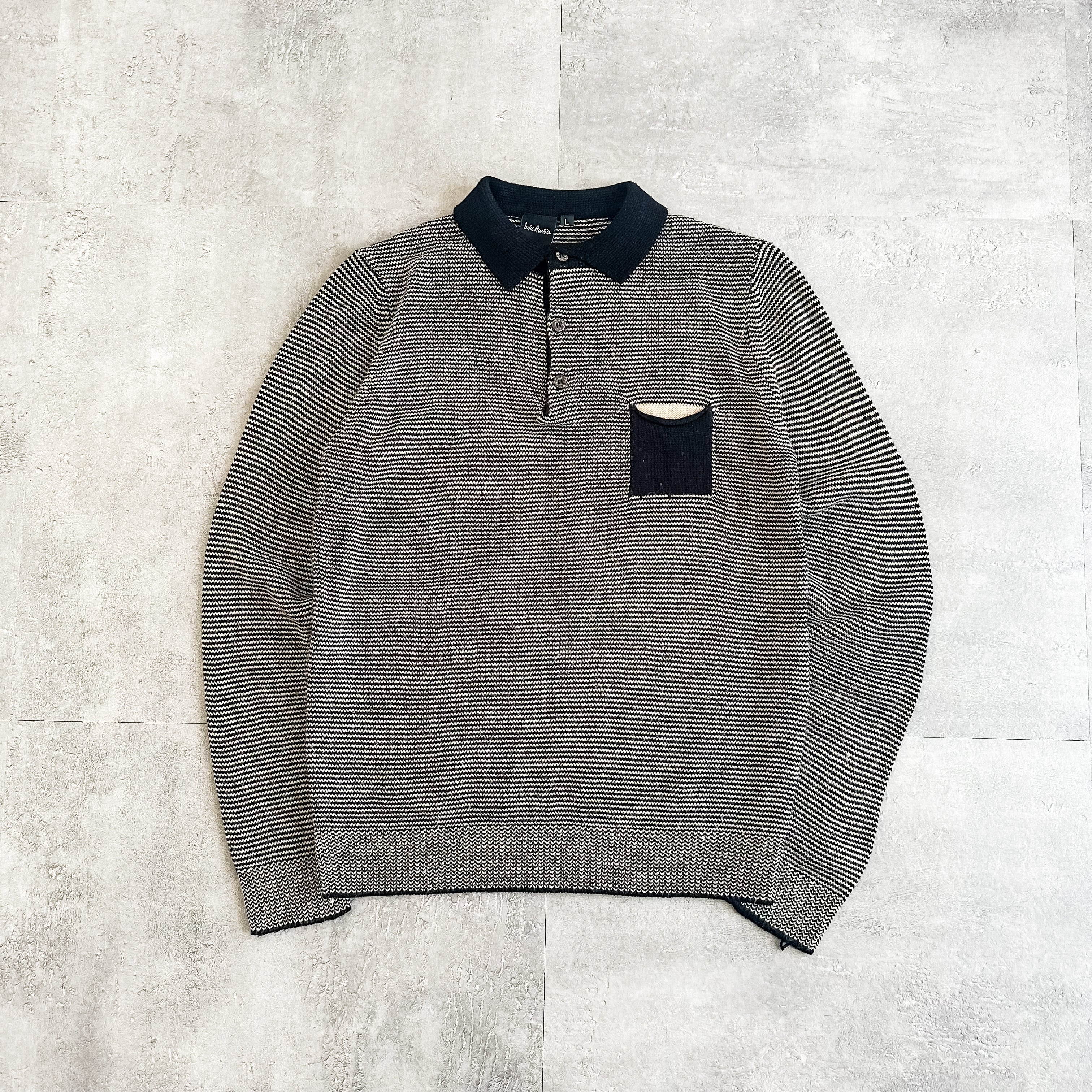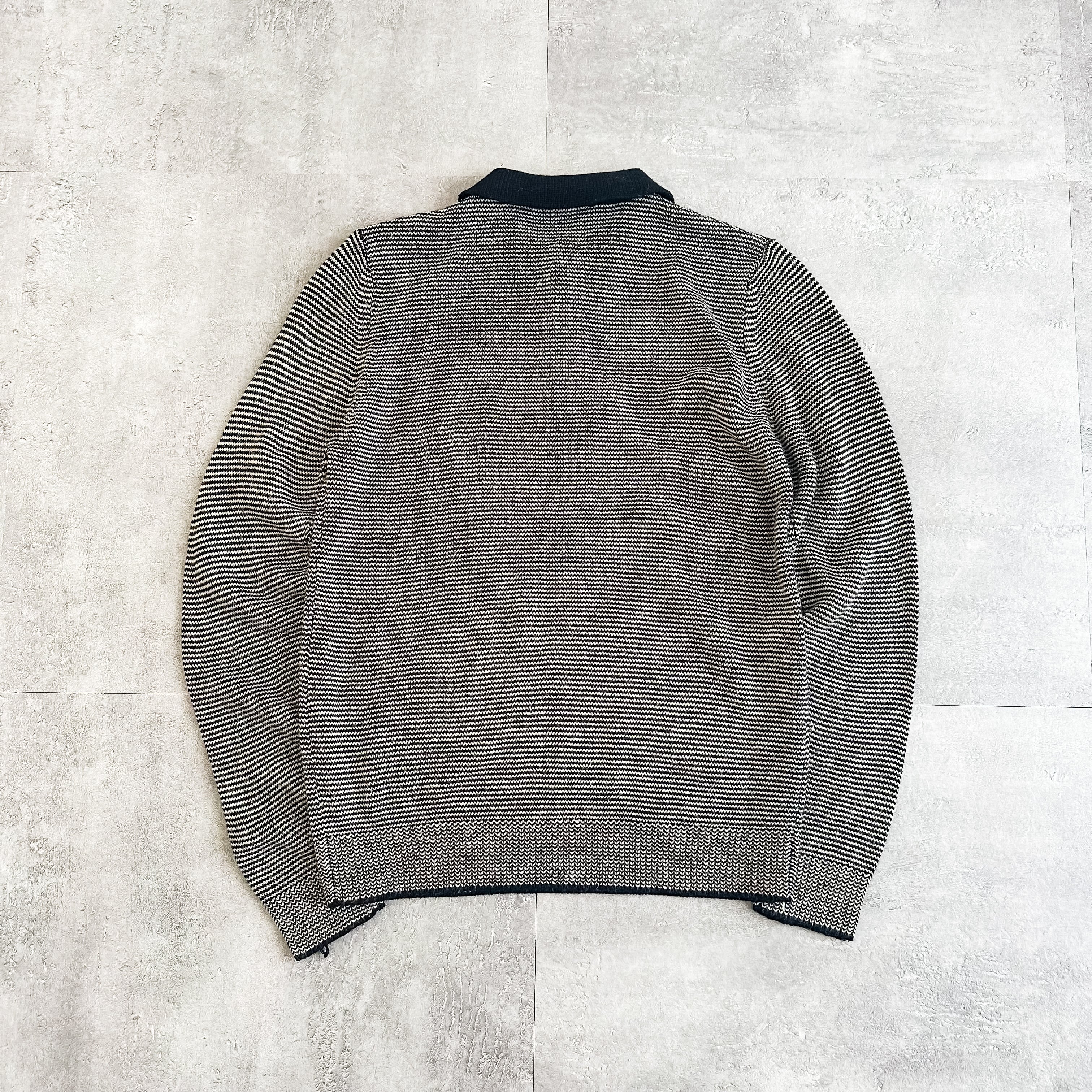 1990's border pattern one pocket collared acryl sweater