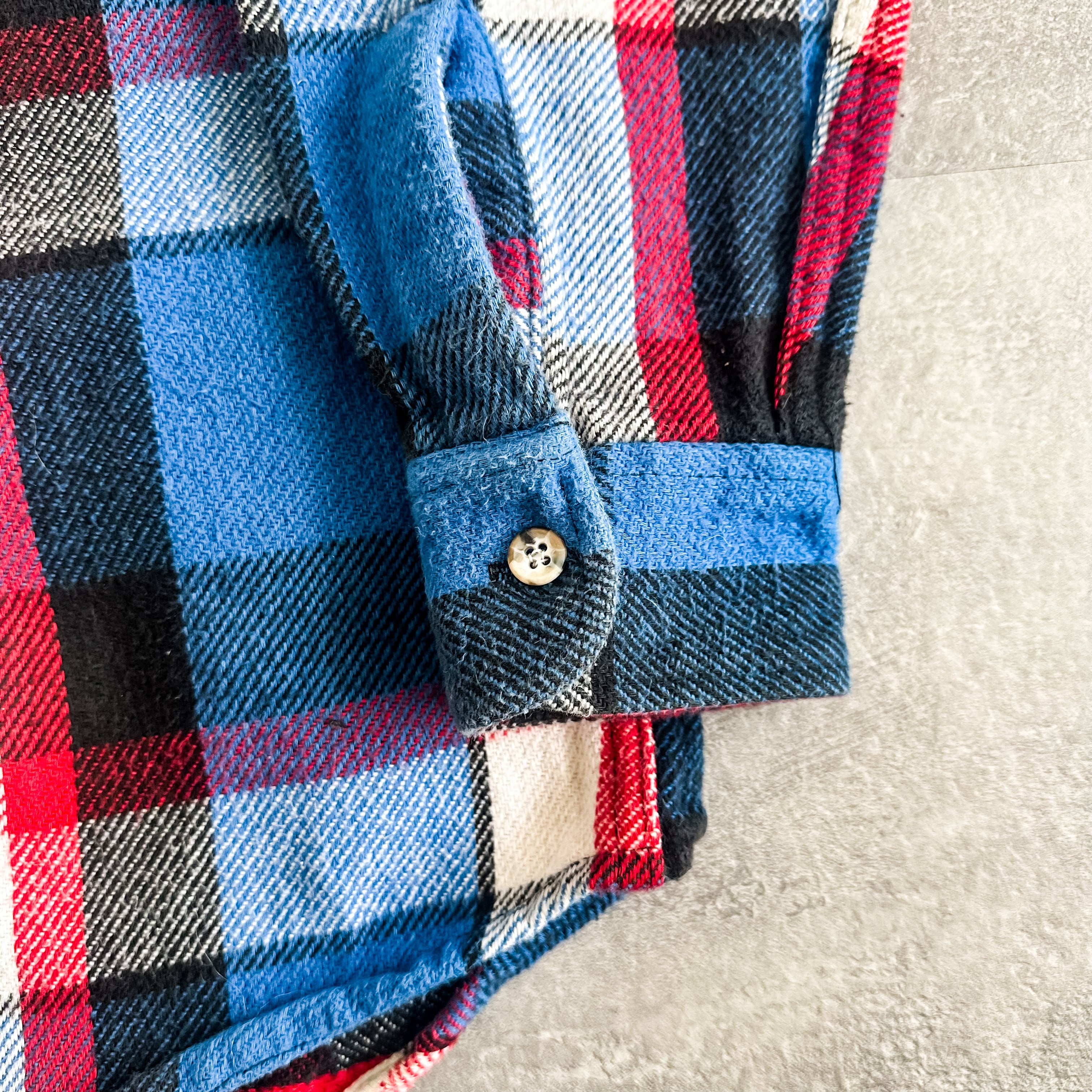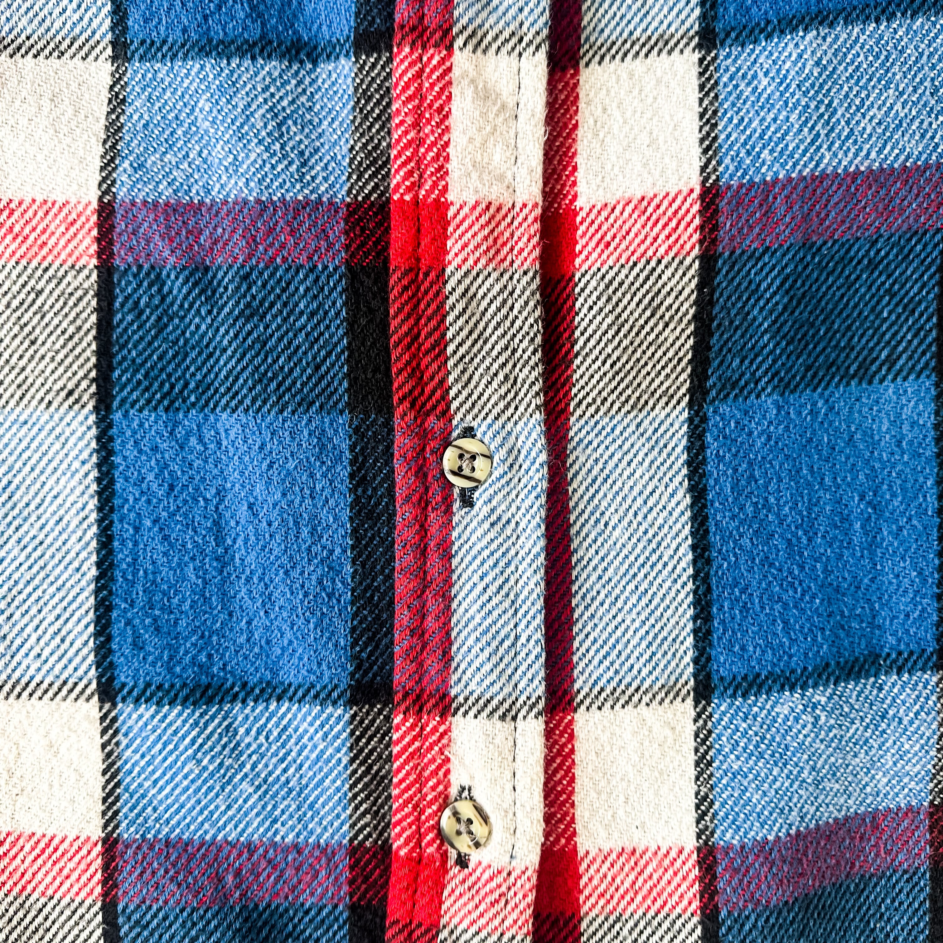※※古着故の多少の着用感や画像のような汚れがございます。袖のボタンが欠損しておりましたので、少し色味は異なりますが同年代の"ST JOHN'S BAY"のネルシャツのボタンを使用しております。古着に理解のない方のご購入はお控えください。
