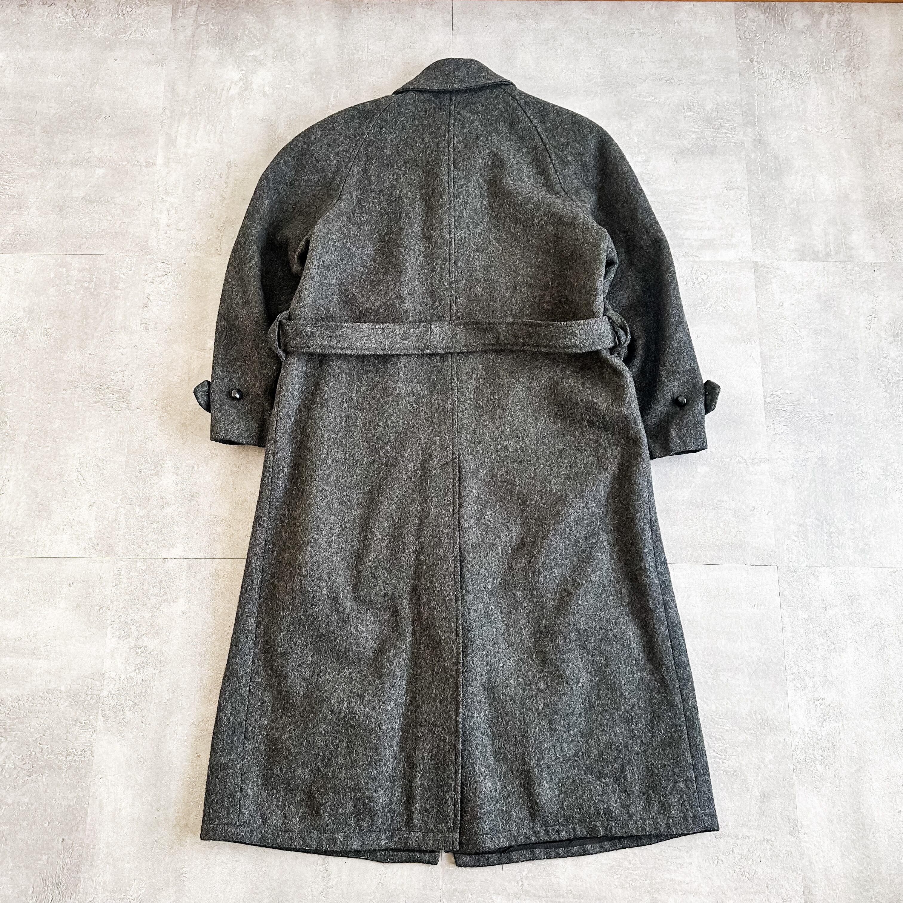 品のあるグレーカラーにトレンチでは希少種なウール素材、そしてルックスも抜群な一着です。