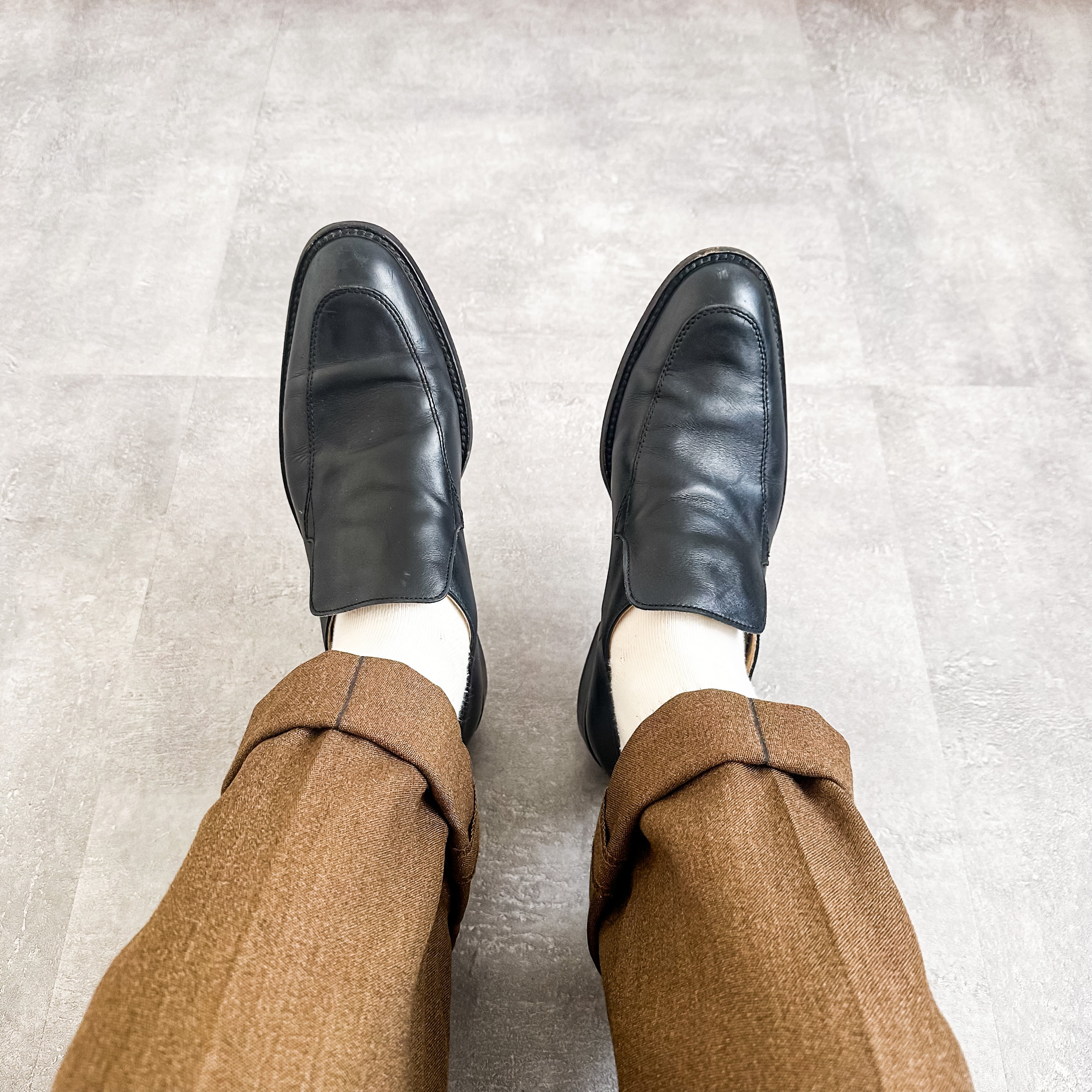 レザーの質感やしっかりとした重量感などこだわりを感じる一足。