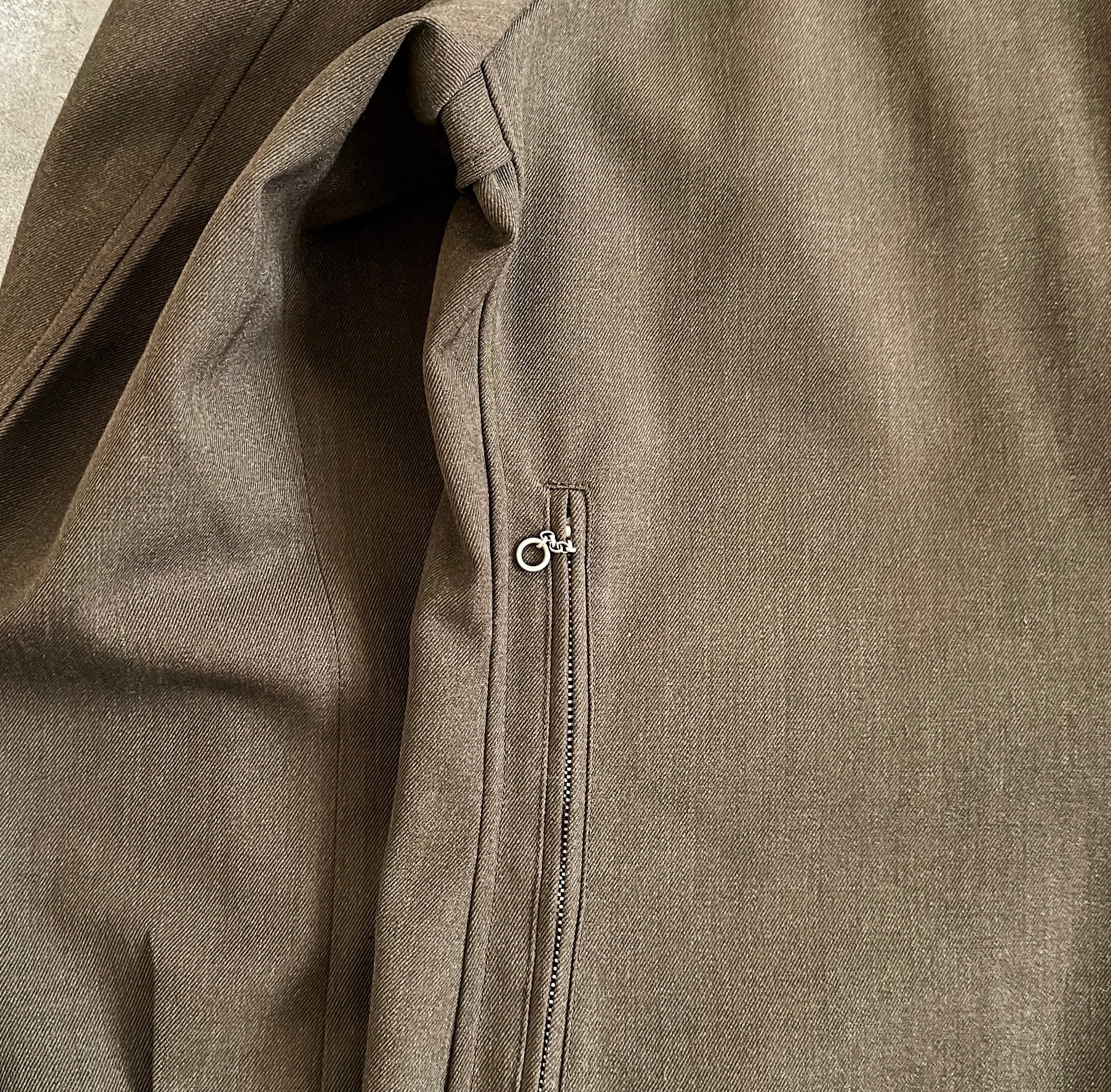 ハンティングジャケットで綺麗なシルエットなのがドレスの製造を得意とするメーカーらしいところですね。
