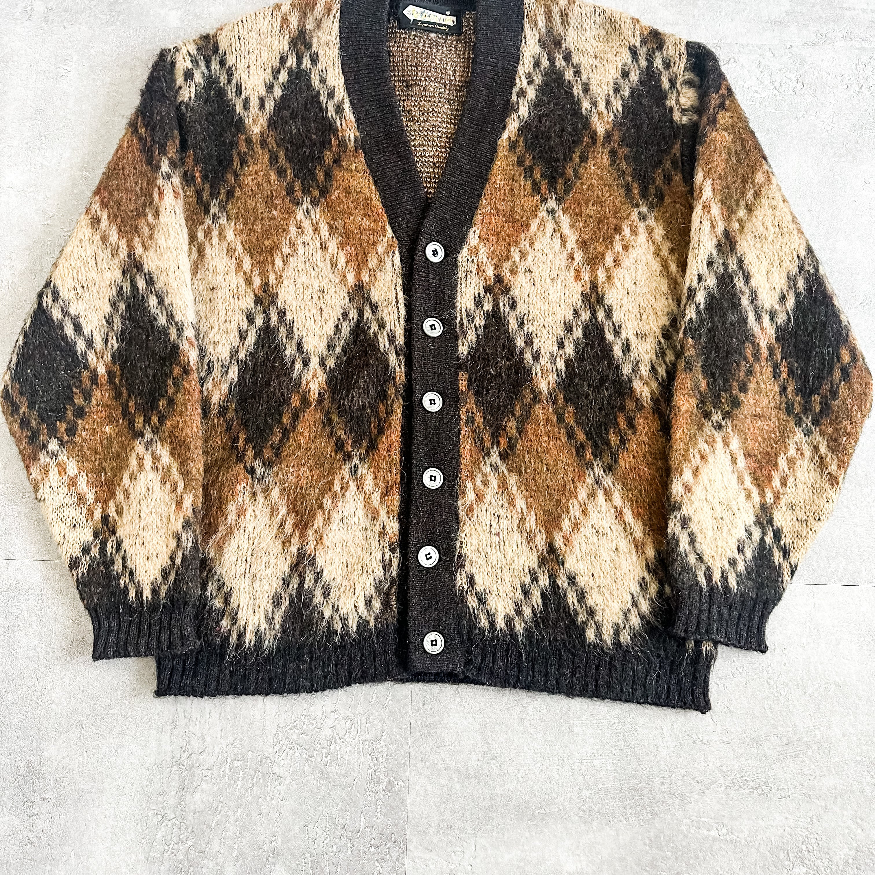 Vintage 1960's~ "VANIA" argyle pattern mohair knit cardigan