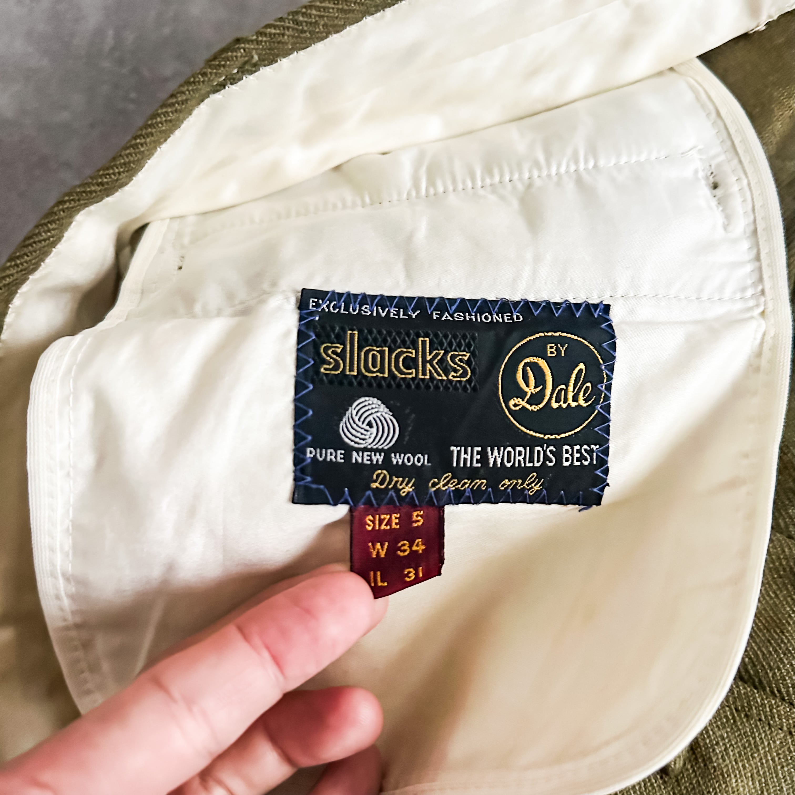 Vintage 1970's "DALE" olive stripe pattern wool slacks pants