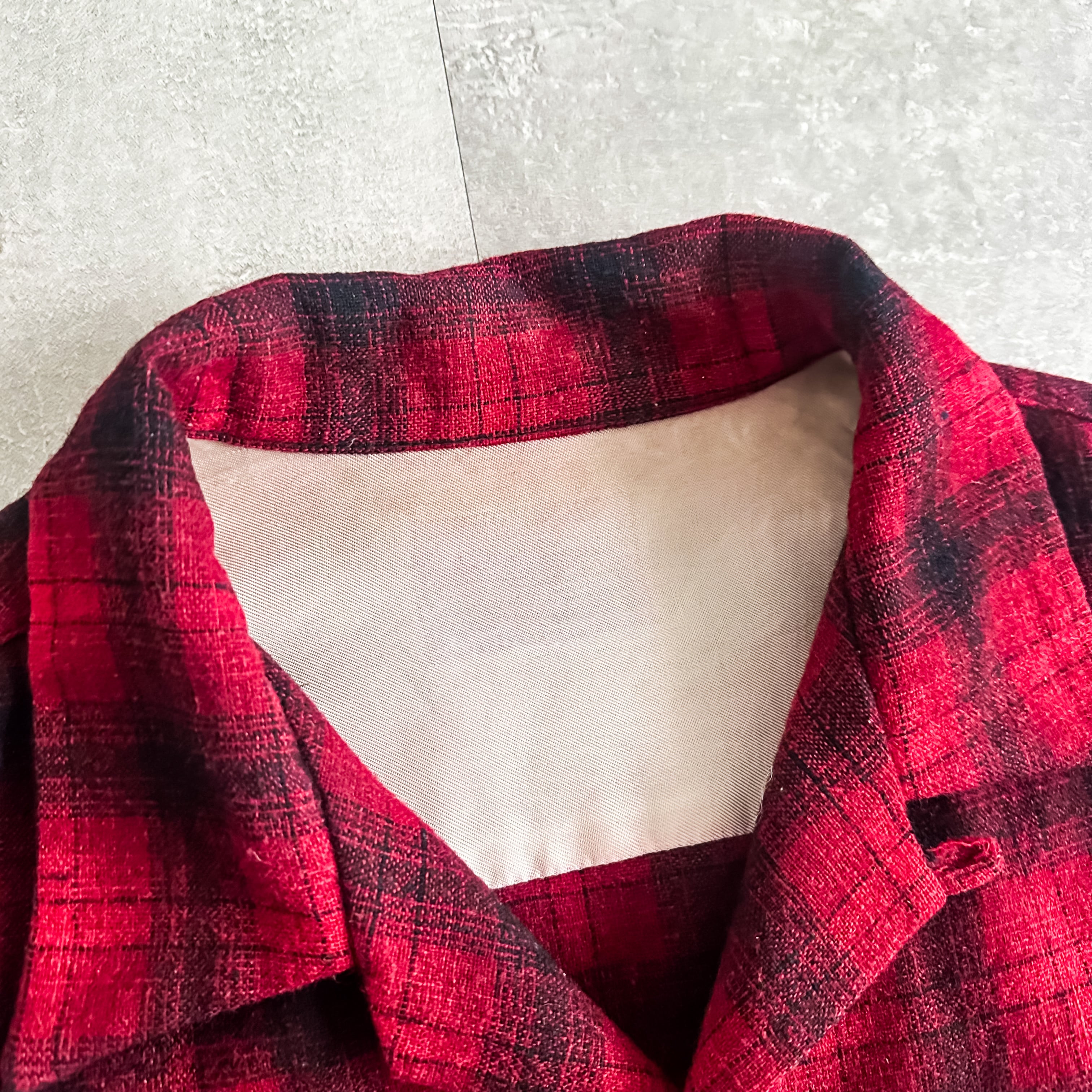 Vintage 1960's plaid pattern roop collar wool shirt