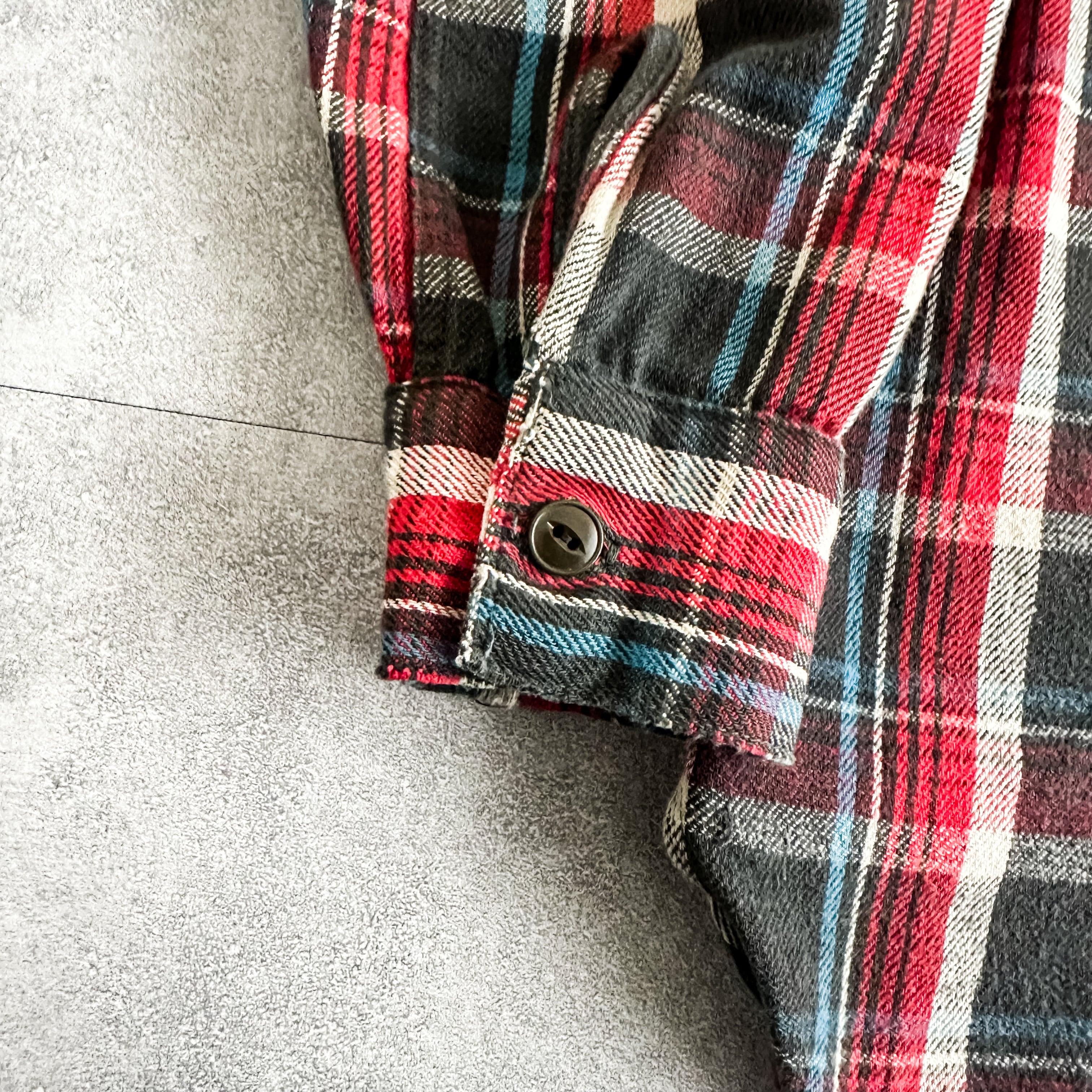 質感の素晴らしいヘビーフランネル素材に、配色の良いチェック柄がクールな一枚です。