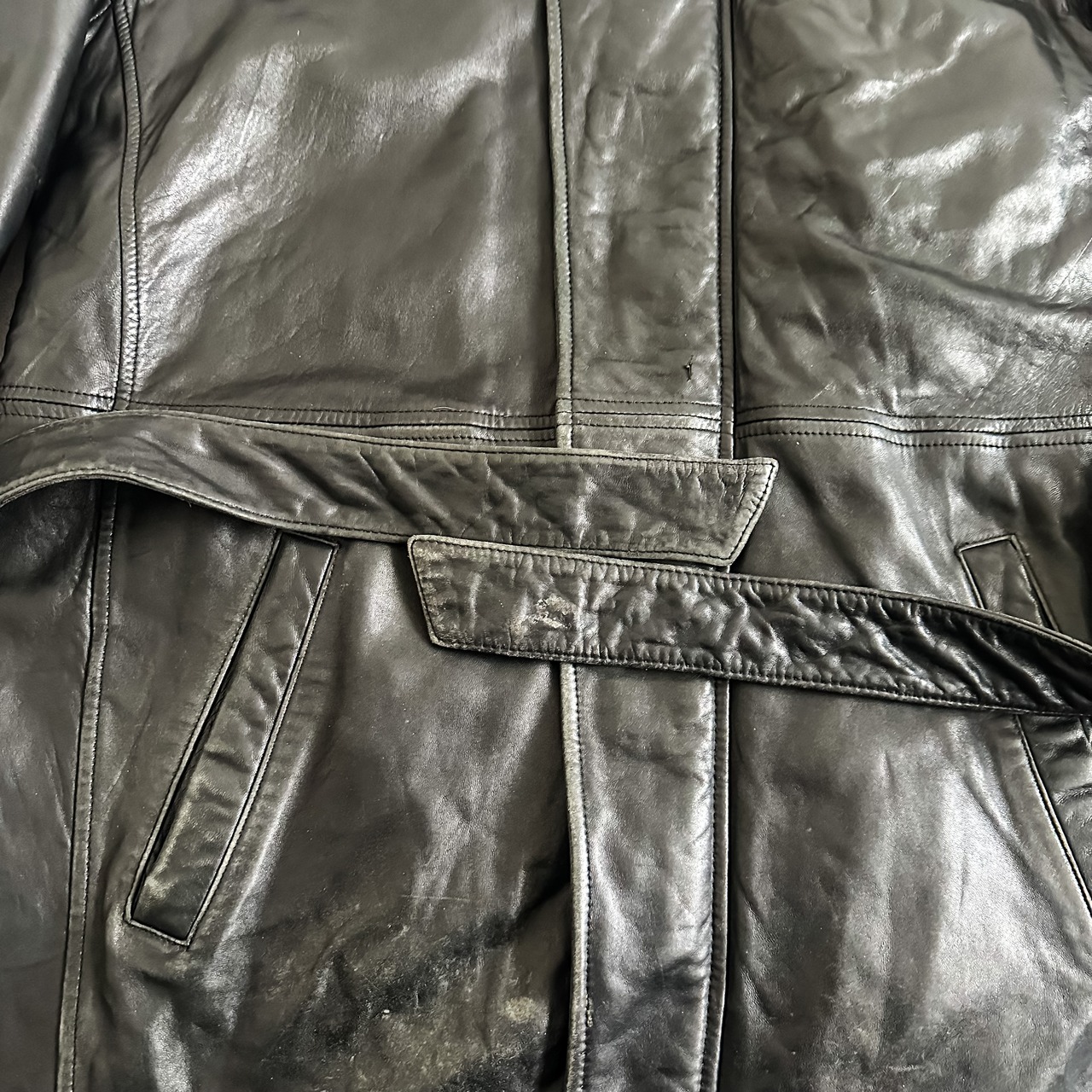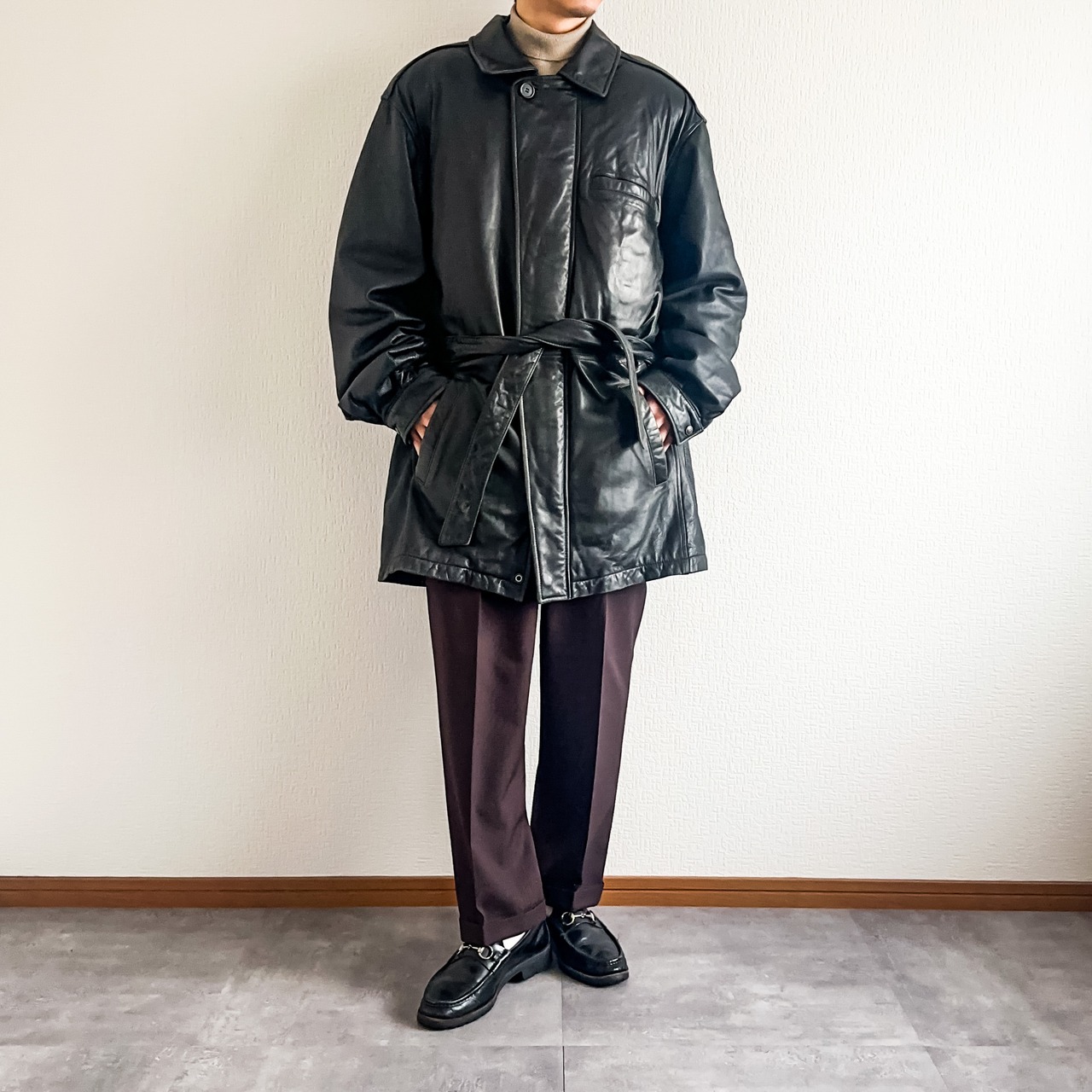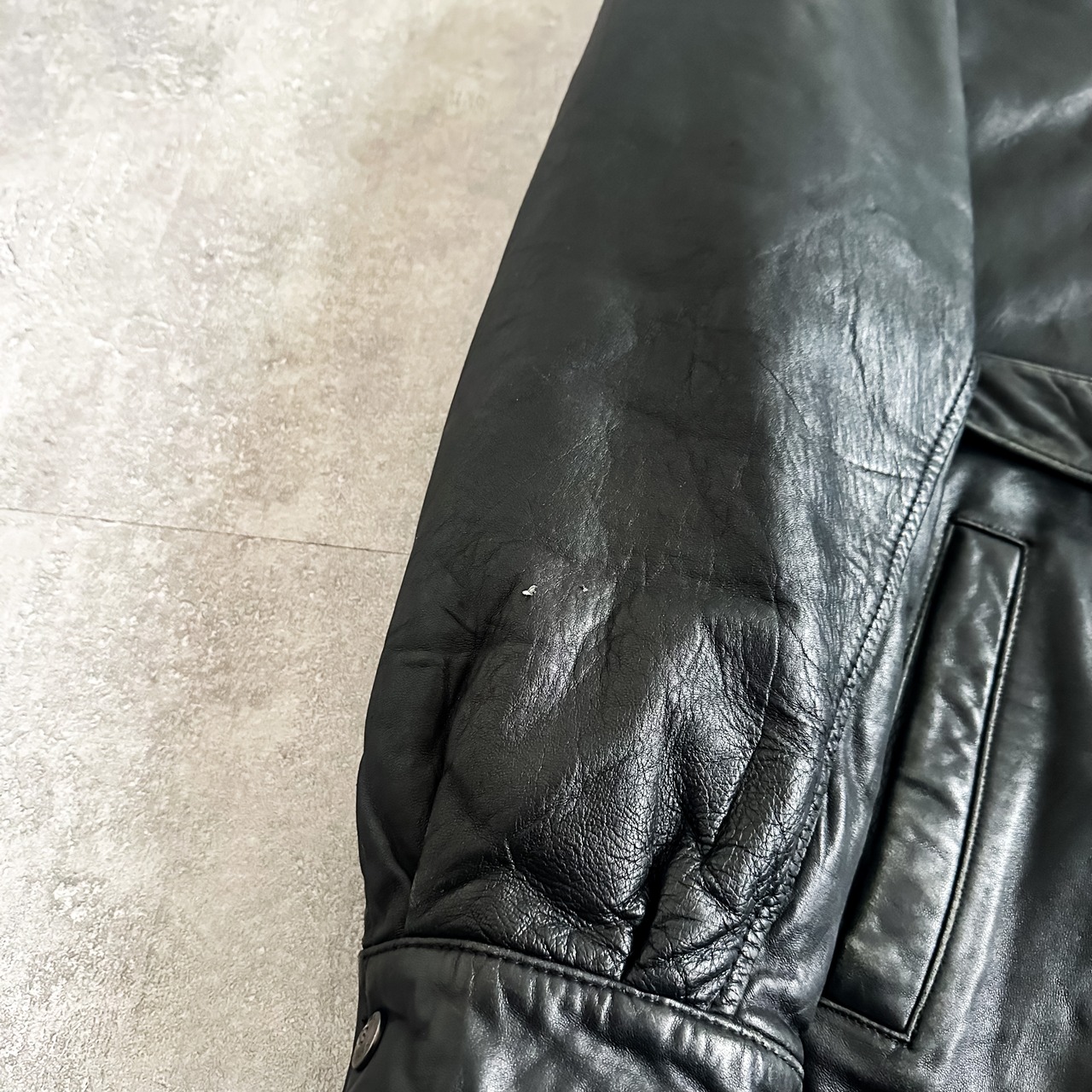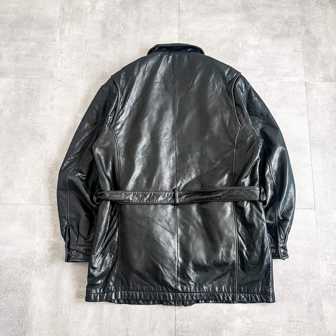 ブラックカラーに柔らかなレザーが使用された一着。