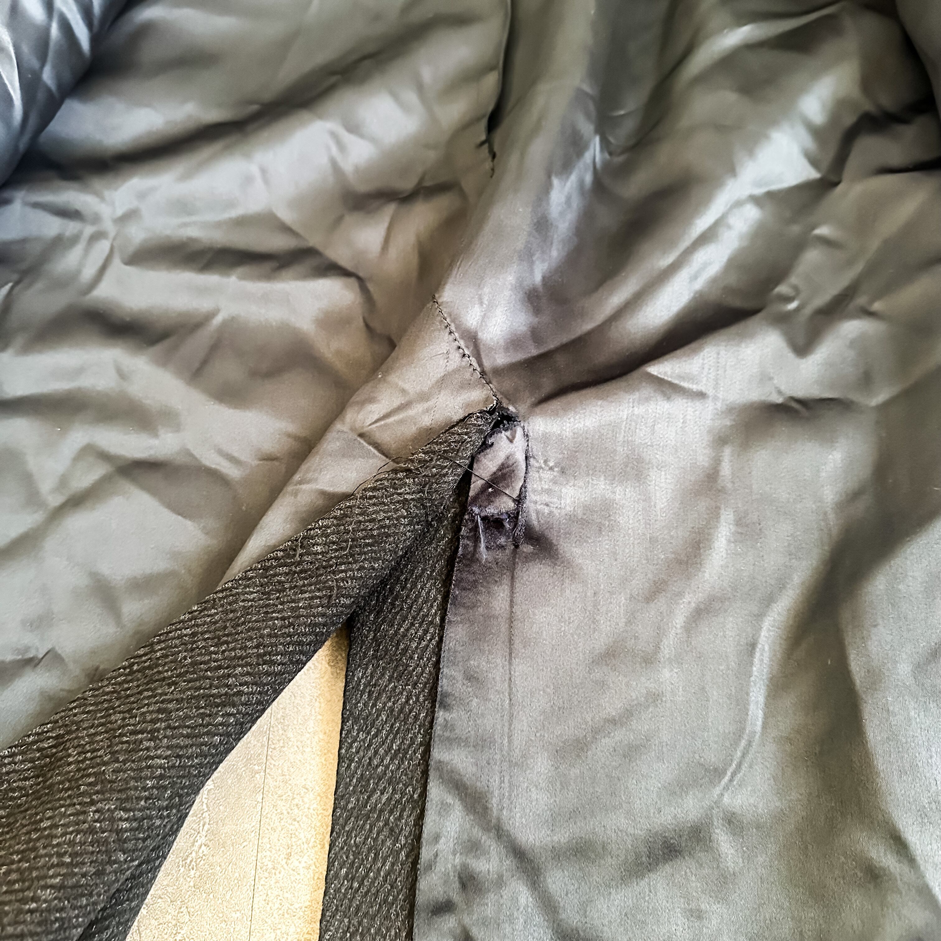 ※※古着故の多少の着用感や画像のようなスレやアームに小さいステッチ抜け、裏面にステッチ抜け、襟元のタグに欠損がございます。古着やビンテージに理解のない方のご購入はお控えください。