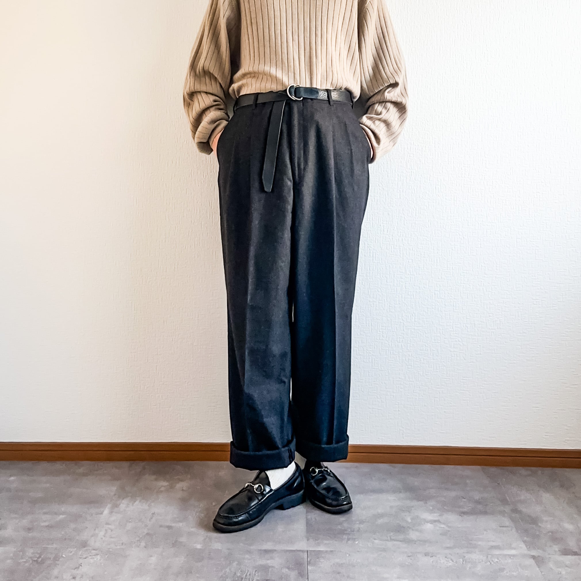 ツータックで太もも周りは比較的ゆったりめで、裾にかけて少しテーパードのかかった絶妙なシルエット。
