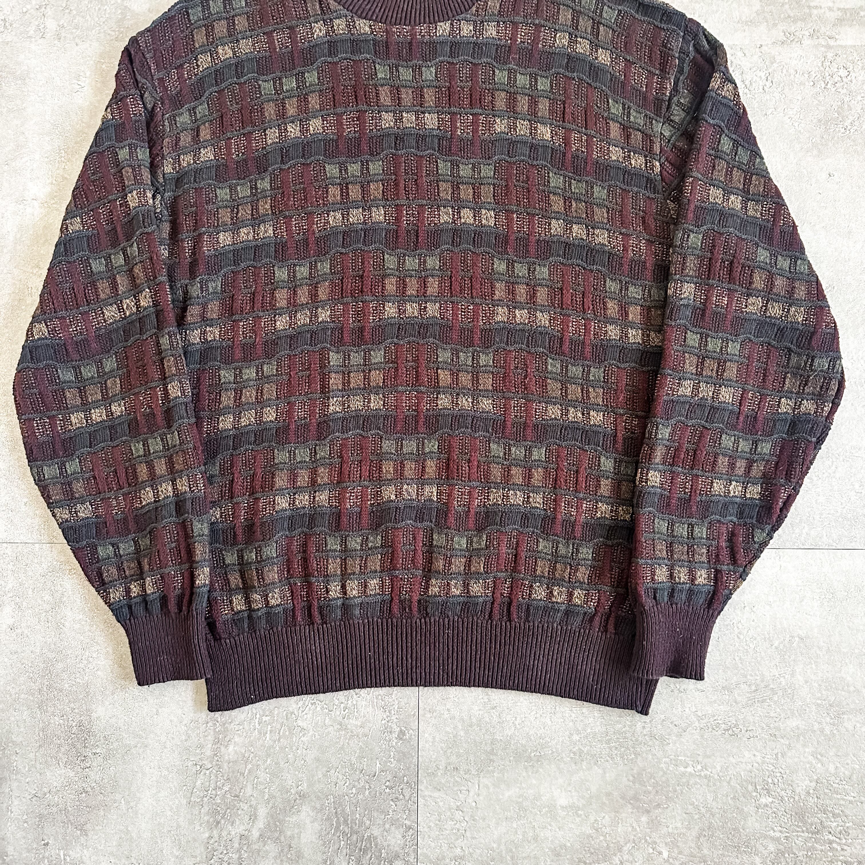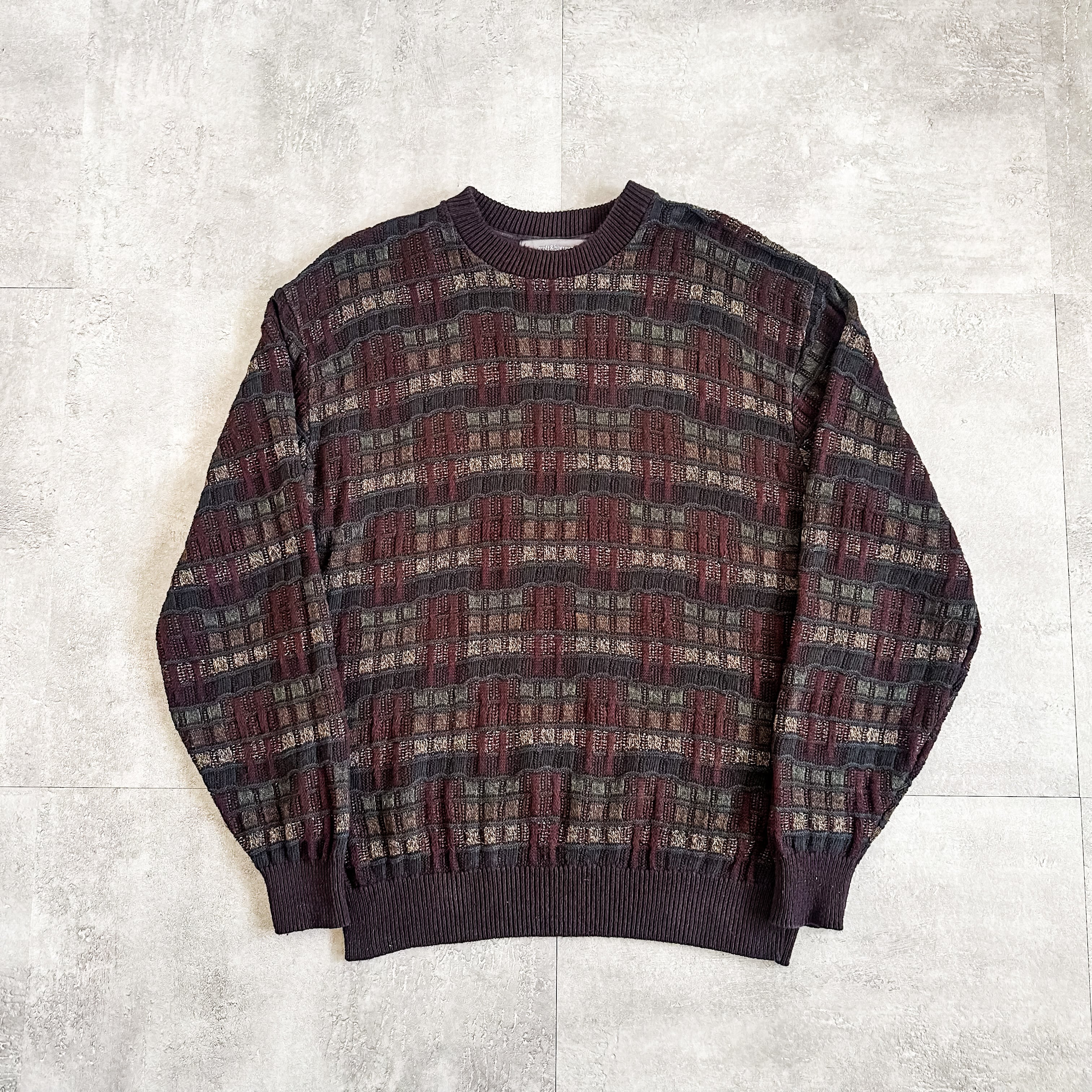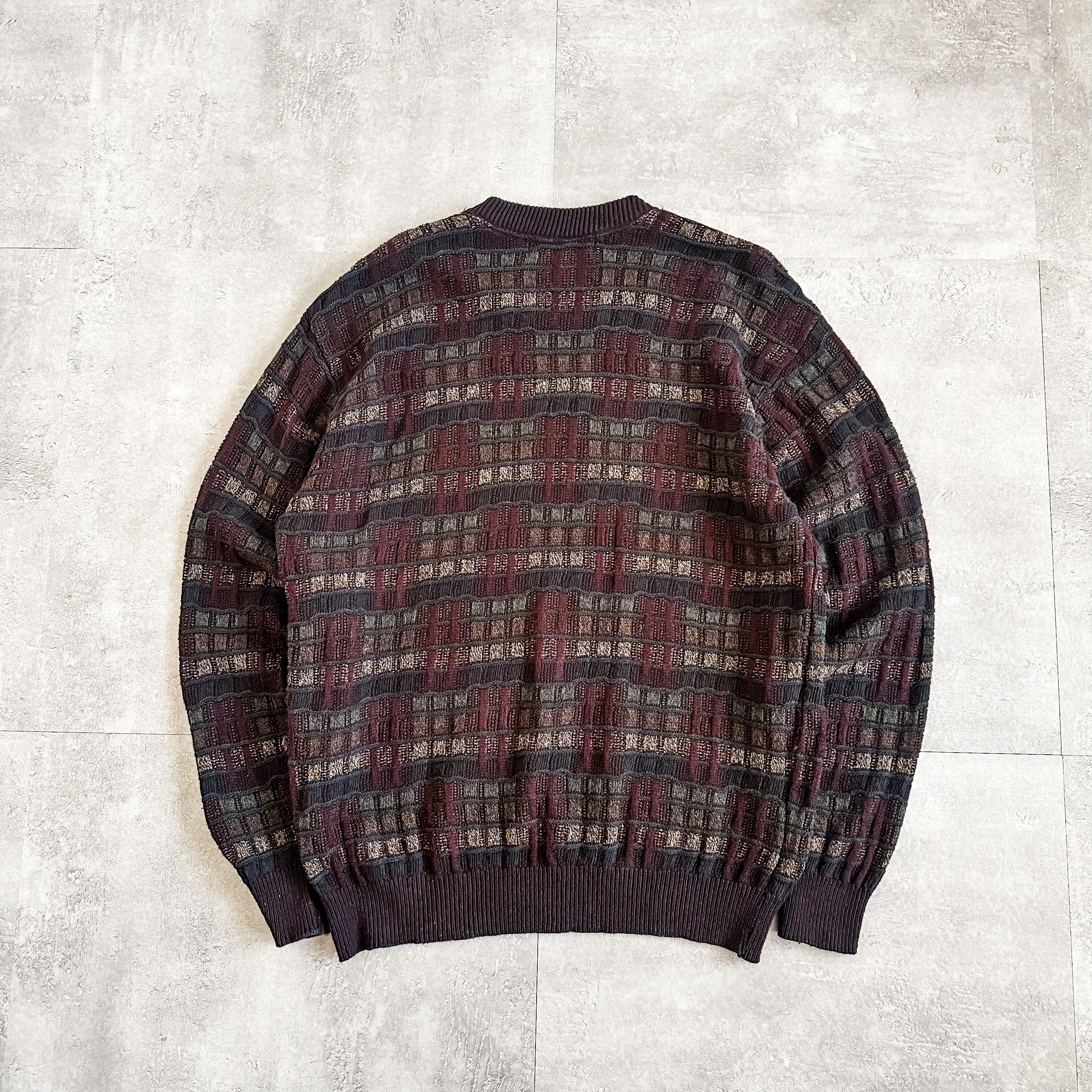 特徴 :立体的なチェック柄のパターンで編まれた1990'sのデザインセーター。