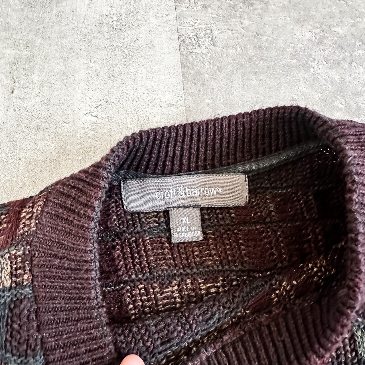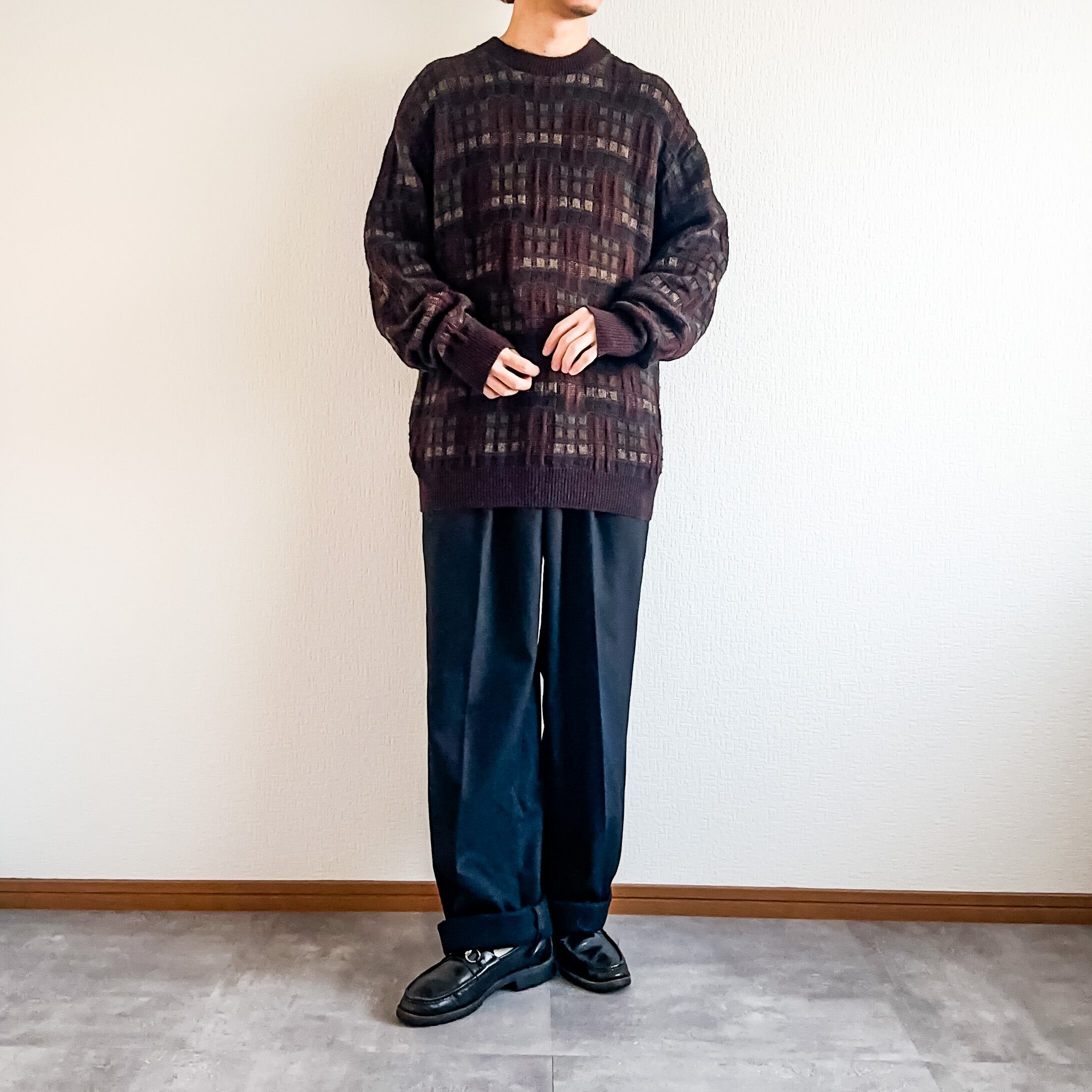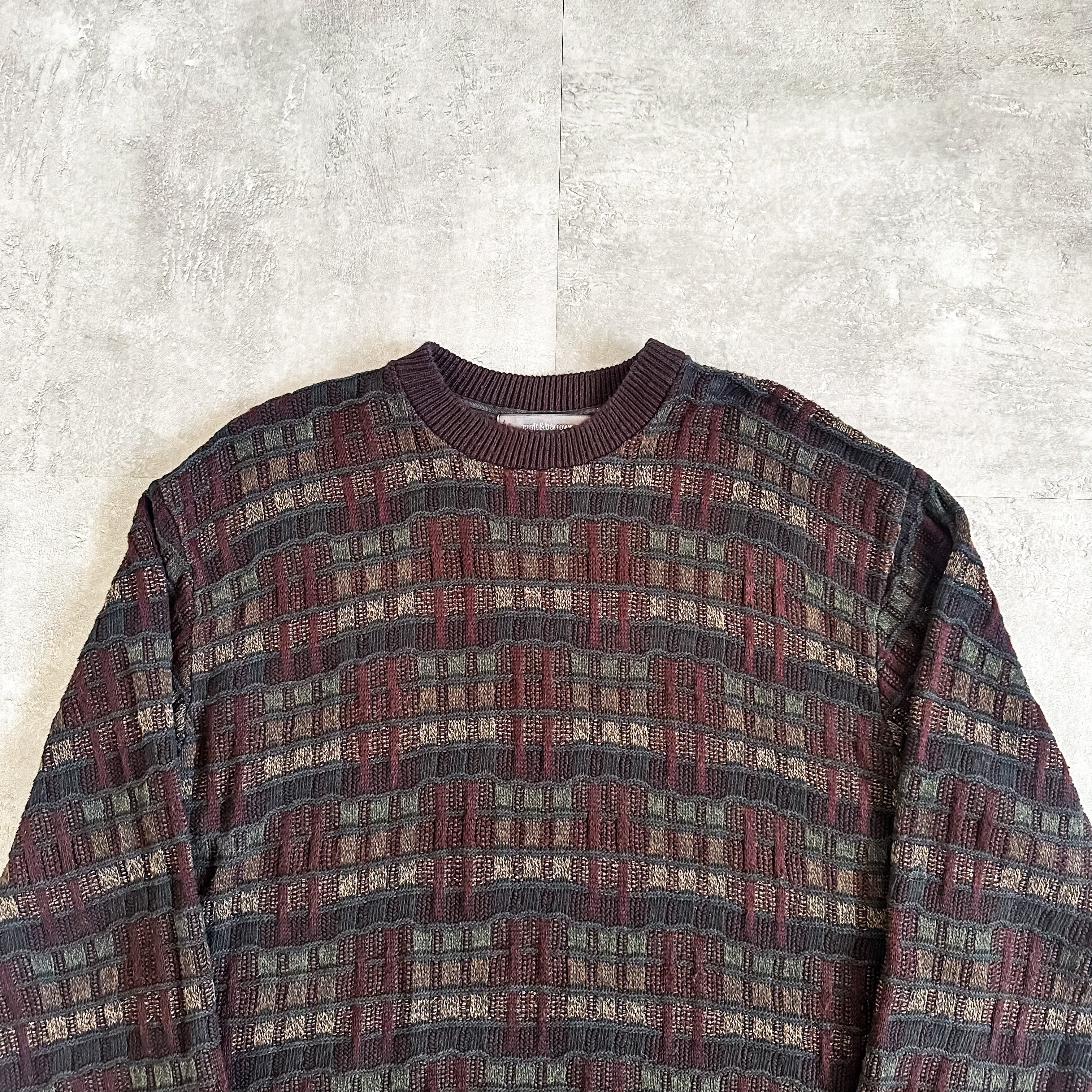 特徴 :立体的なチェック柄のパターンで編まれた1990'sのデザインセーター。