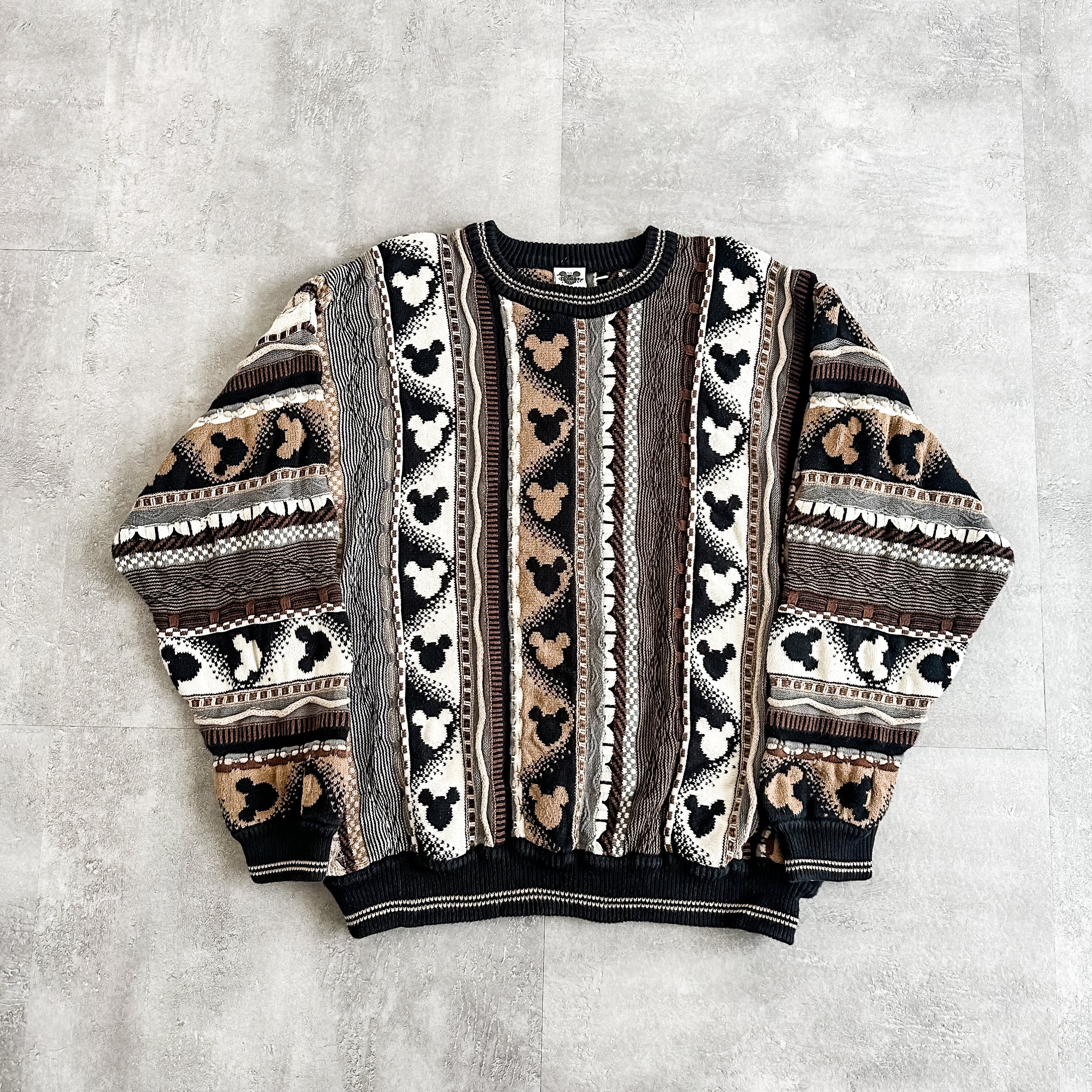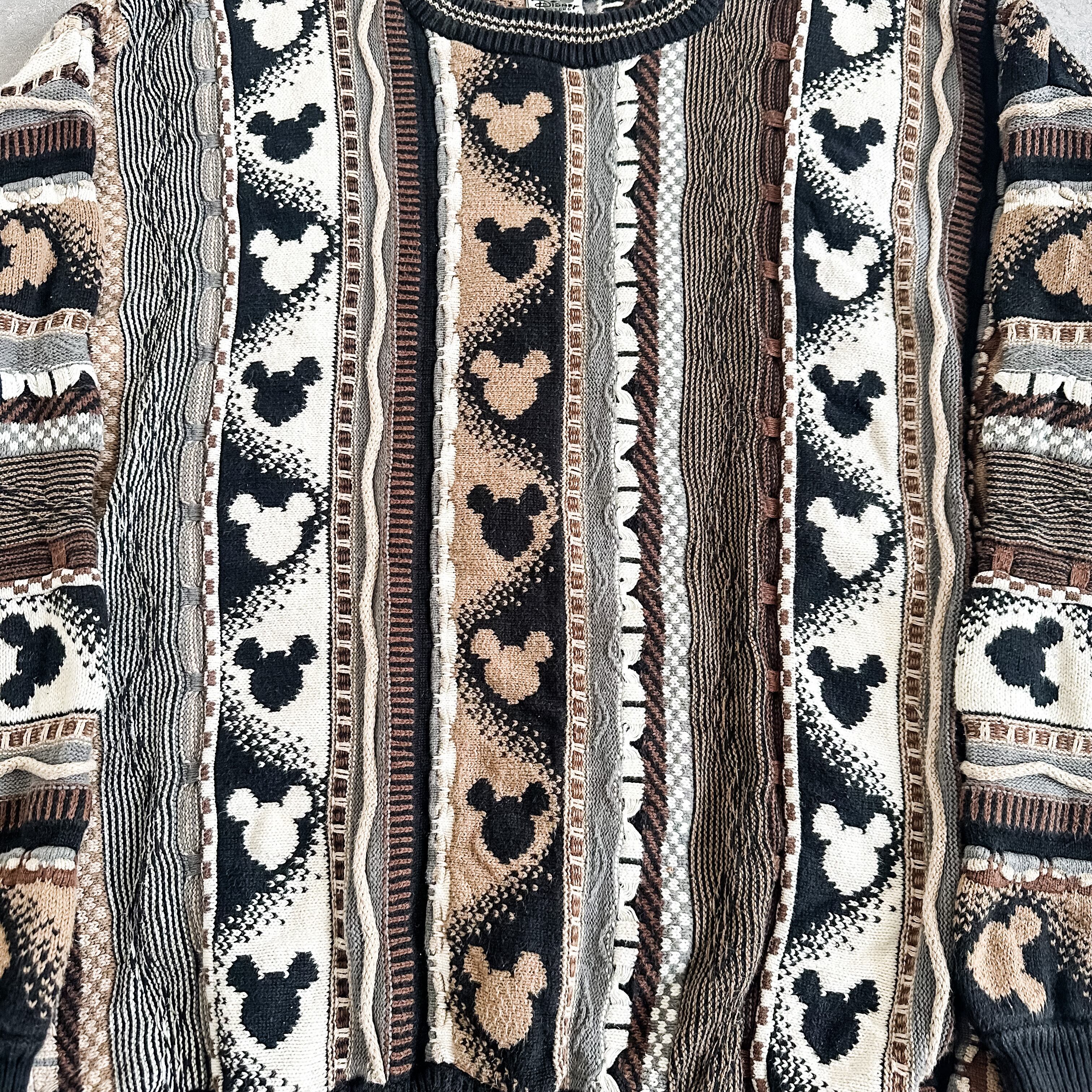 1990's "MICKEY MOUSE" 3D patterned allover design cotton sweater