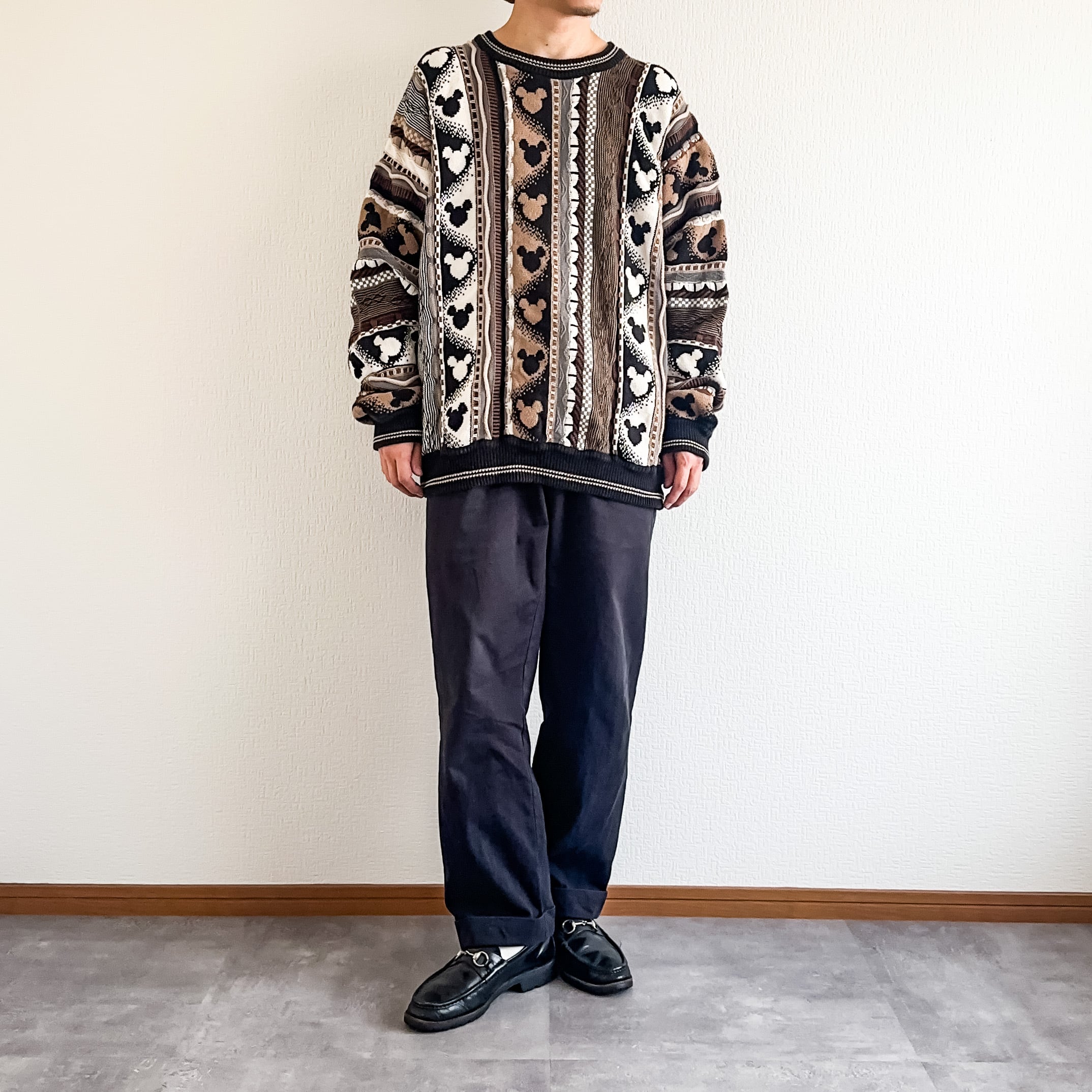 特徴 :1990's頃のミッキーマウスの3D総柄ニットセーター。
