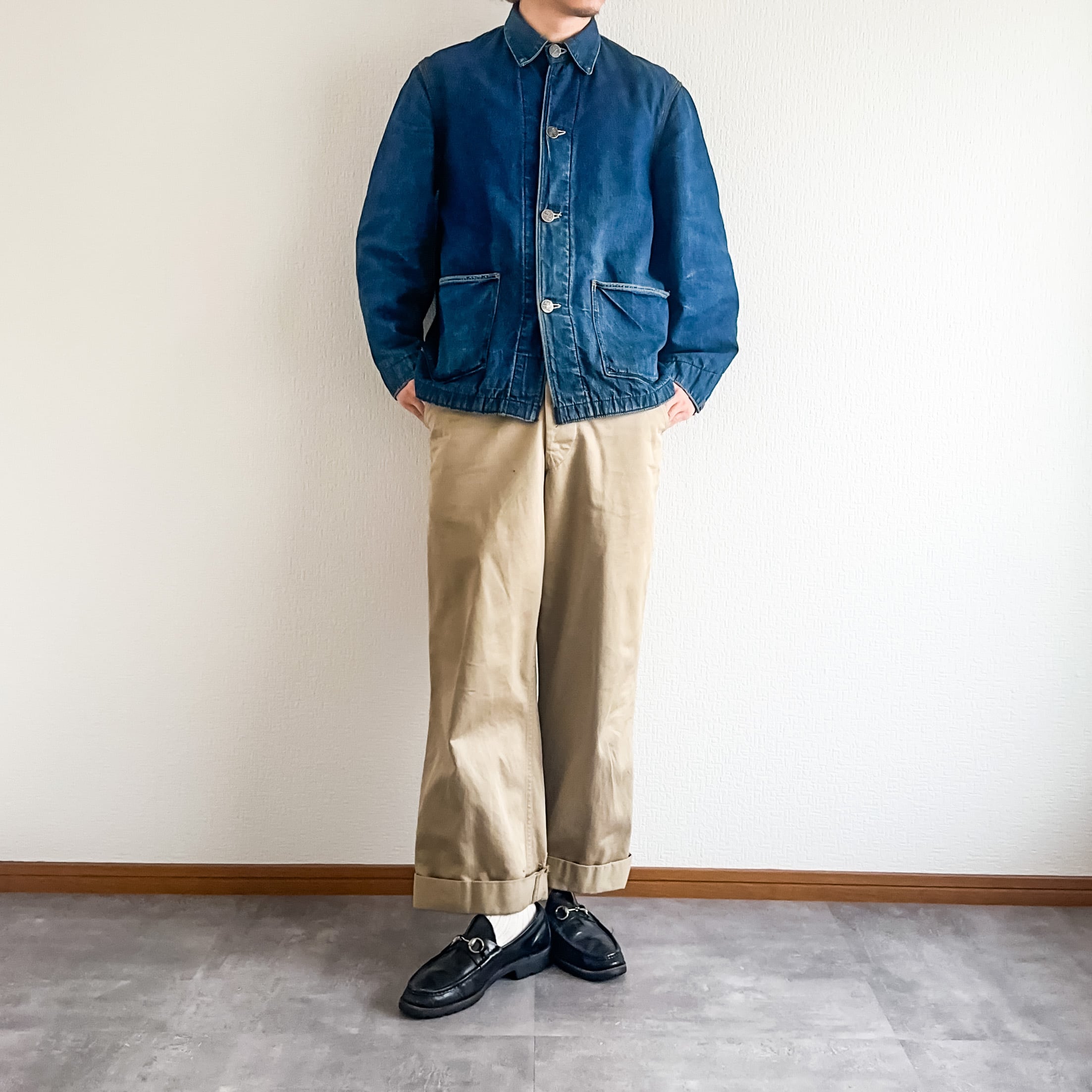 大戦期のようなツーポケにまだかなり濃紺な少し黒みのある色の素晴らしいインディゴ。