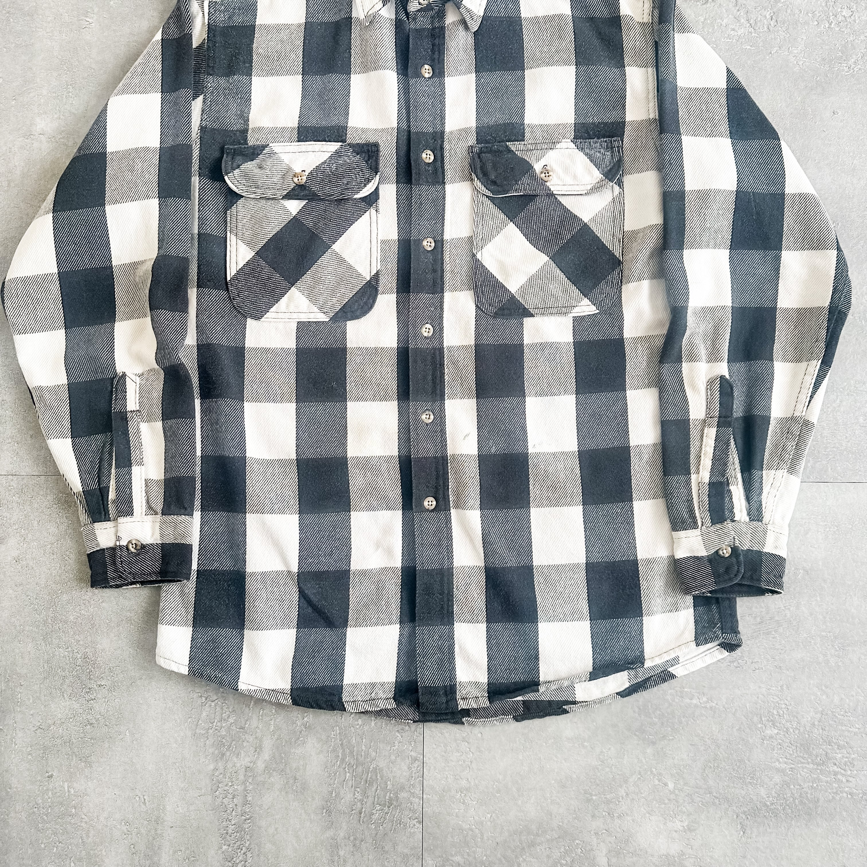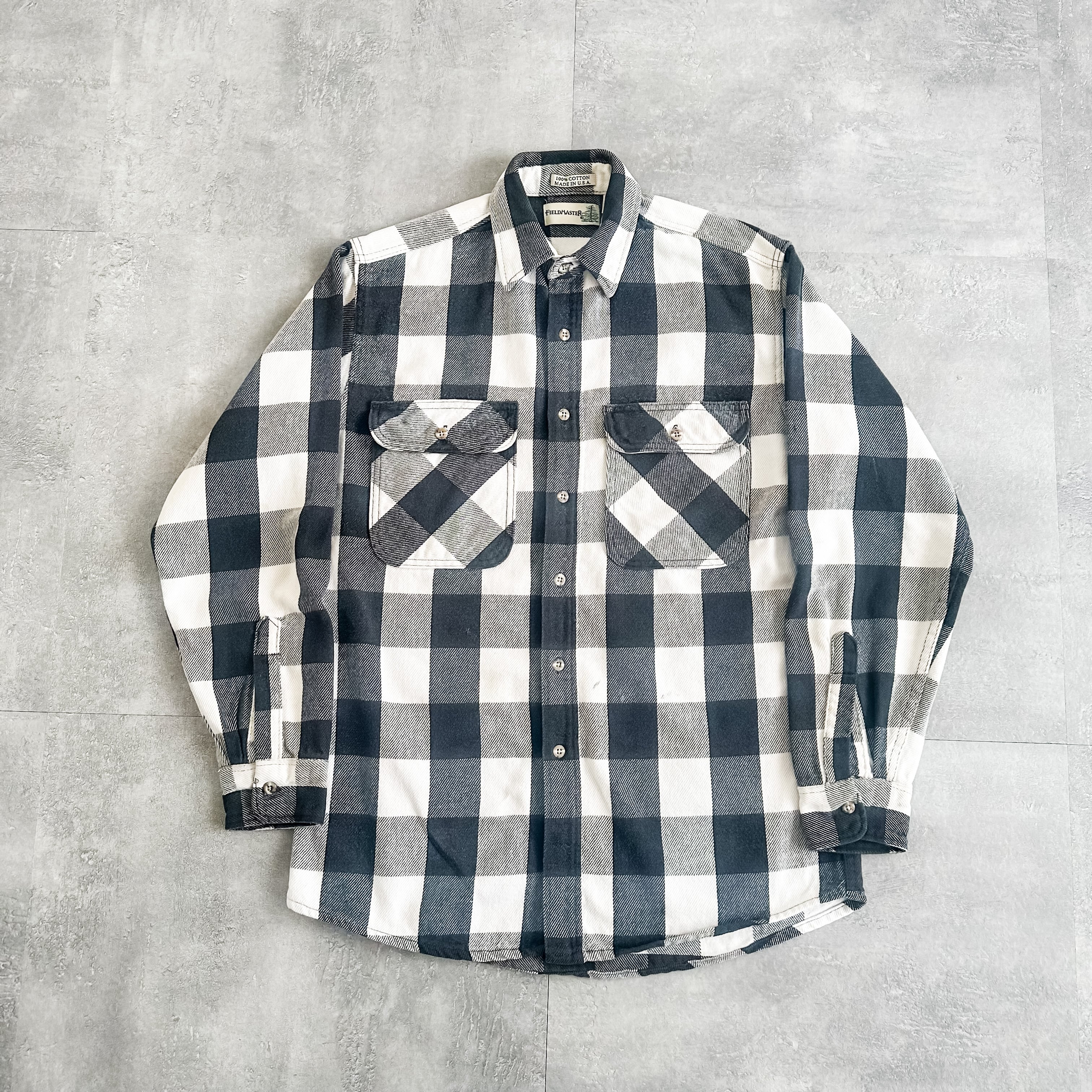 1990's "FIELD MASTER" plaid pattern heavy flannel shirt made in USA