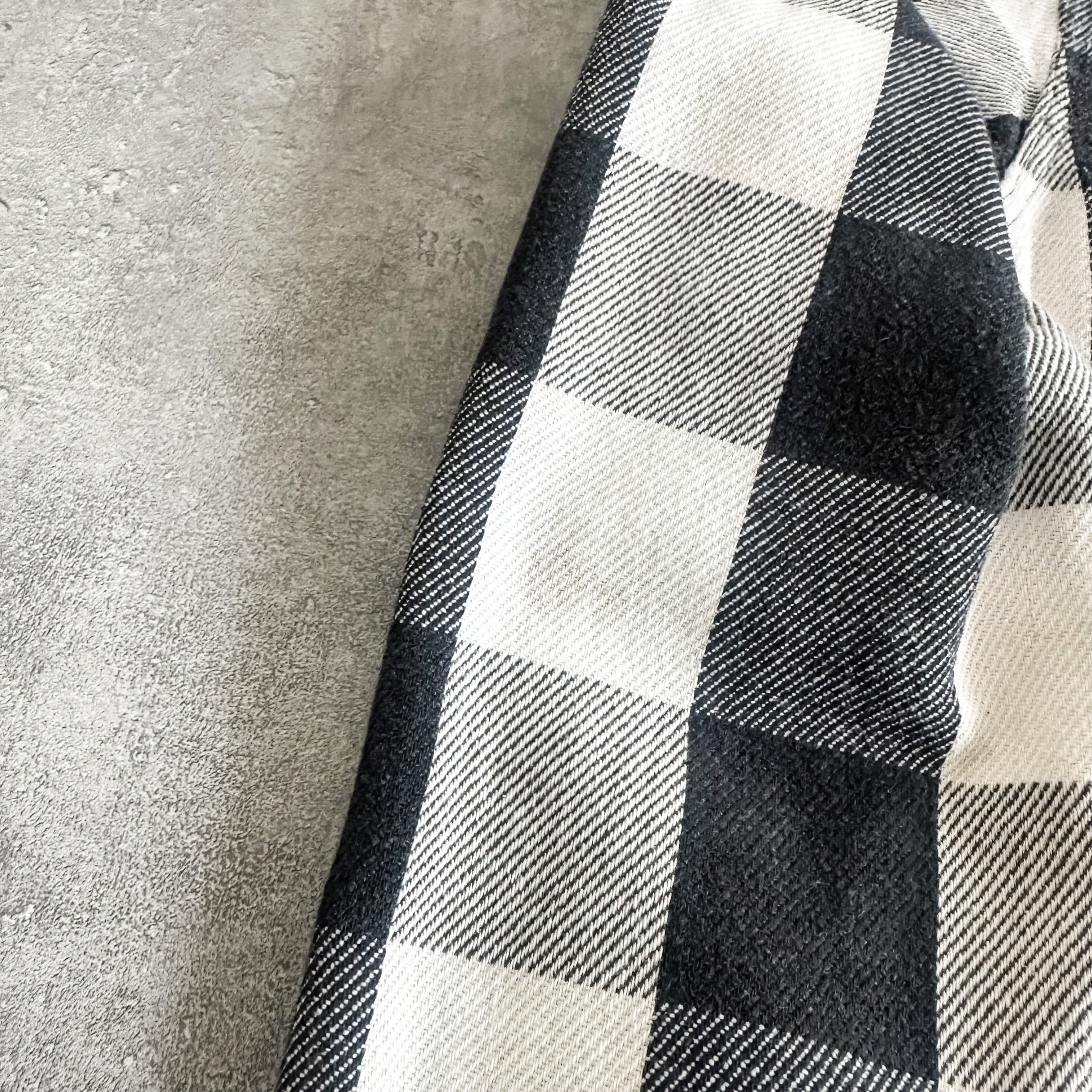丸みのあるフラップ付きのツーポケデザインに、ブラック×ホワイトのモノトーンカラーの素晴らしいブロックチェックパターン。