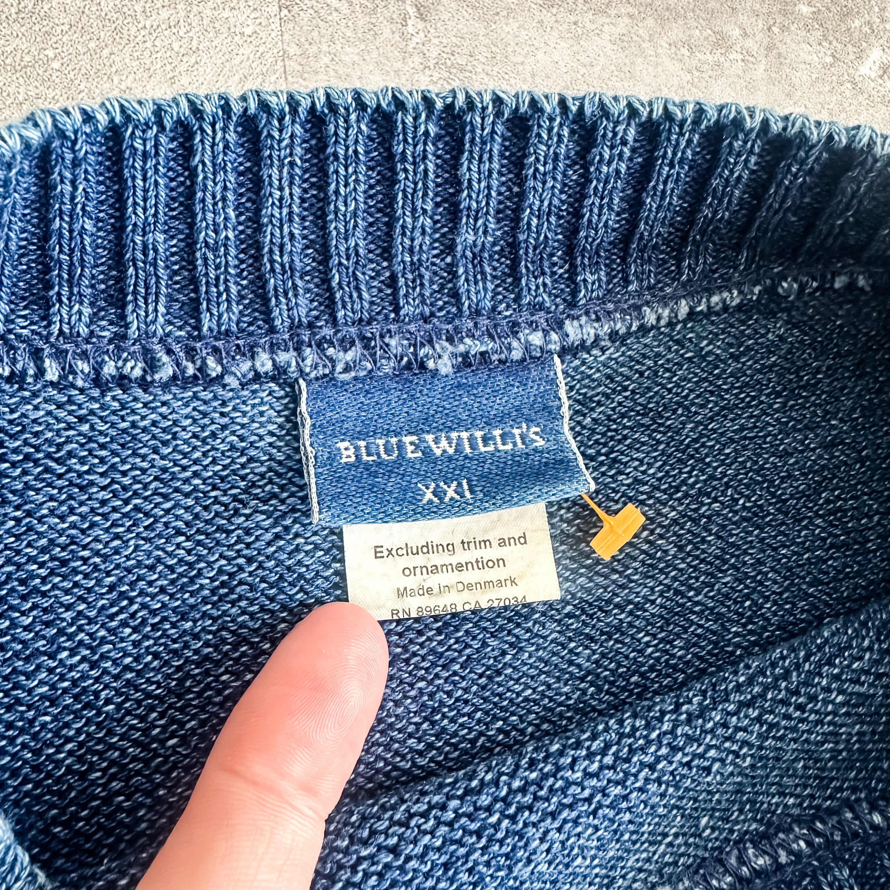 1990's~ "BLUE WILLIS" indigo cotton sweater made in Denmark
