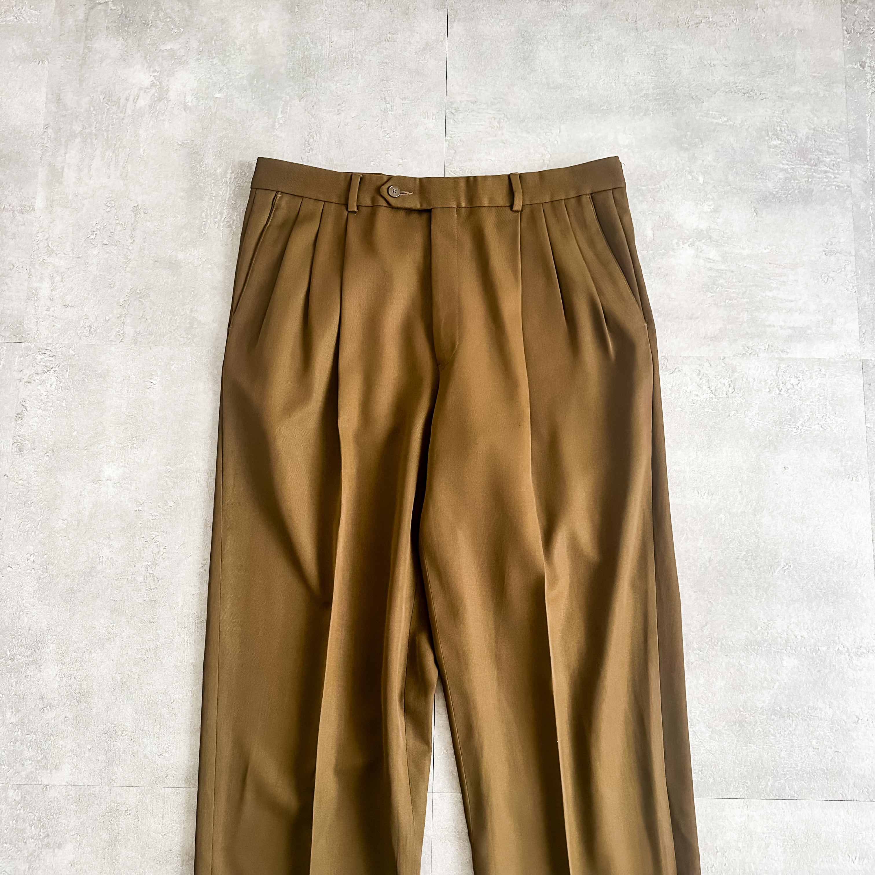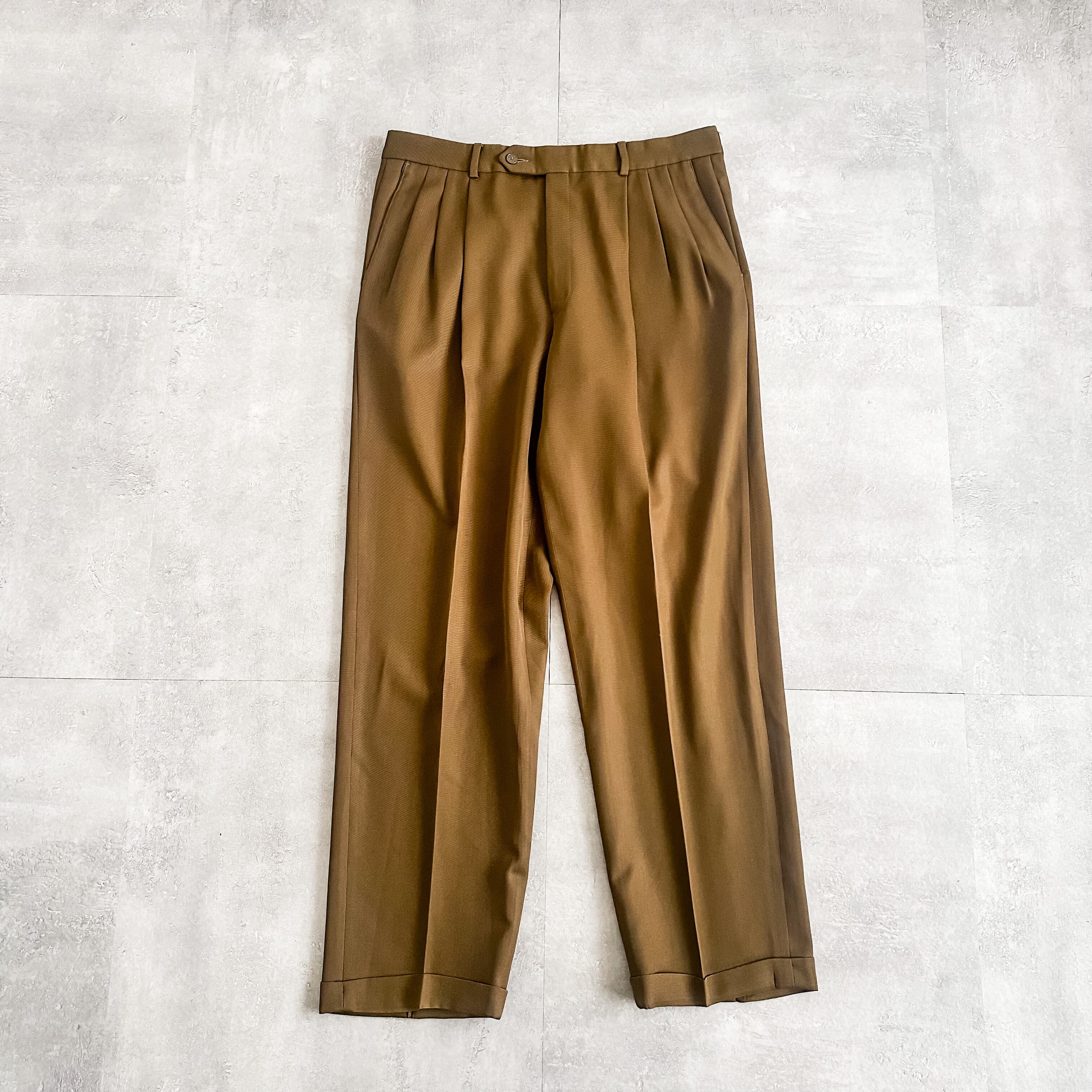 1980's~ "GIVENCHY" brown three tuck gabardine slacks pants made in USA