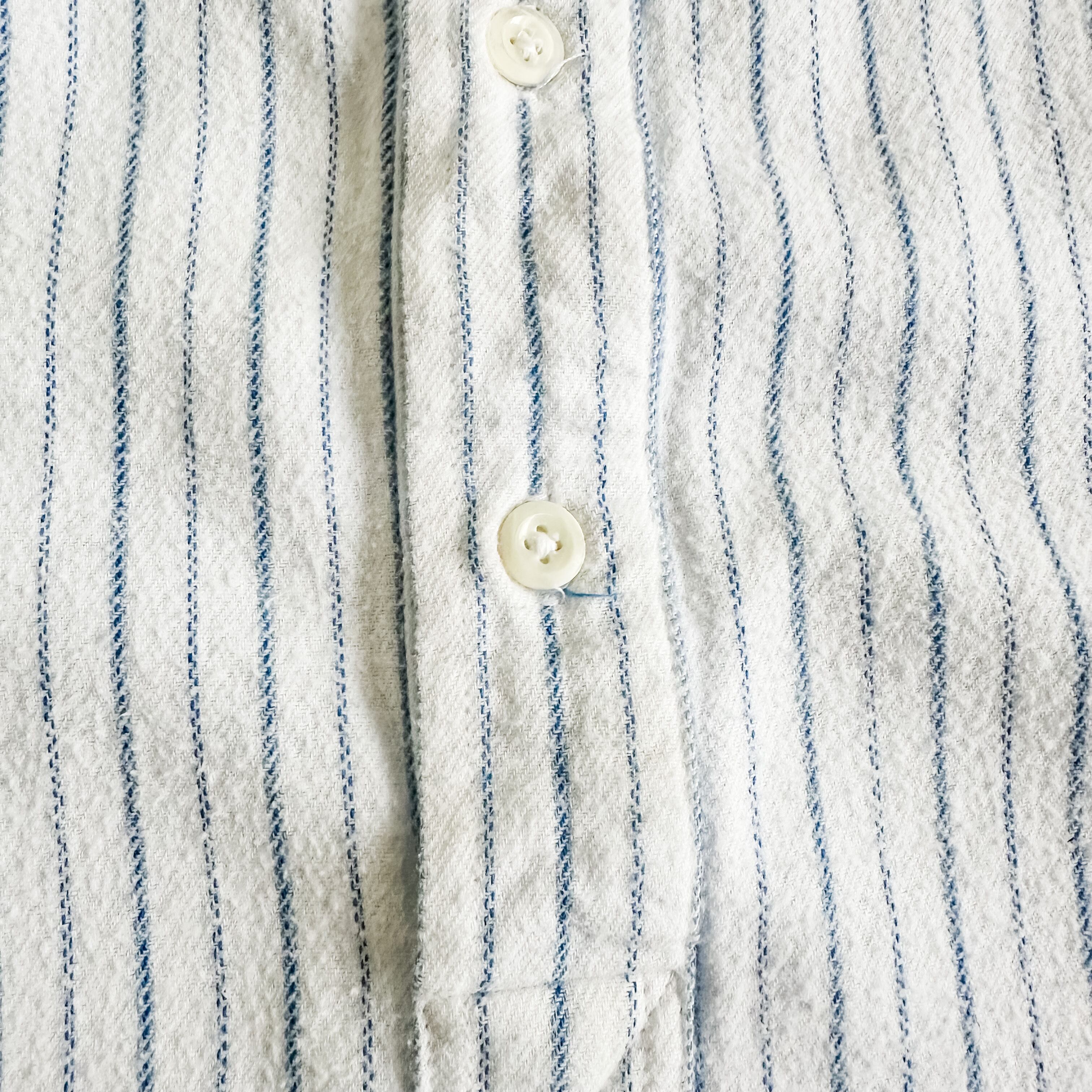 爽やかなカラーリングのストライプ柄にふわっとしたコットンフランネルで春にもピッタリな一着でしょう。