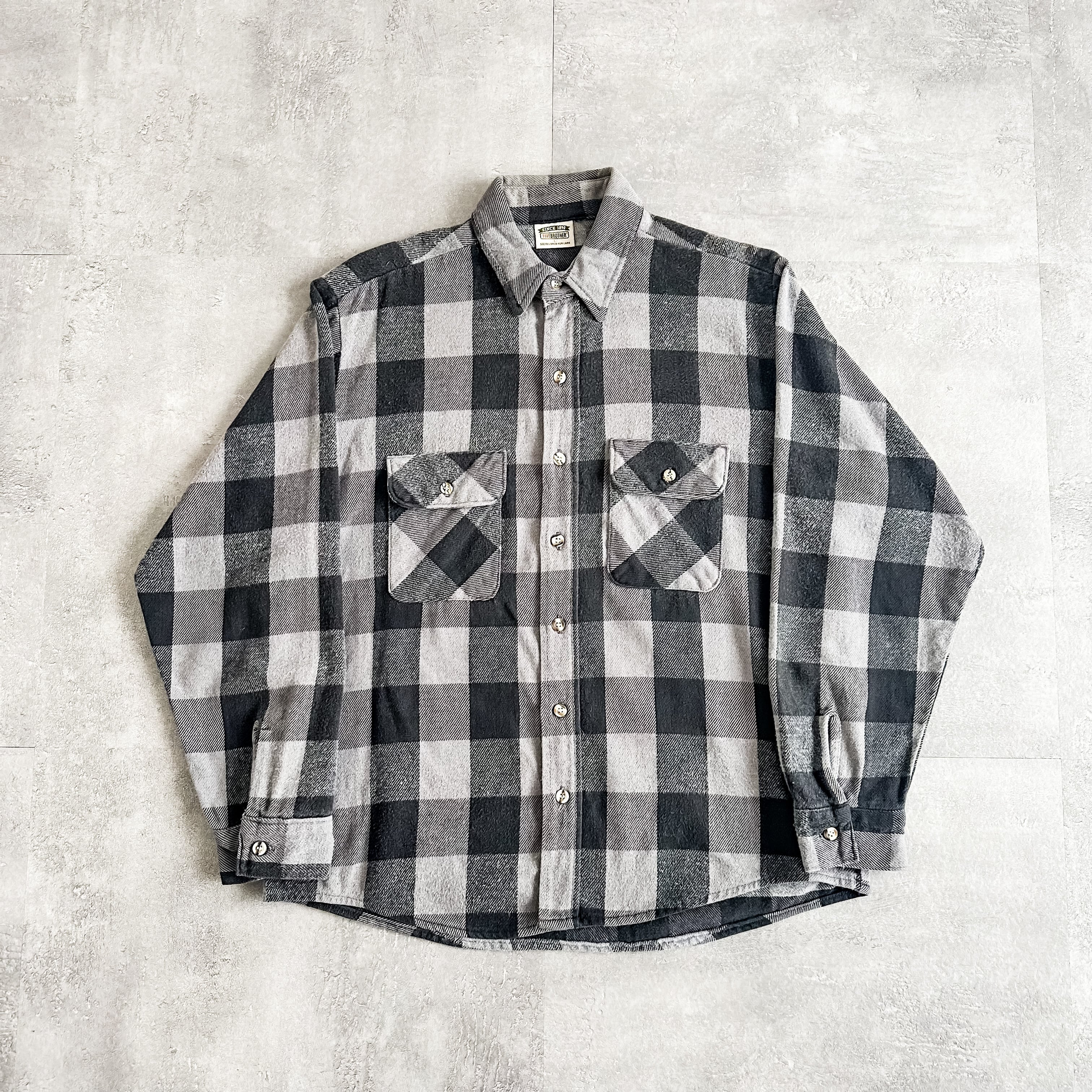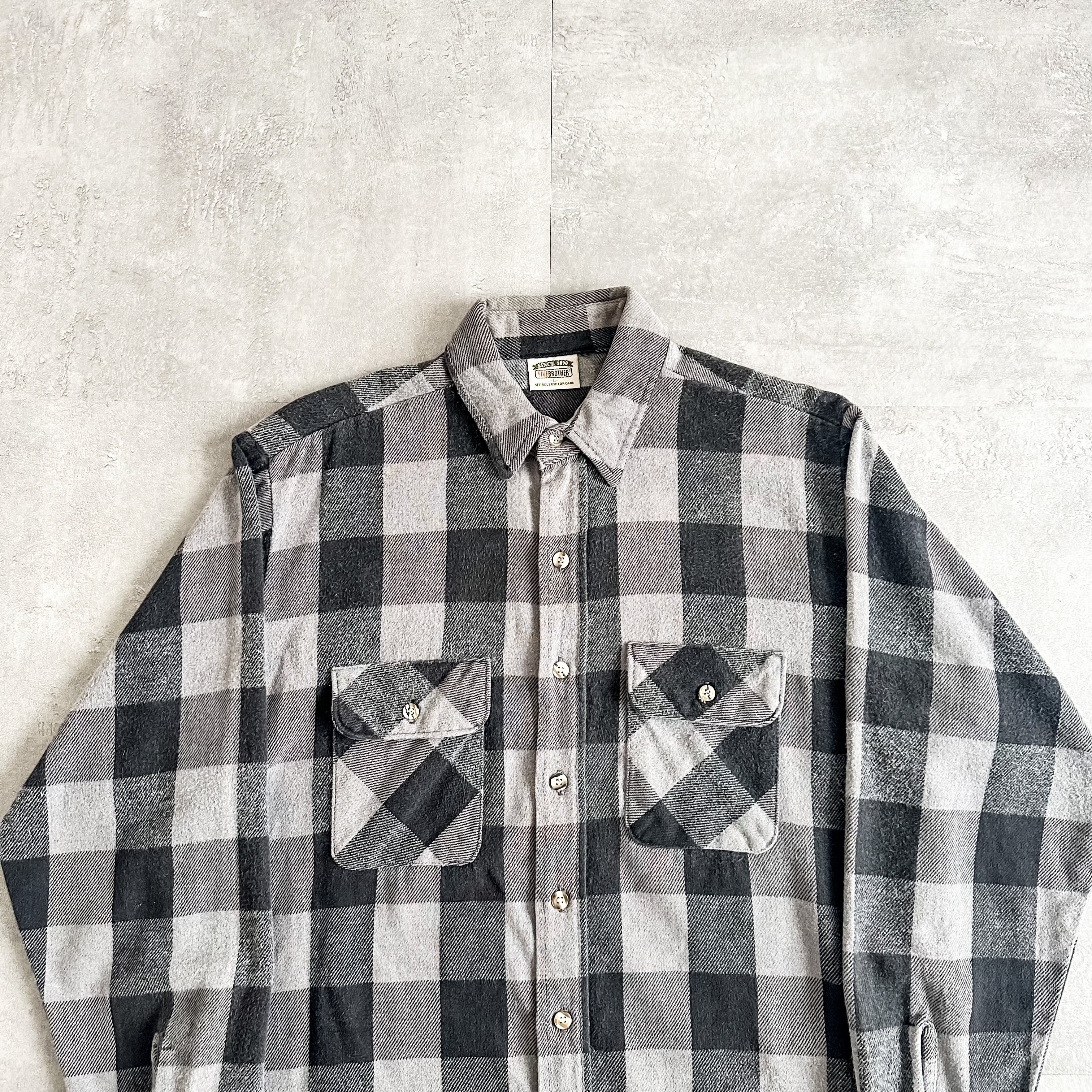 1990's "FIVE BROTHER" plaid pattern heavy flannel shirt