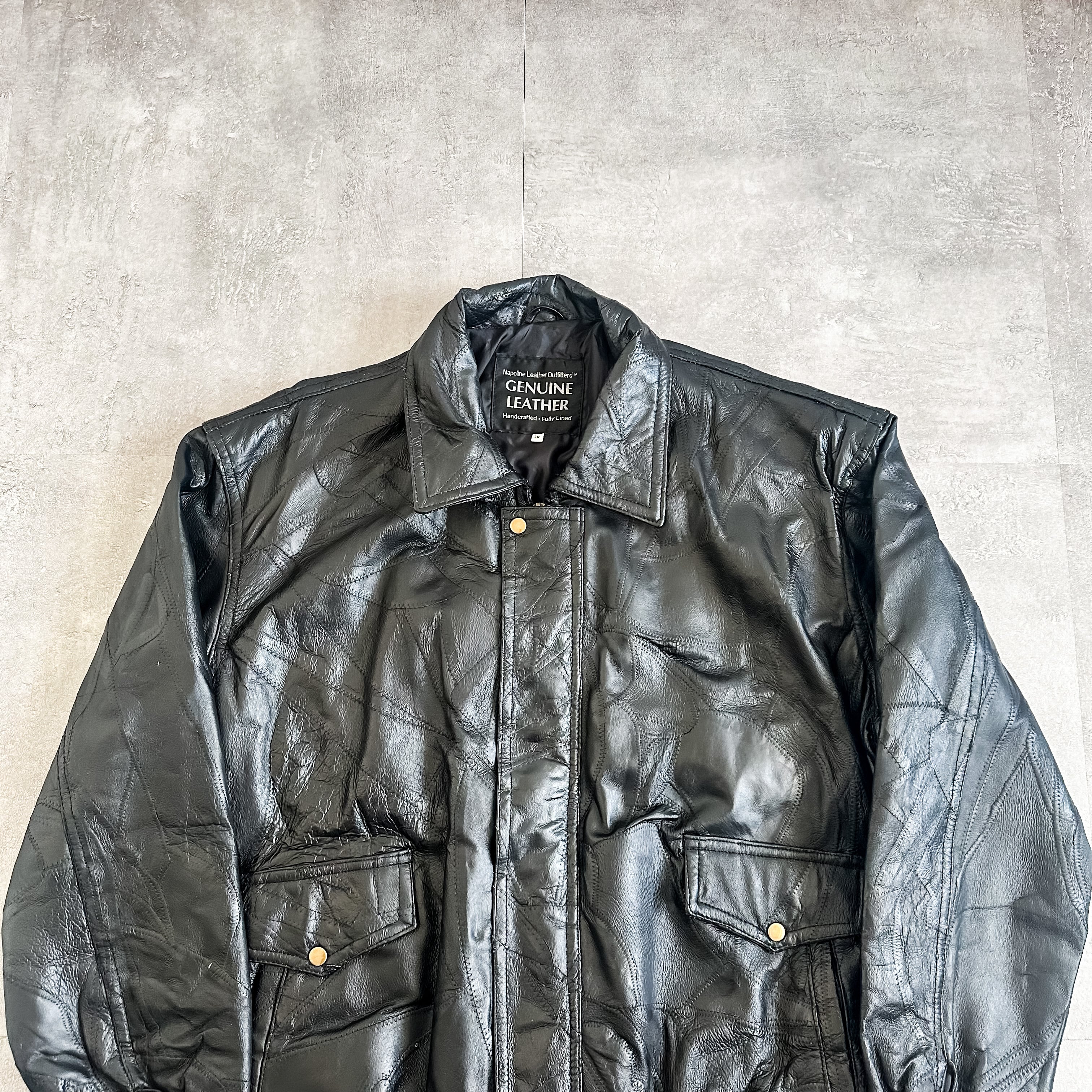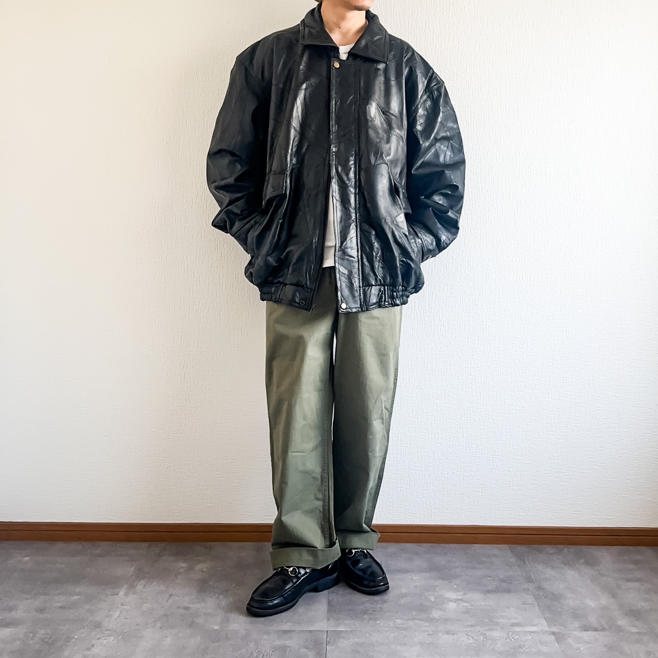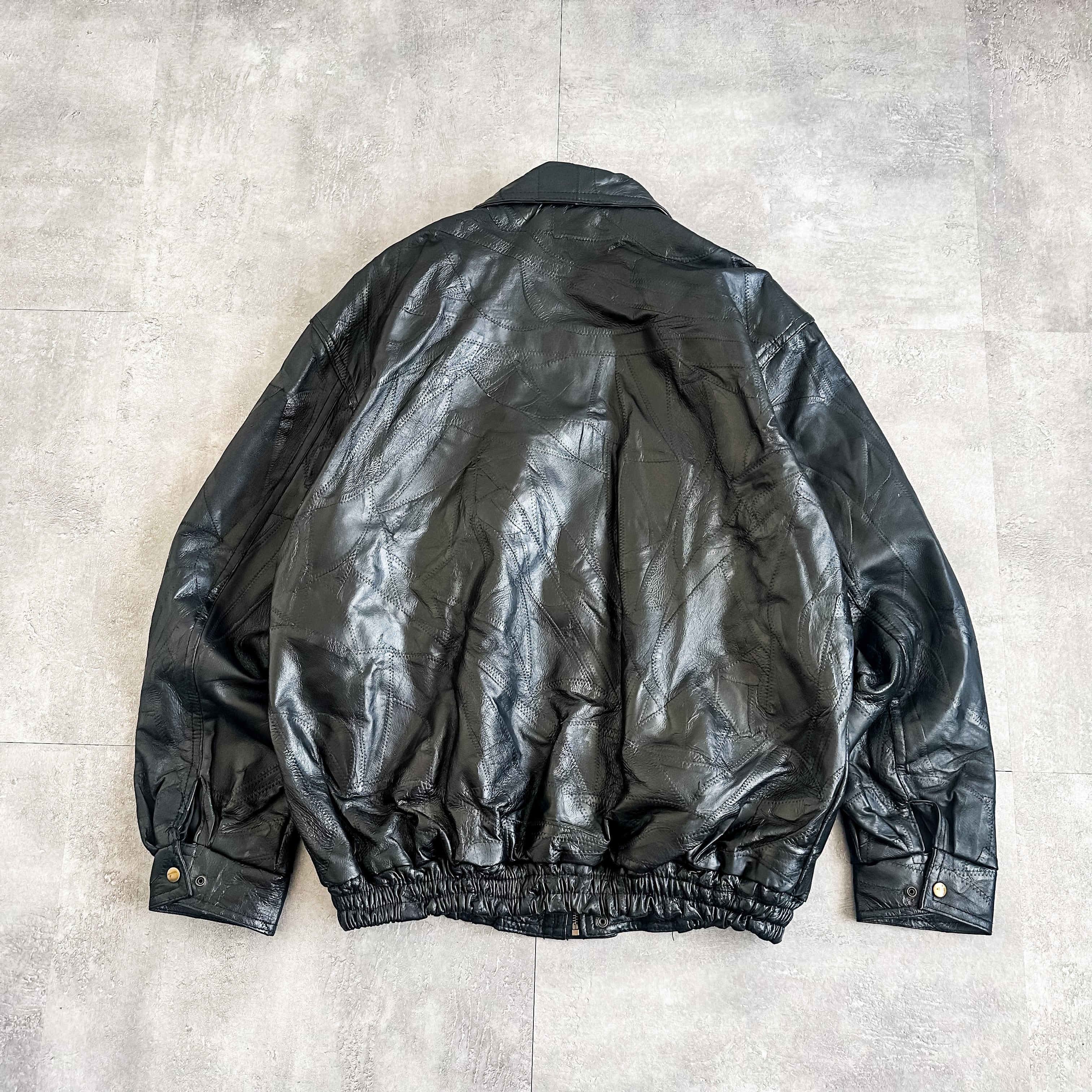 特徴 :ブラックカラーにパッチワークのようなデザインが秀逸な1990's~頃のレザージャケット。