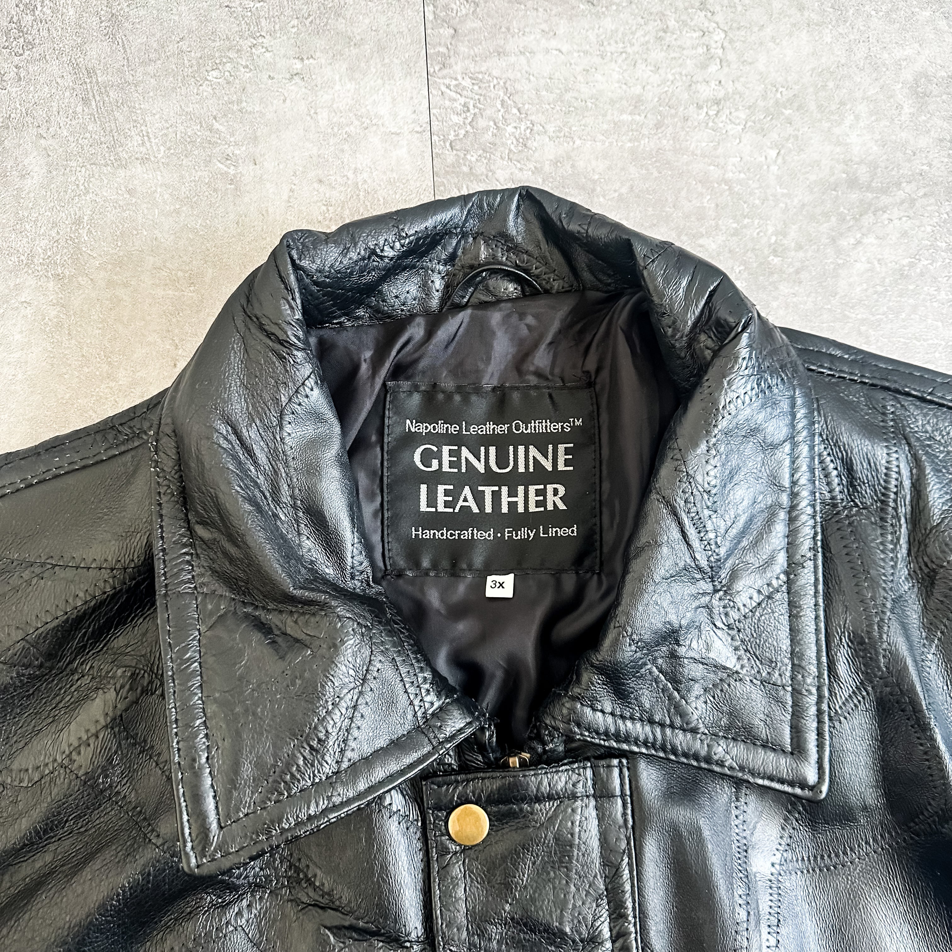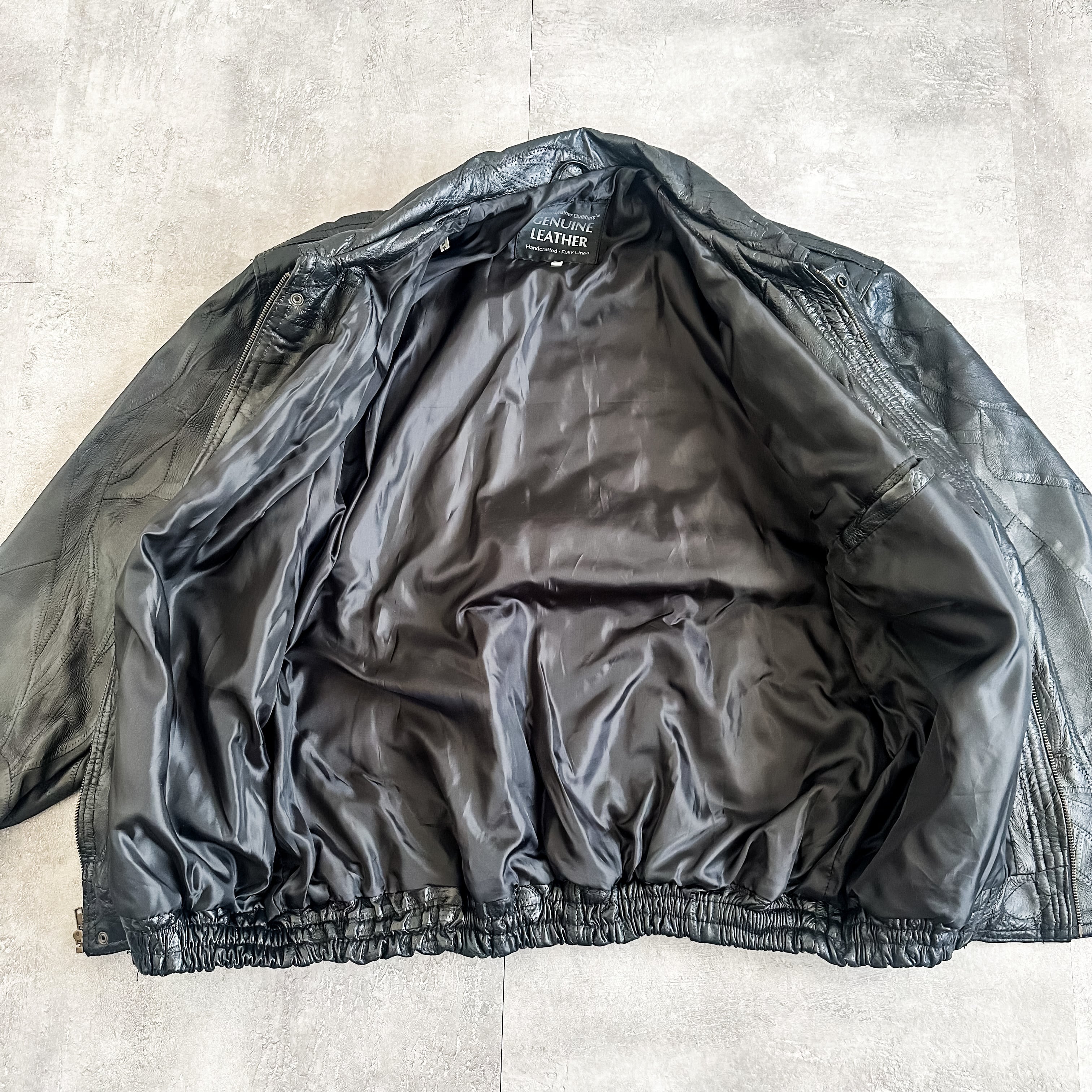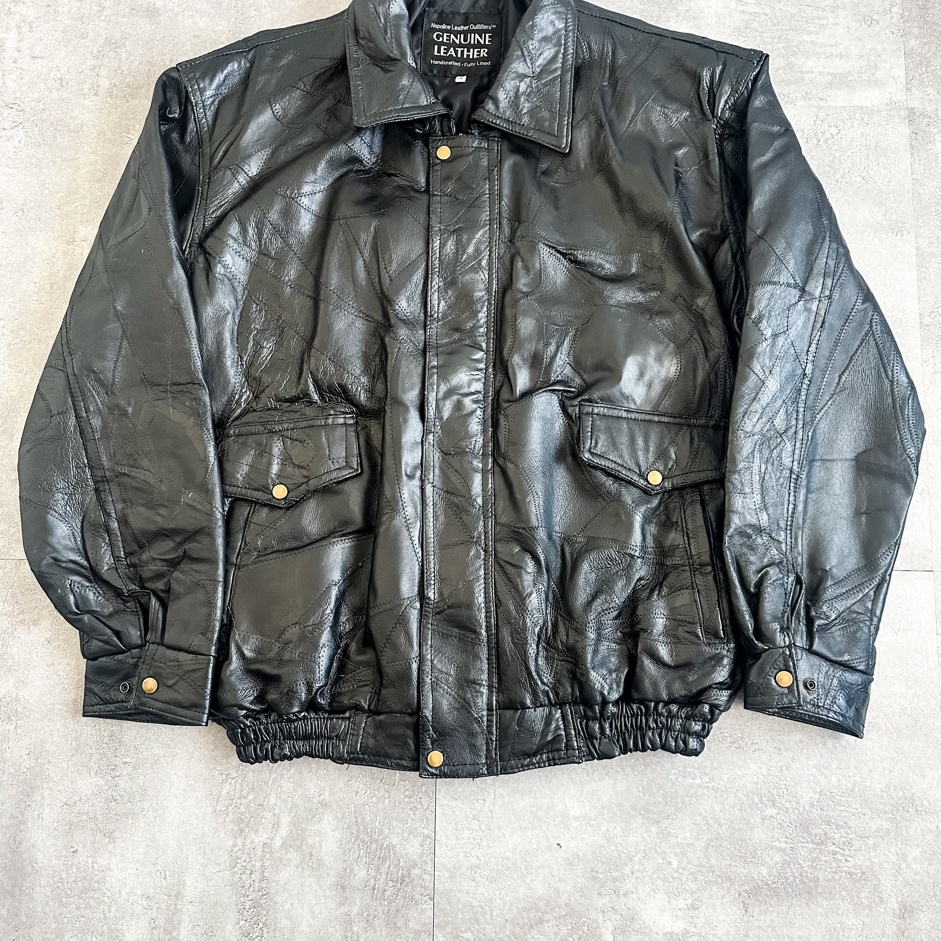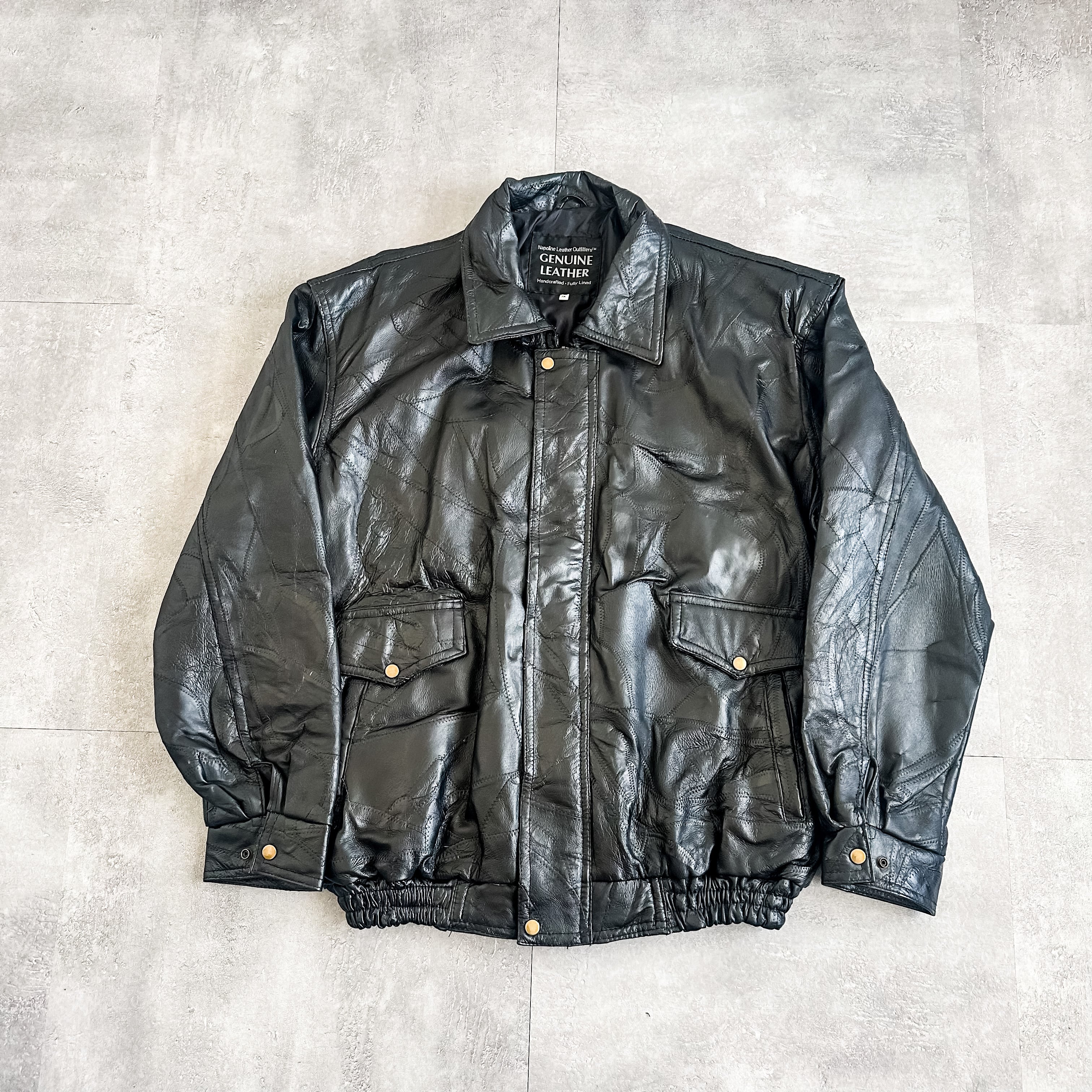 特徴 :ブラックカラーにパッチワークのようなデザインが秀逸な1990's~頃のレザージャケット。