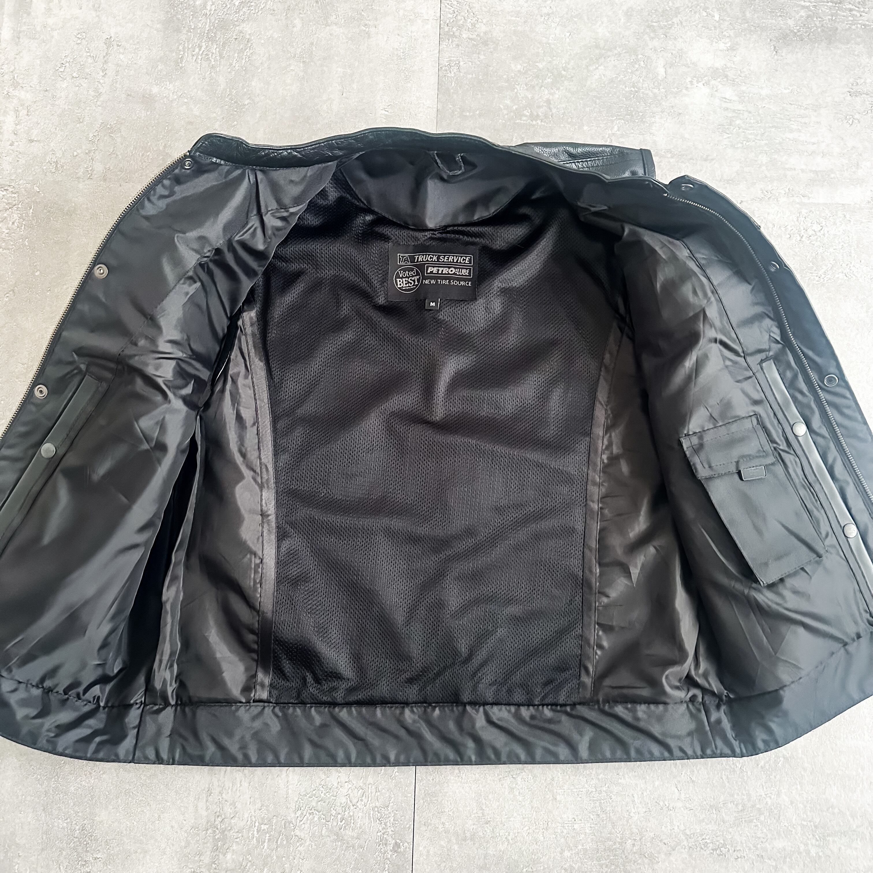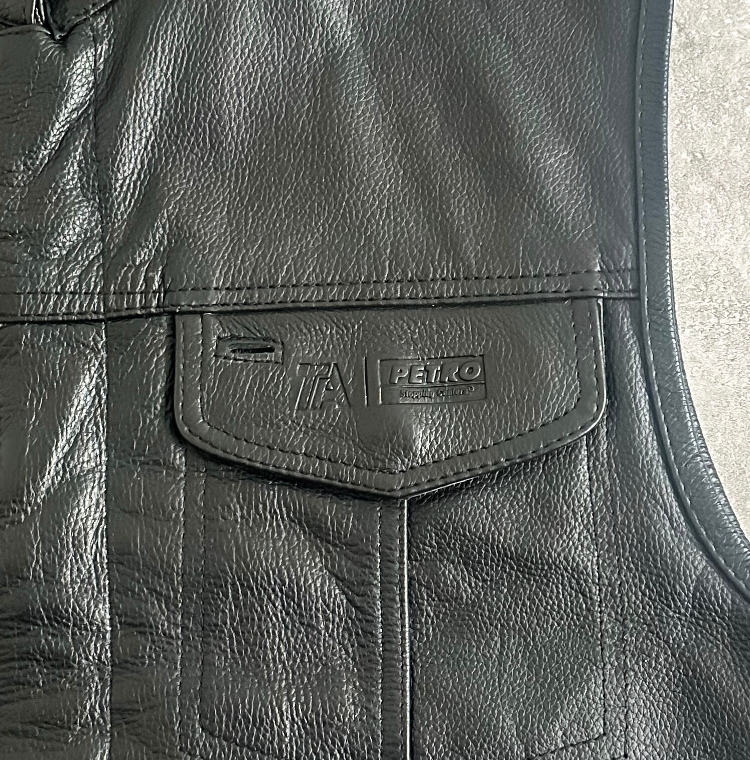2000's "TA/PETRO" black stand collar leather vest