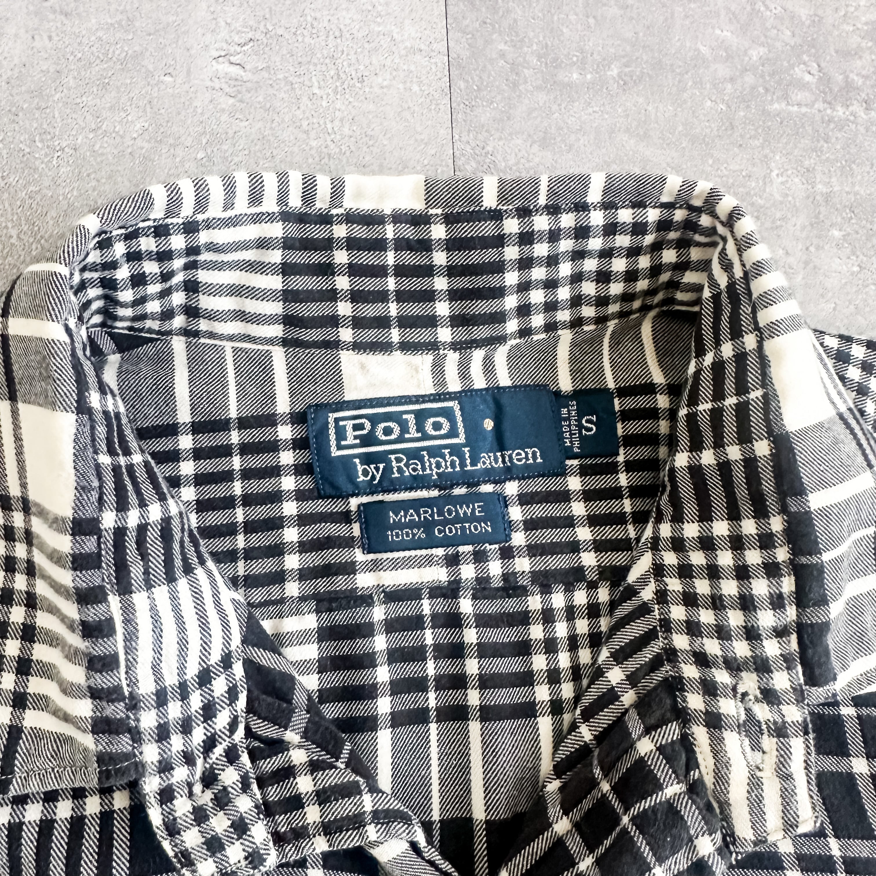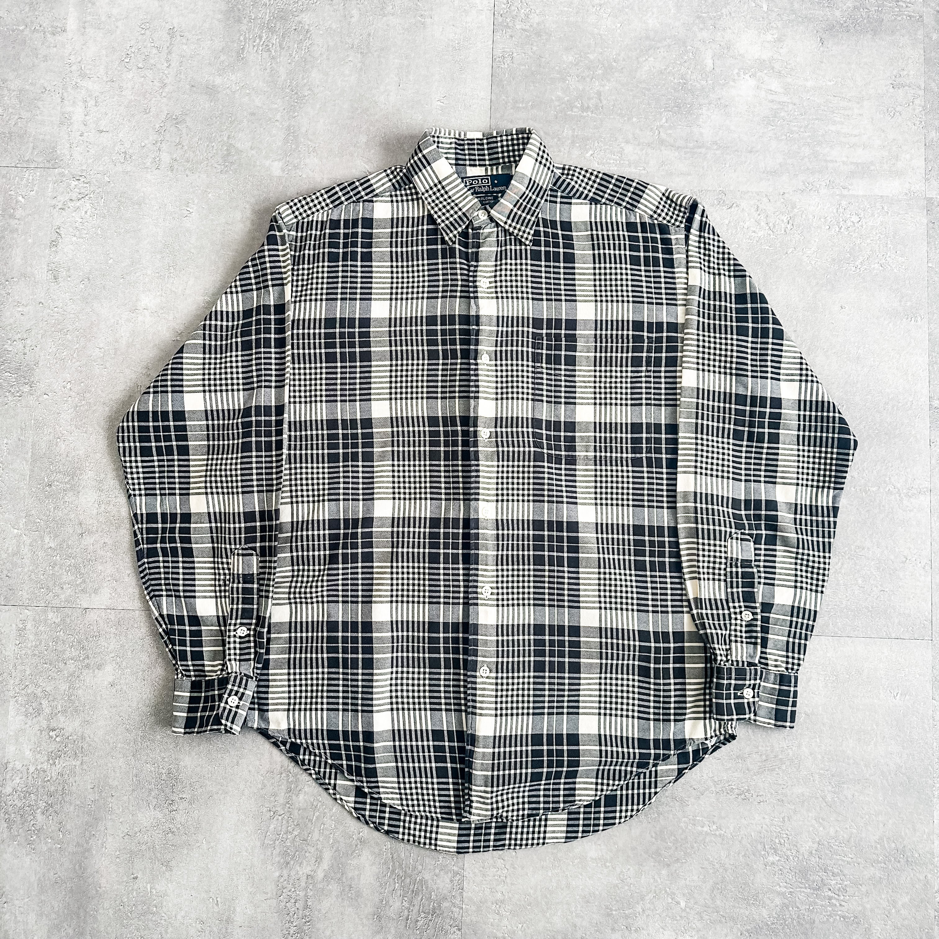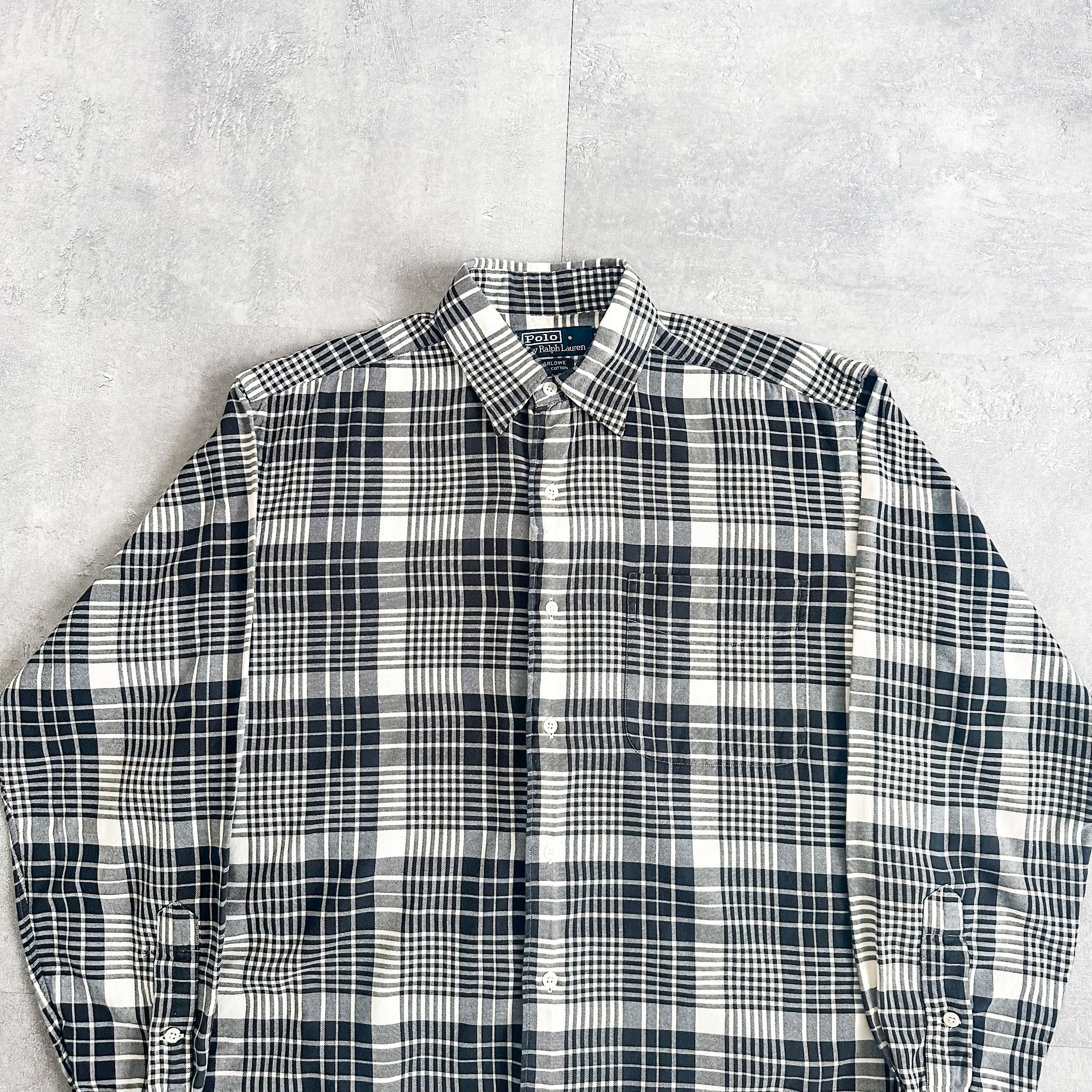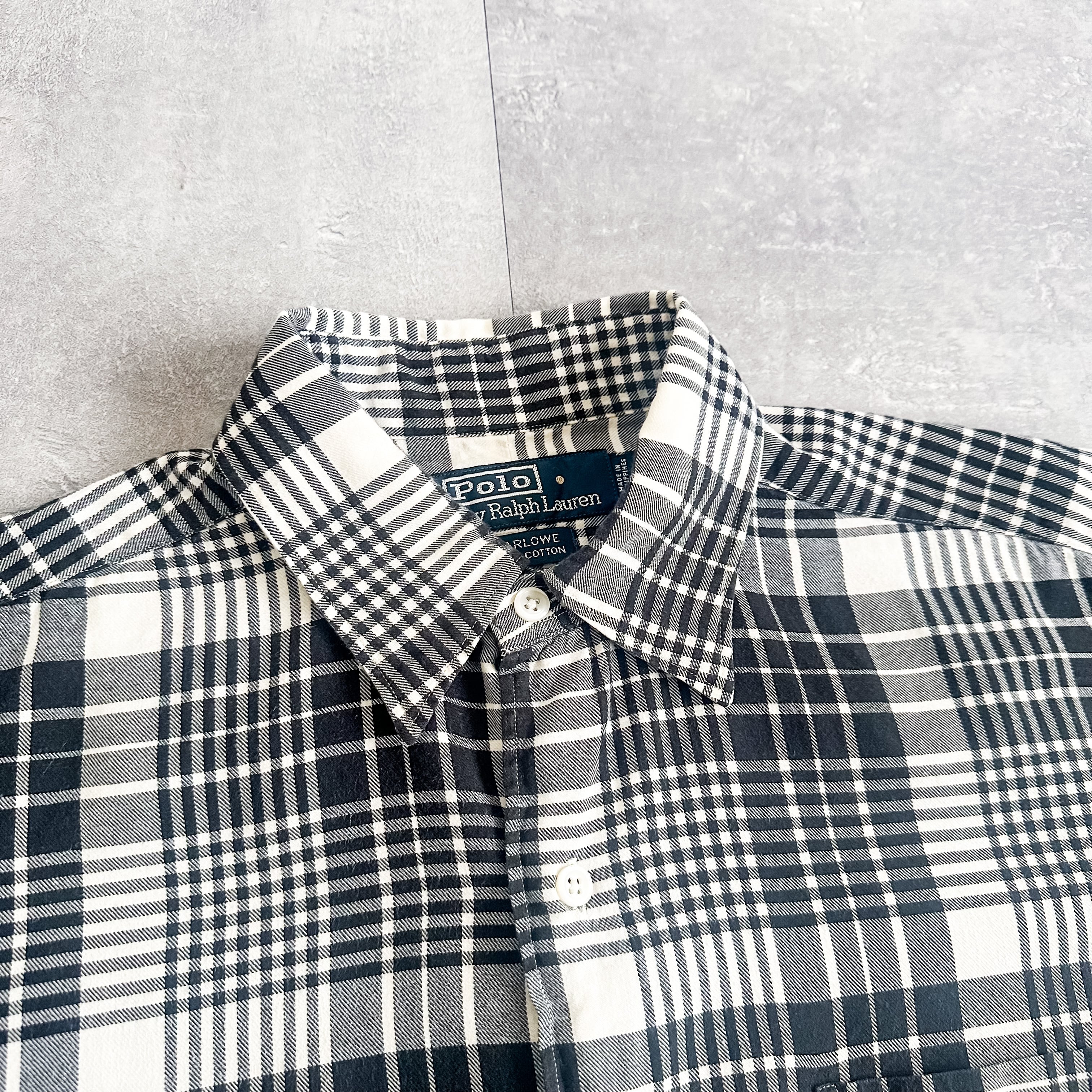 1990's "Polo Ralph Lauren" "MARLOWE" monotone plaid pattern cotton shirt