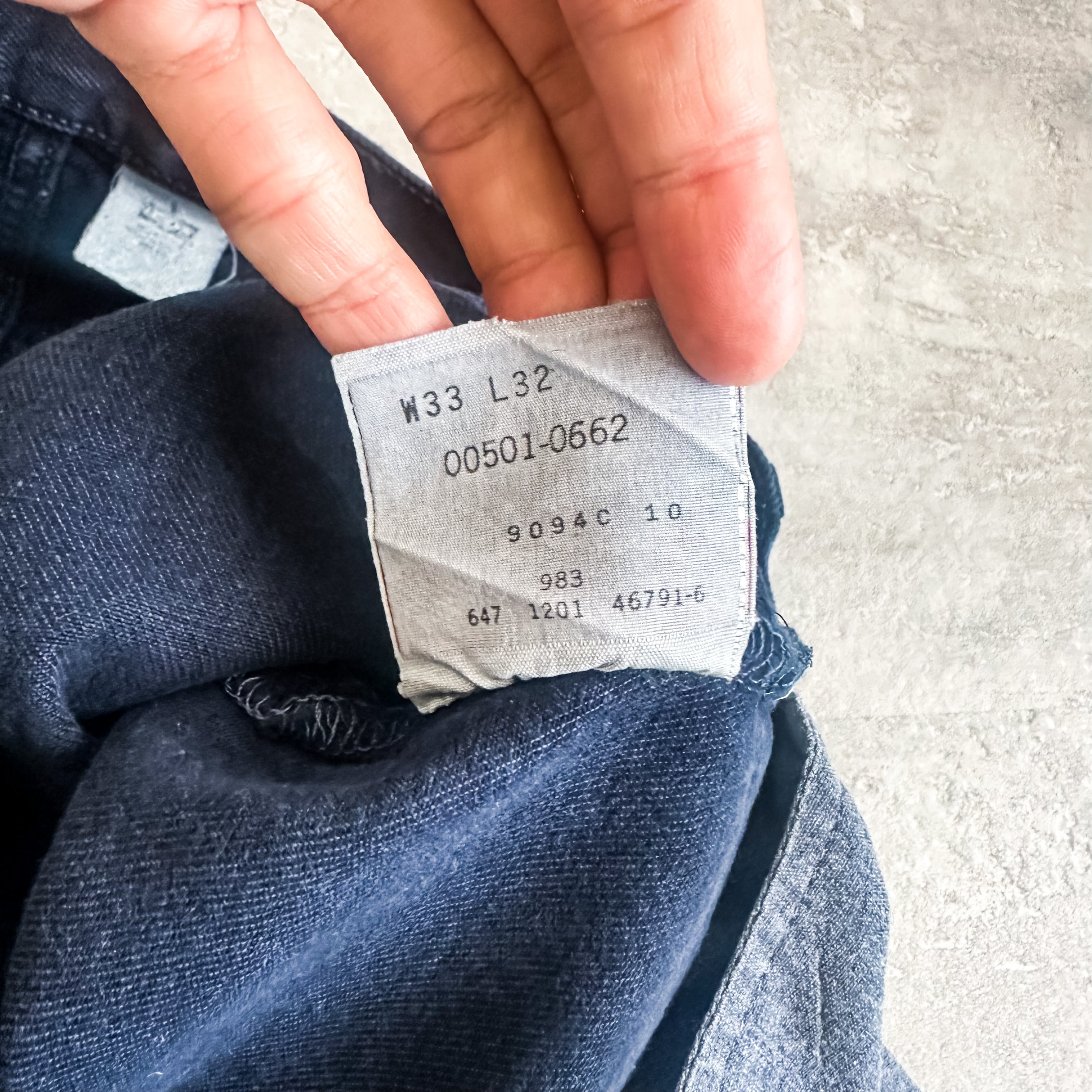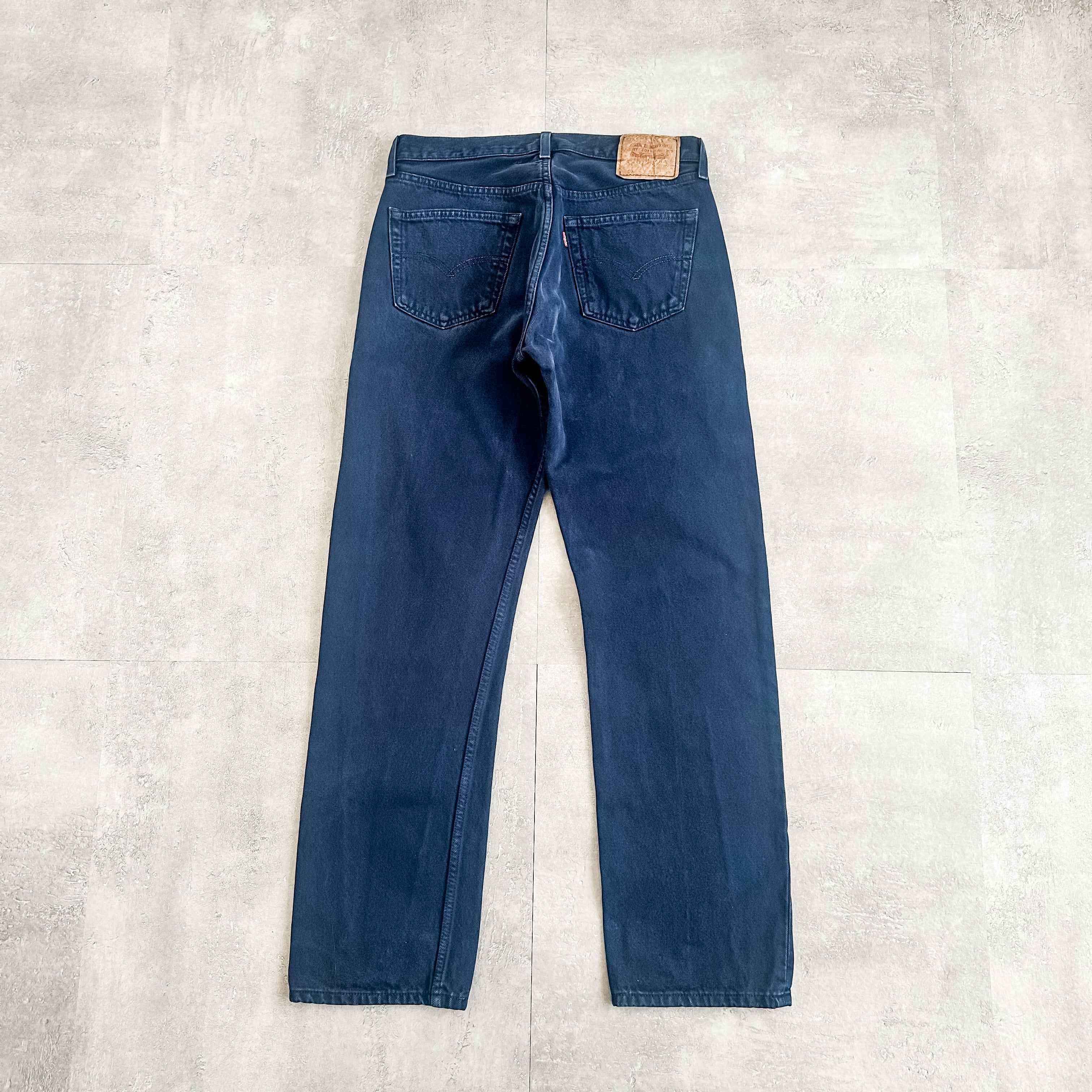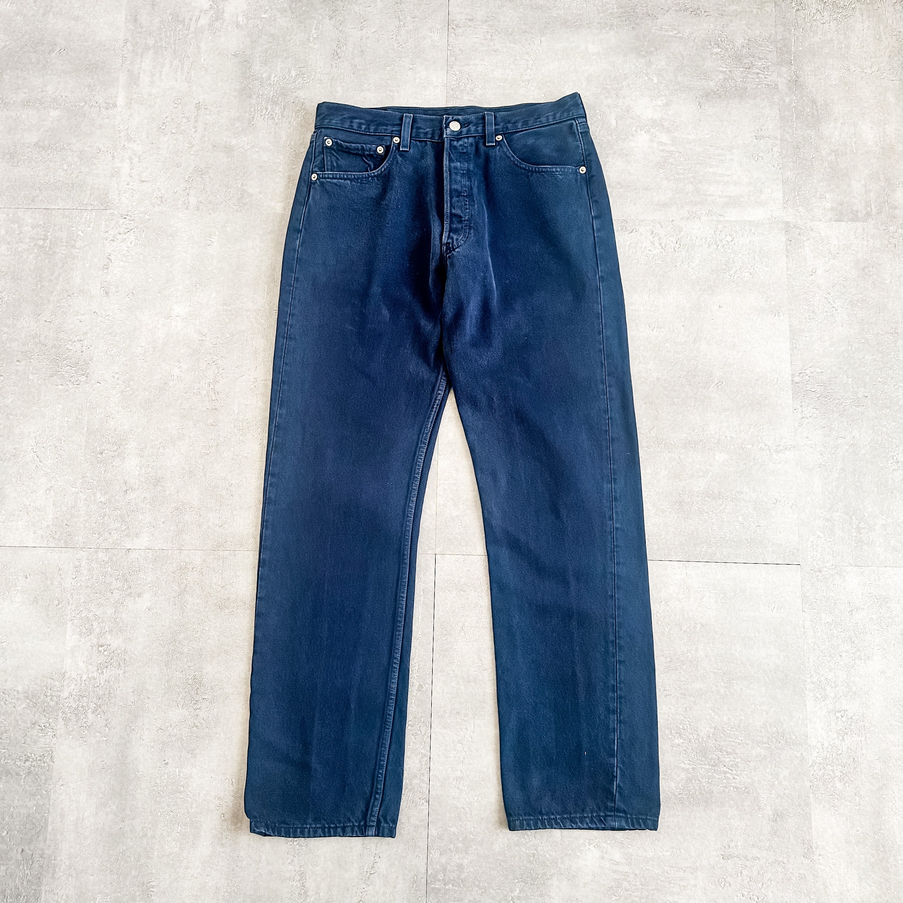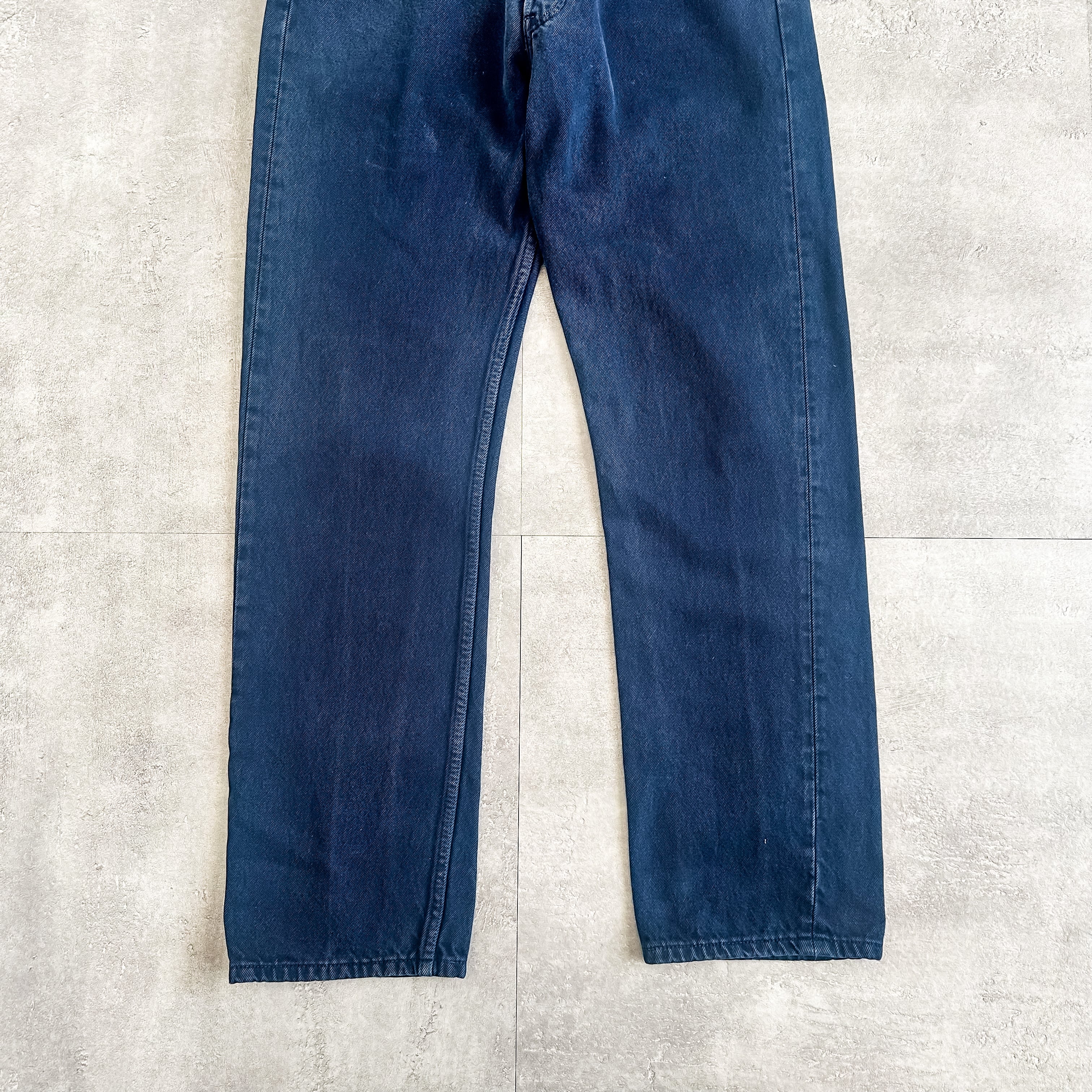 "501-0662"ストレートシルエットの後染めのネイビーになります。