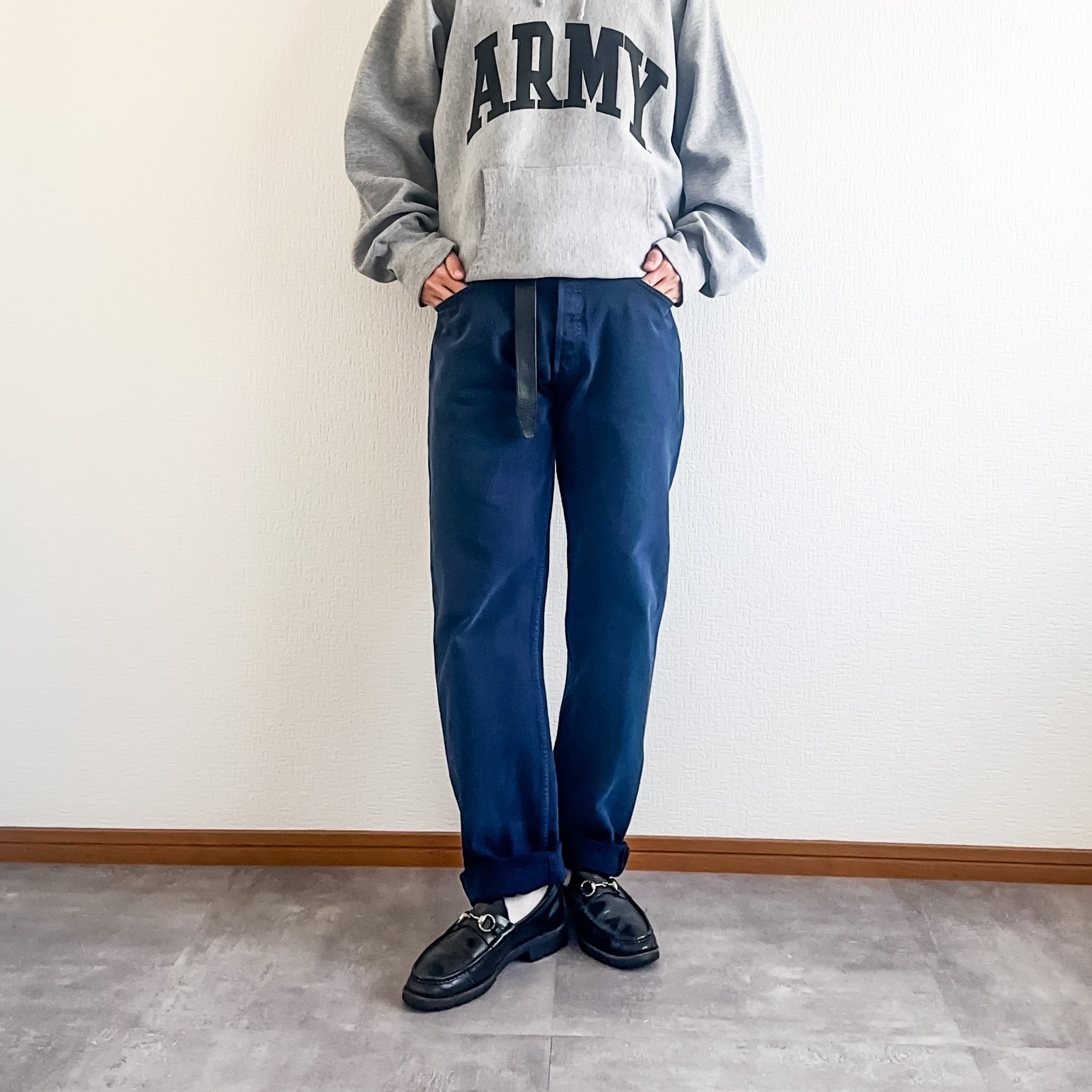 後染めブラックに比べて後染めのネイビーは殆ど見かけない印象ですね。