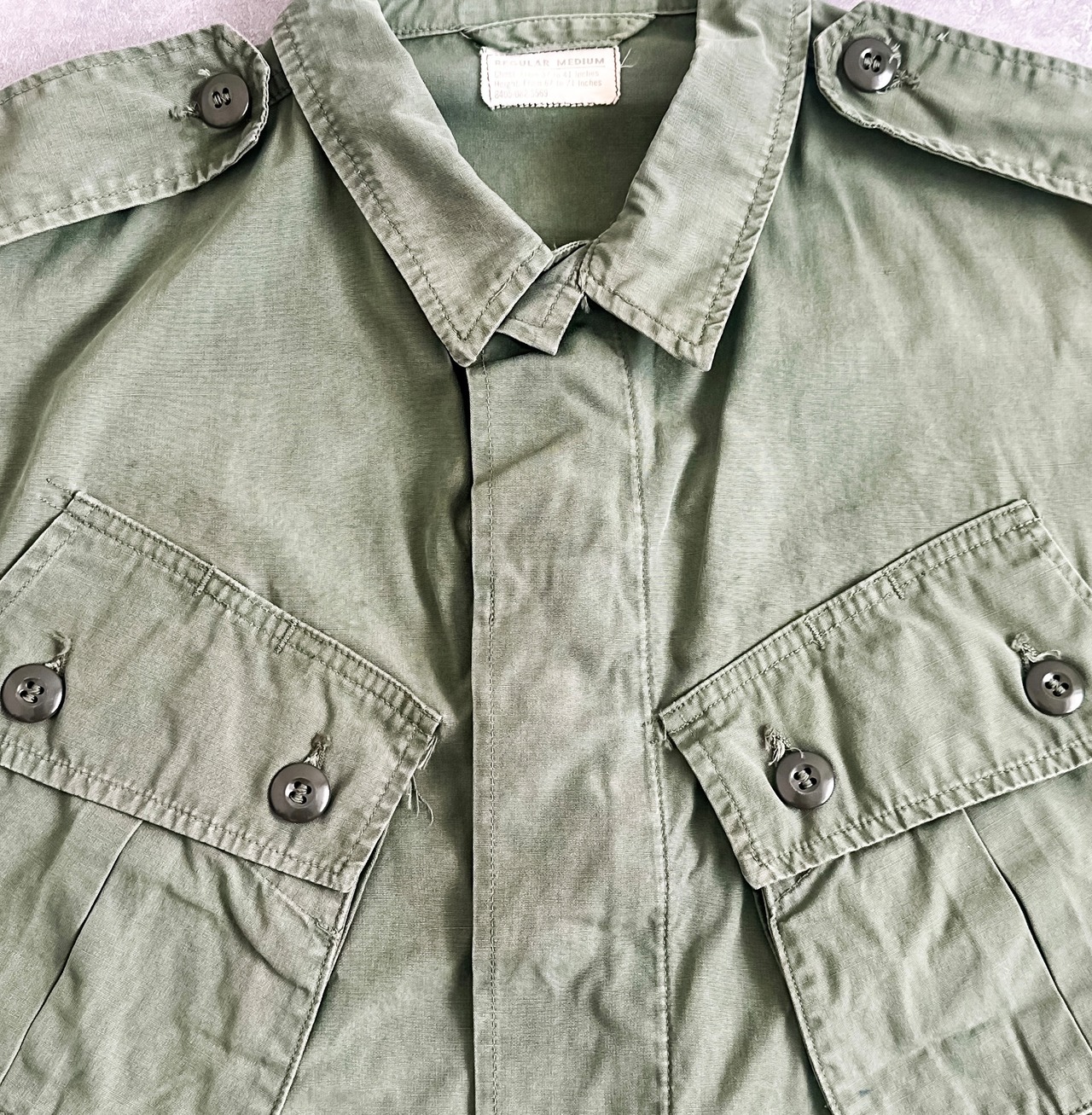 特徴 :1960年代のUS ARMYのジャングルファティーグジャケットの1stタイプ。