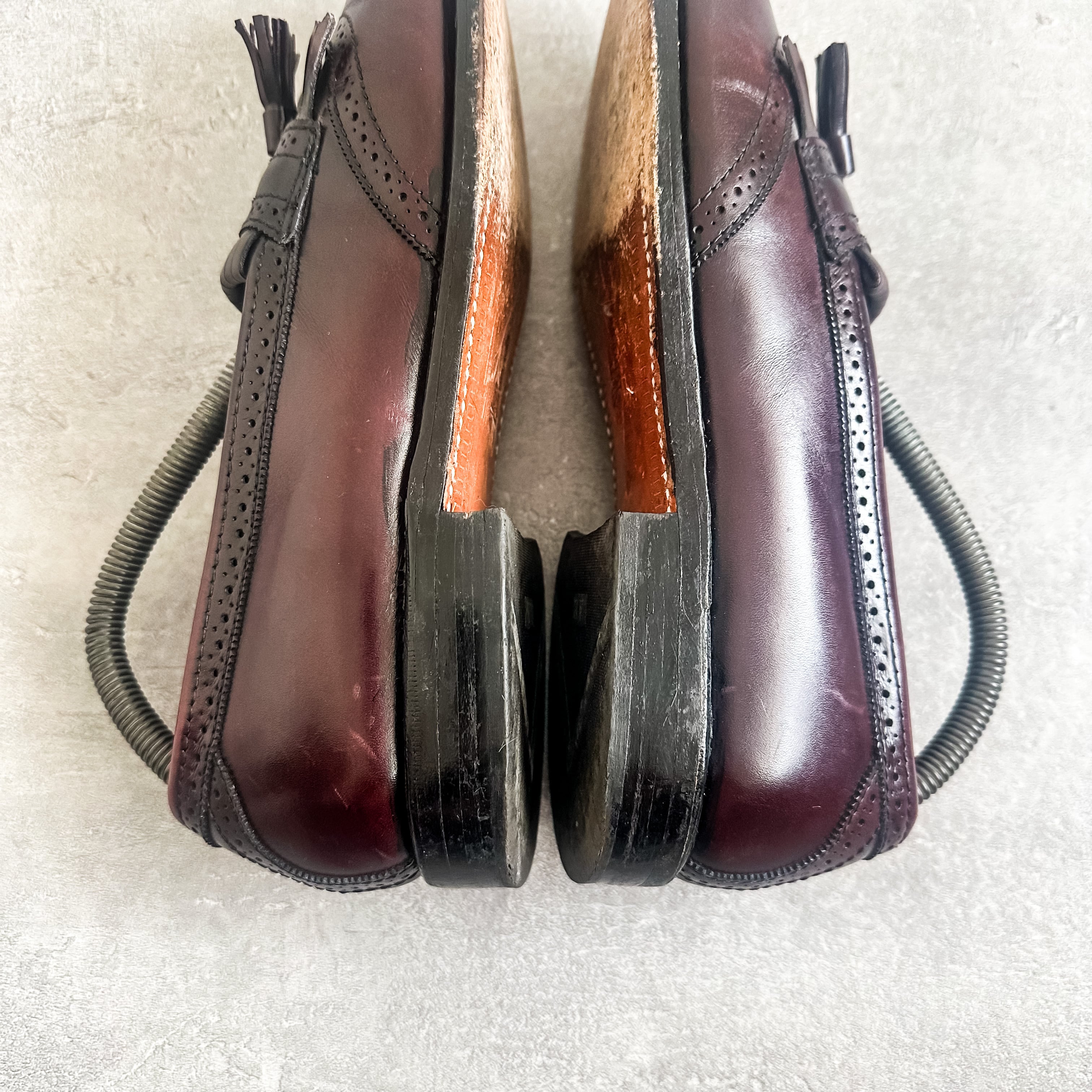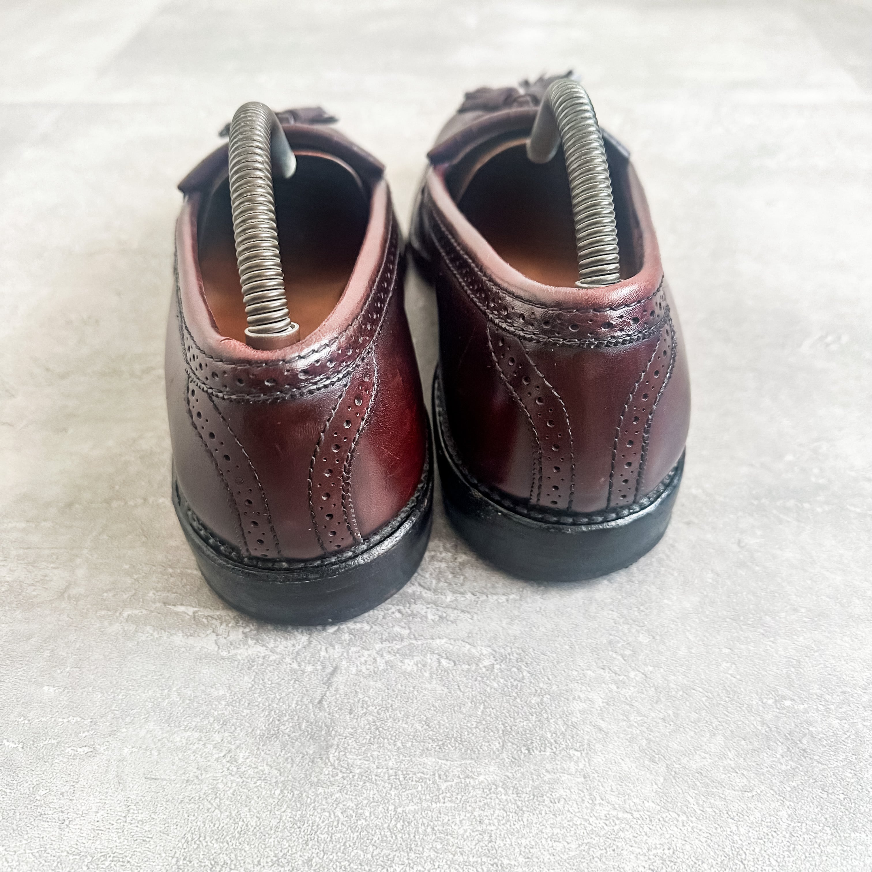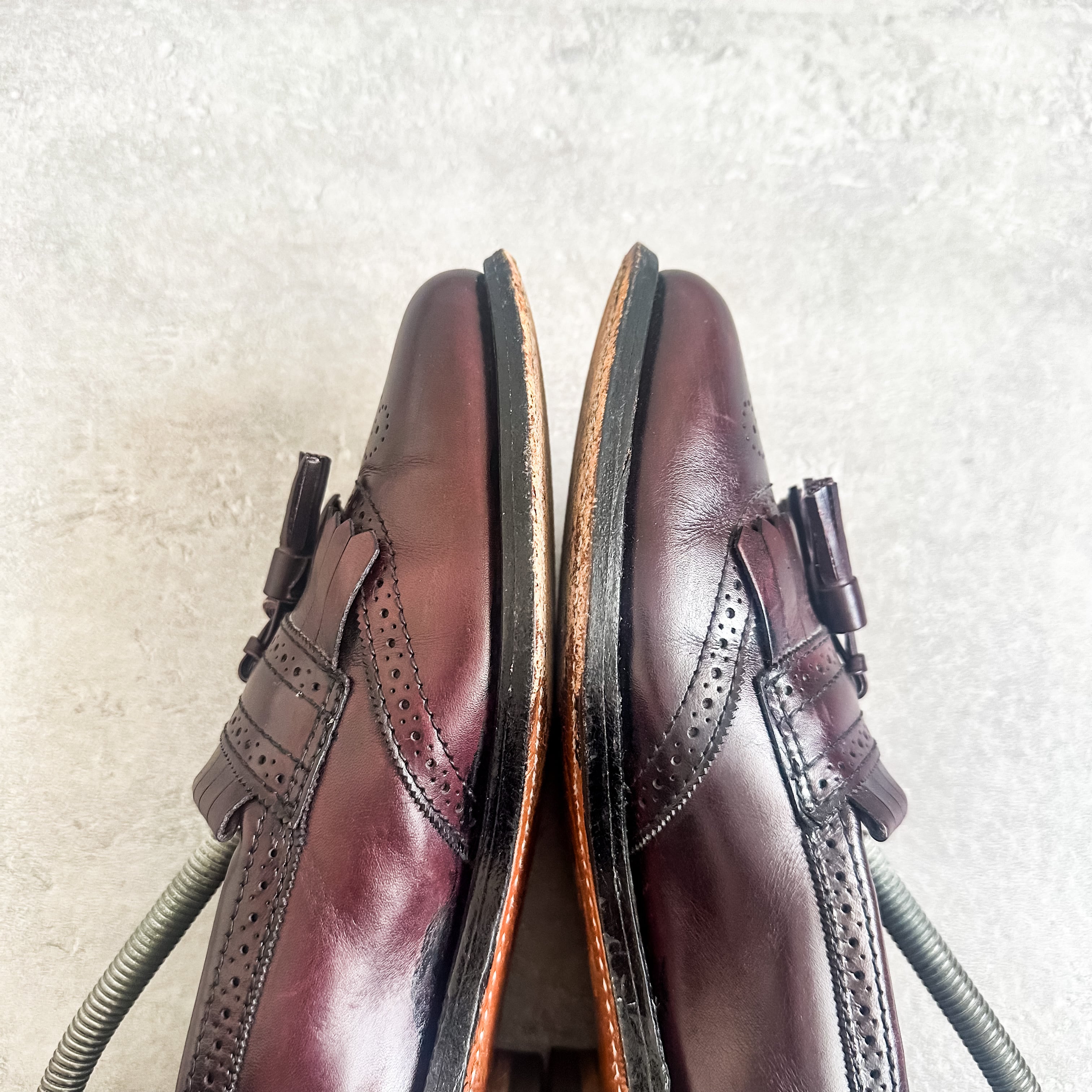 バーガンディ系のカラーリングに、パンチングデザインやキルトタッセルの付く素晴らしい一足です。