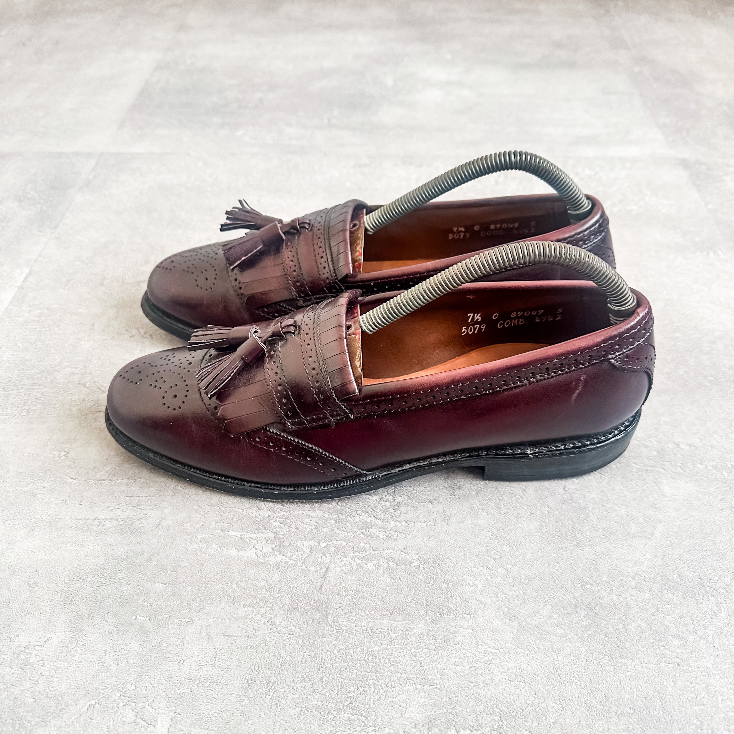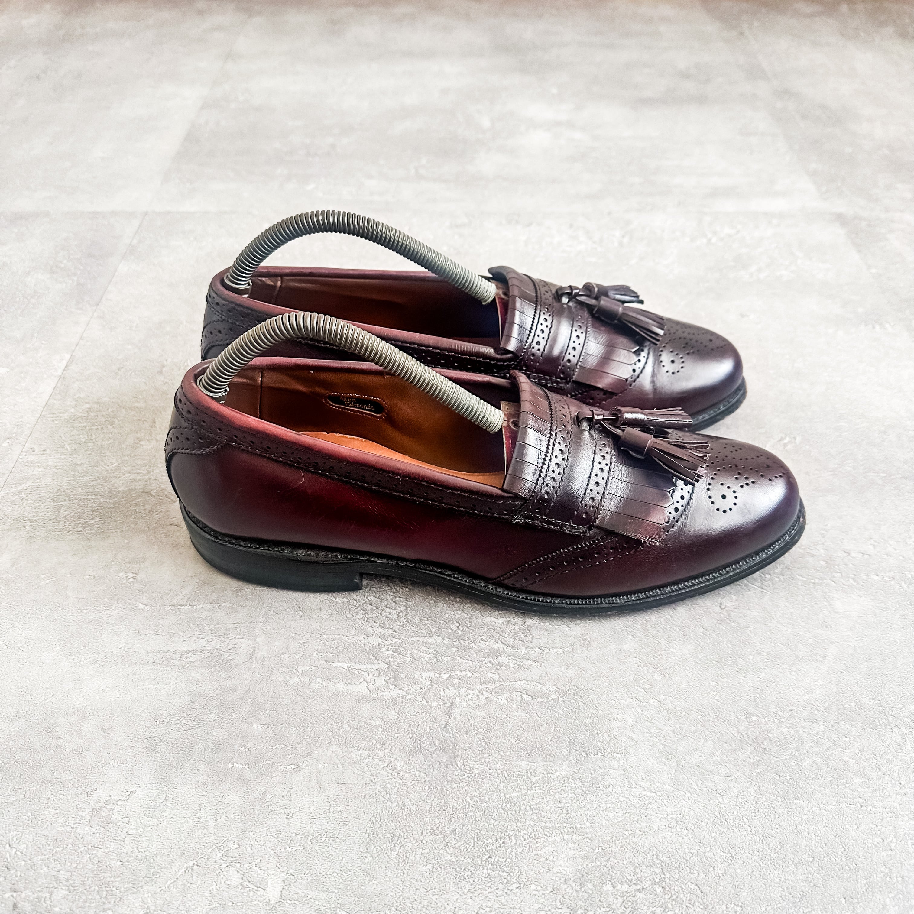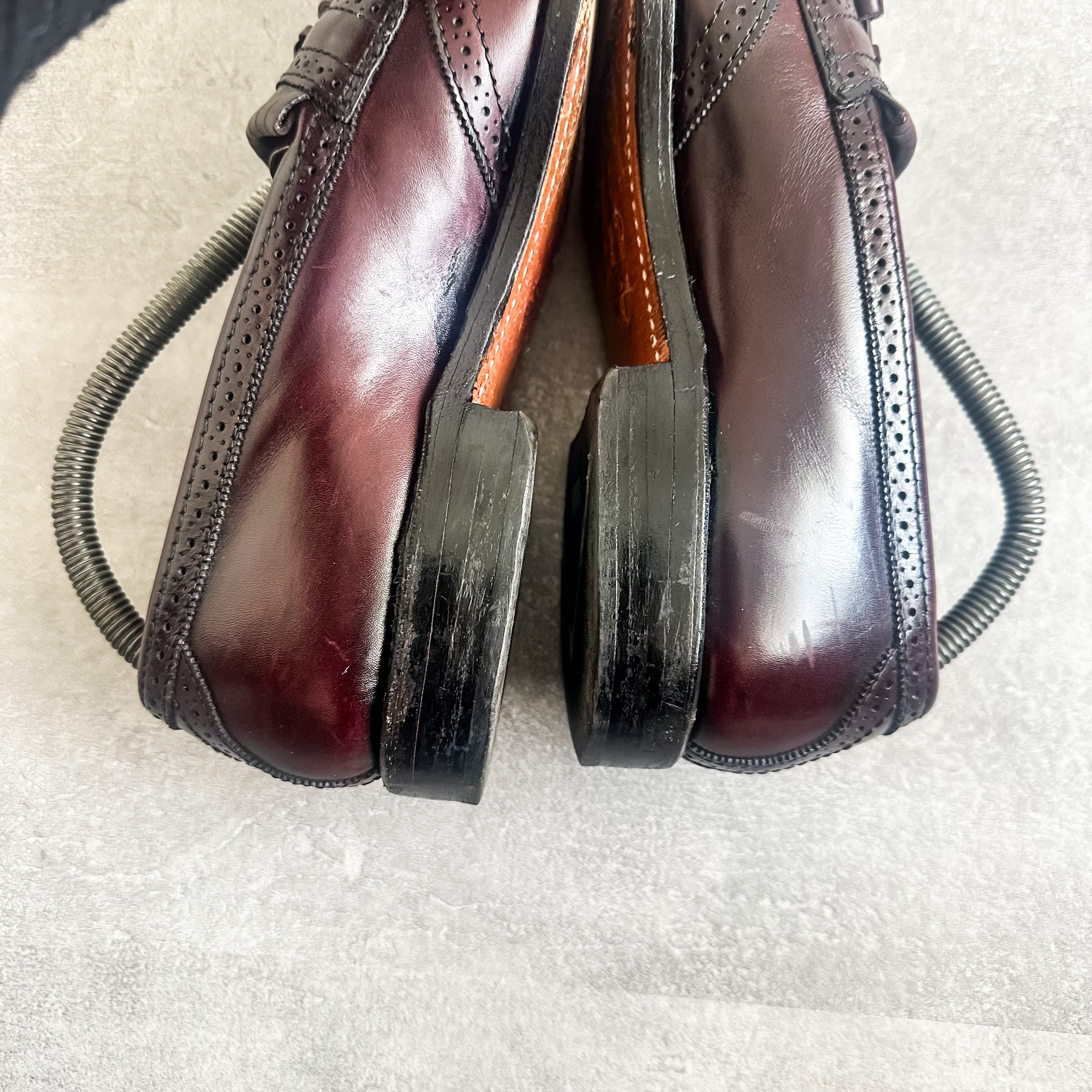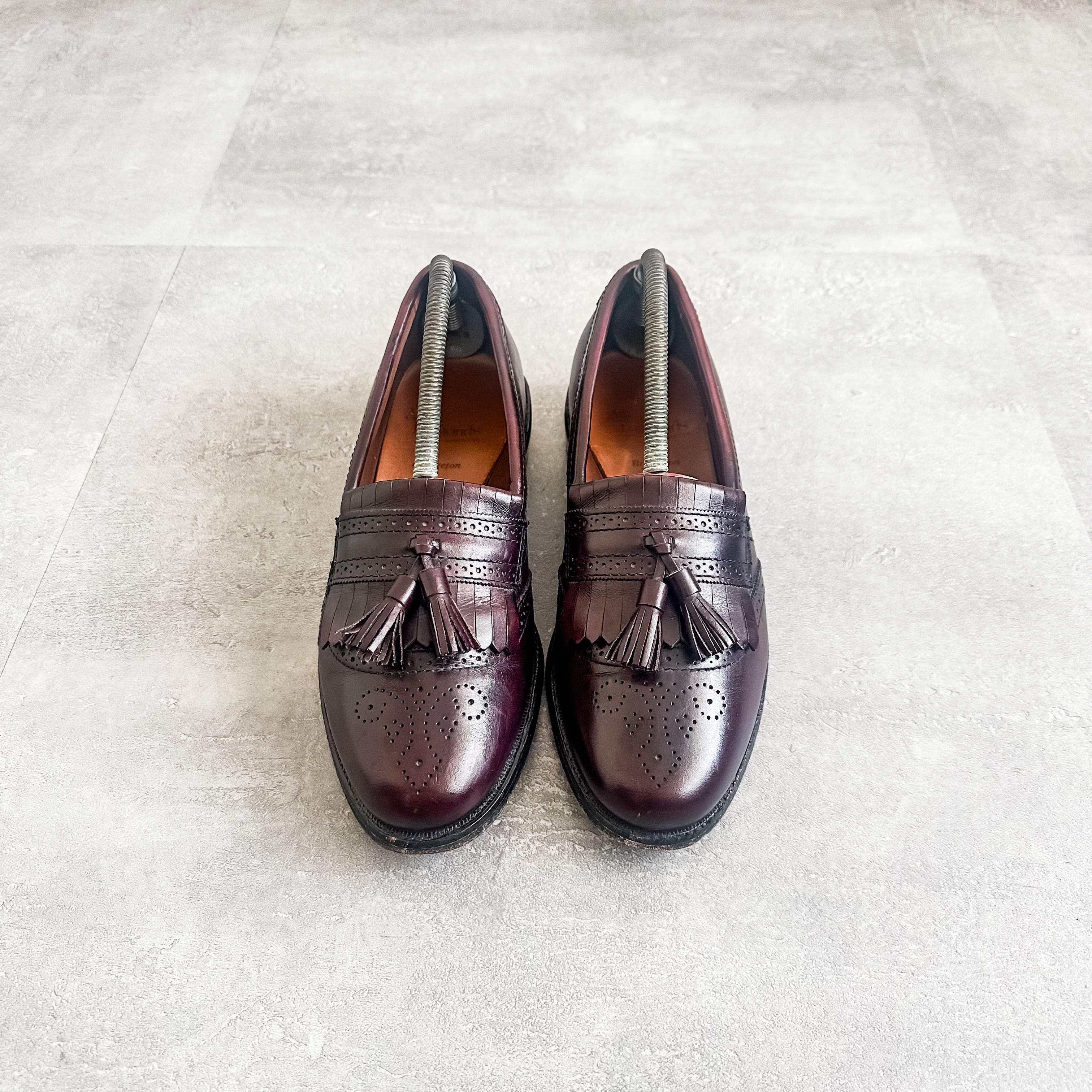 バーガンディ系のカラーリングに、パンチングデザインやキルトタッセルの付く素晴らしい一足です。