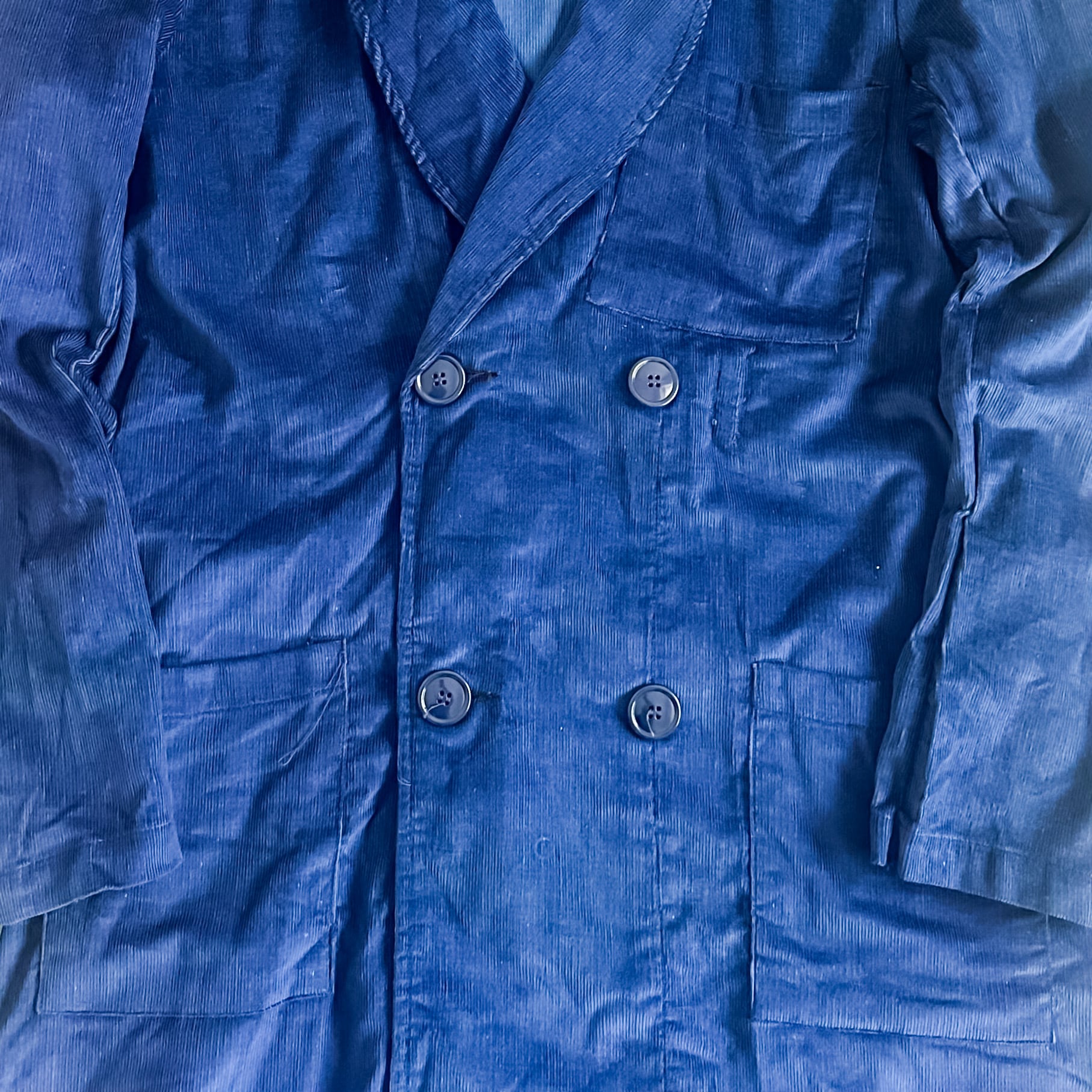 少し青みのあるネイビー系のカラーに、コットン×ポリの混紡のコーデュロイファブリック。