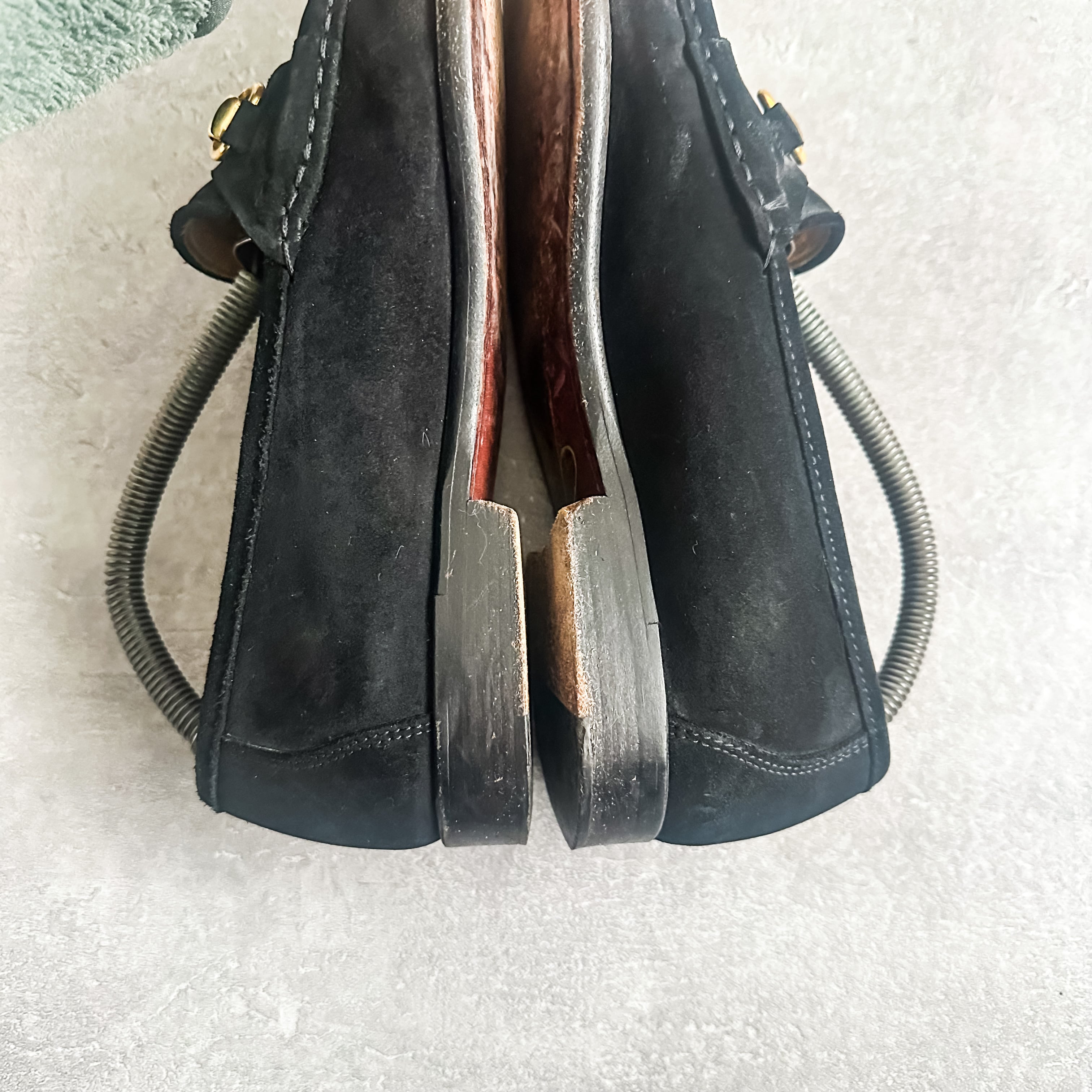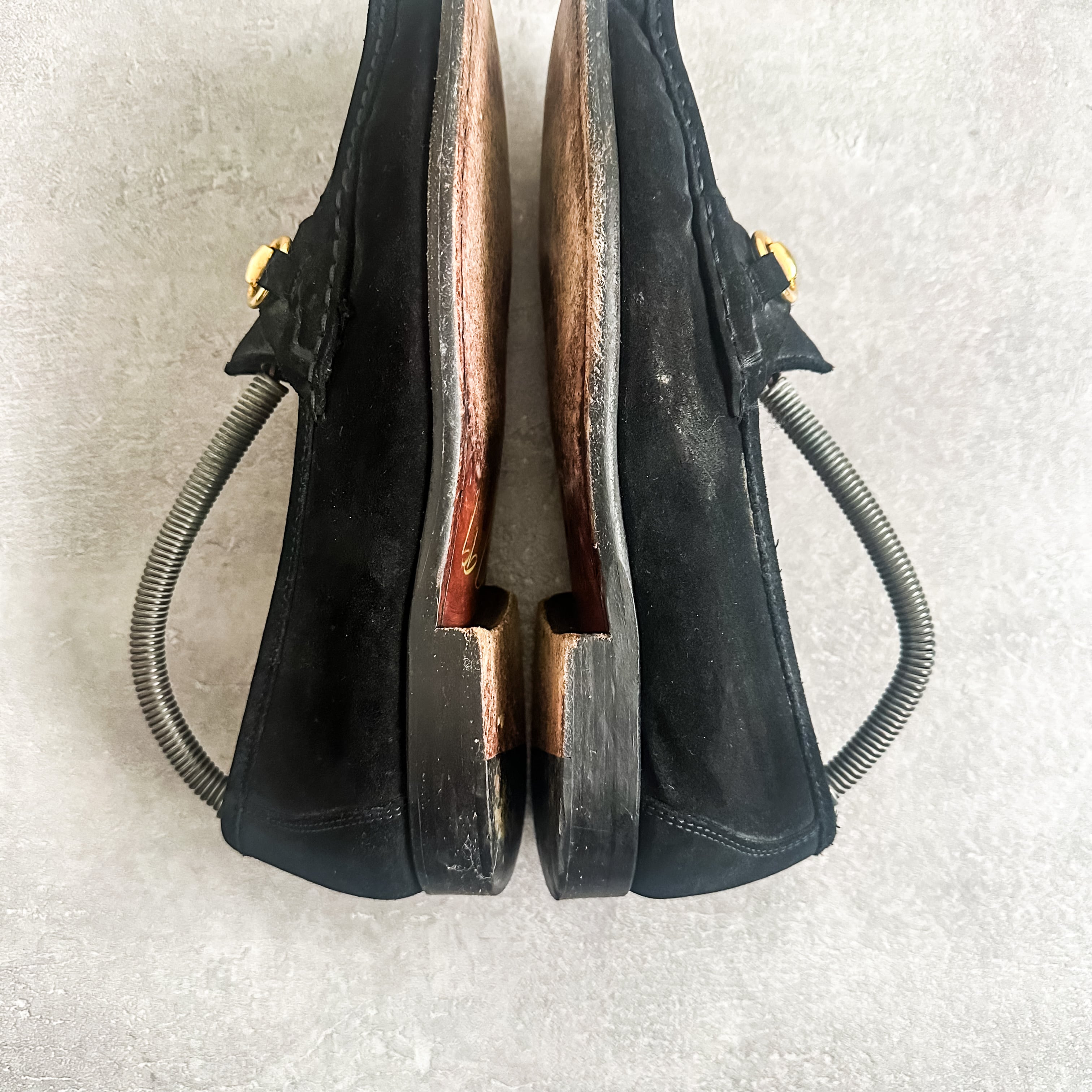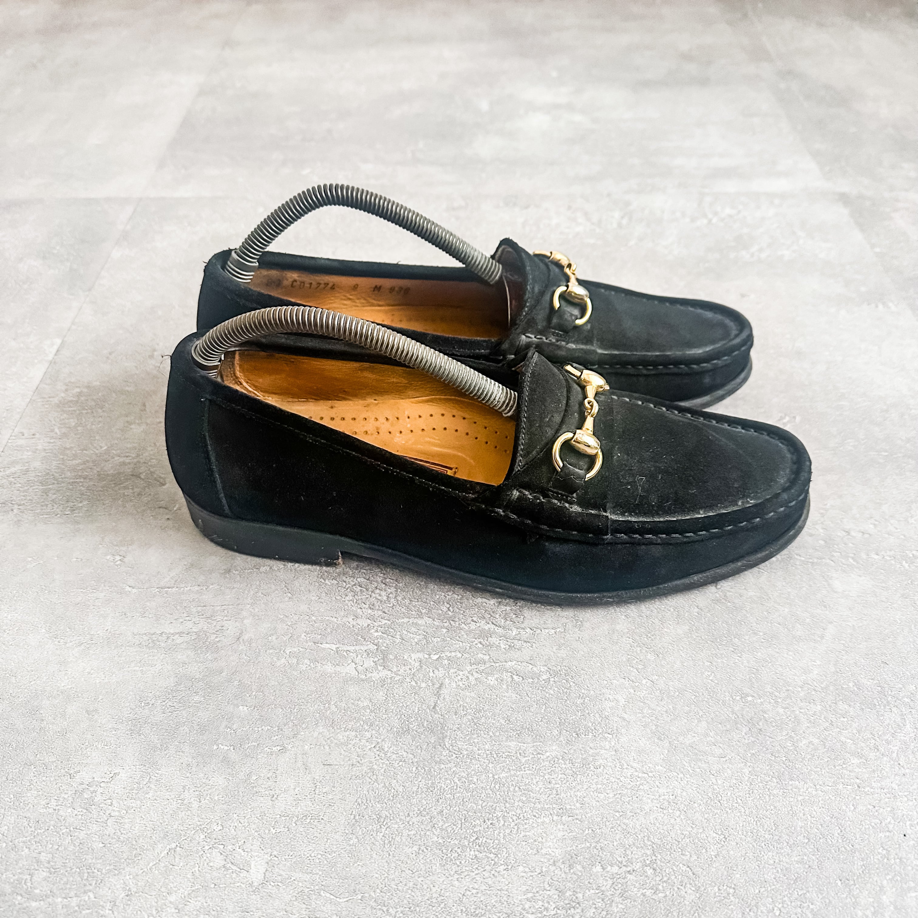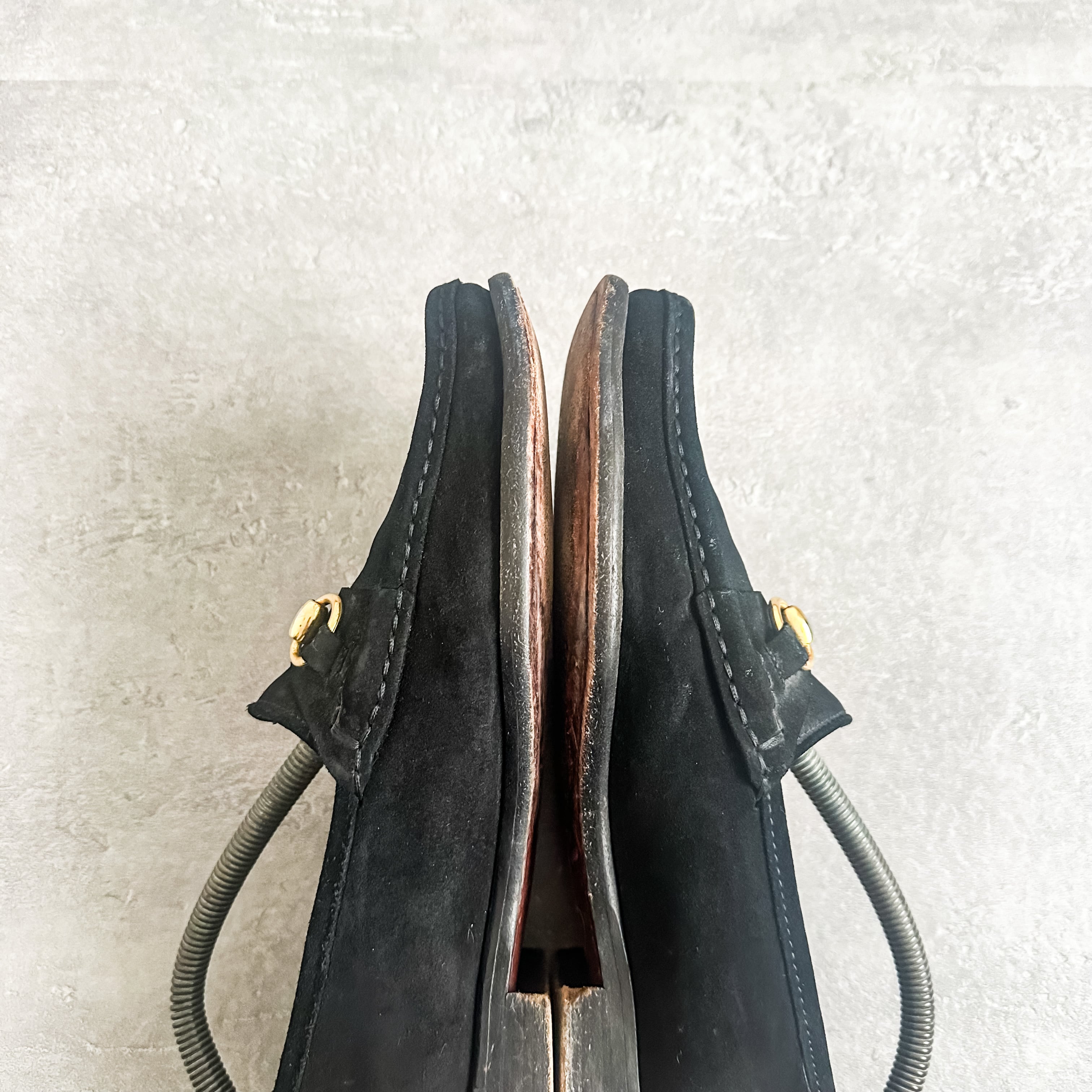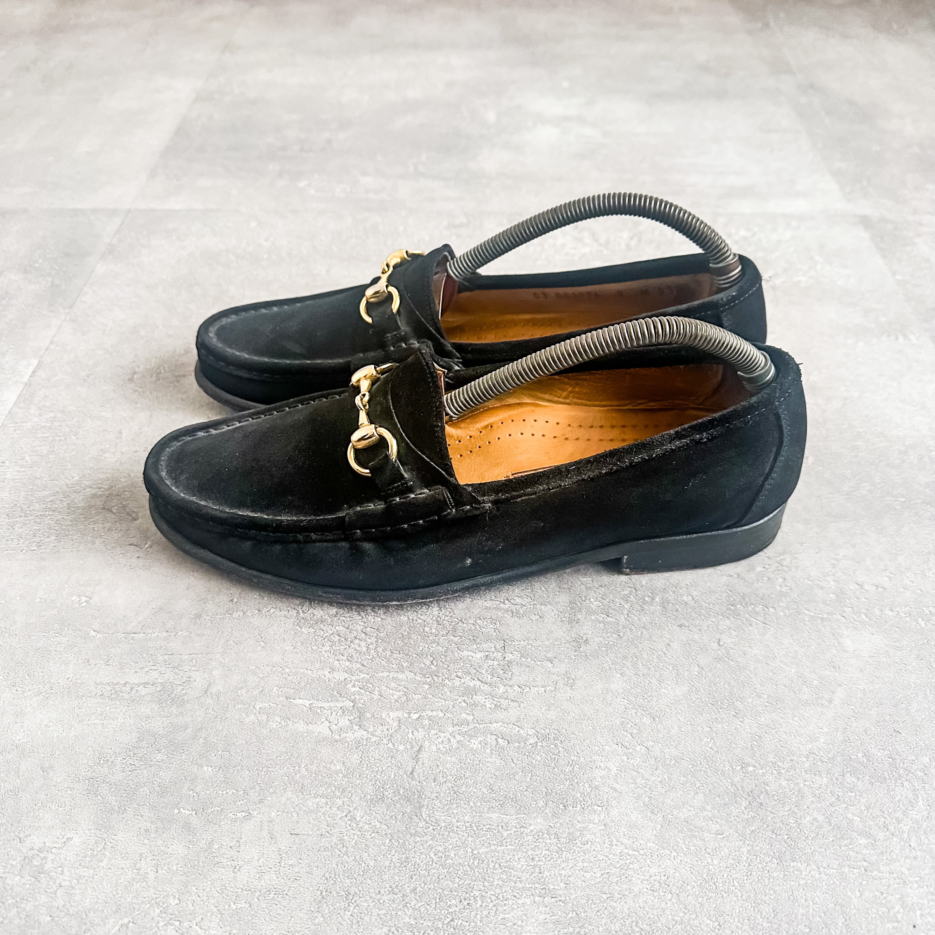 定番で人気のあるビットローファースタイルにブラックカラーのスエードレザーがクールで非常に良い一足かと。
