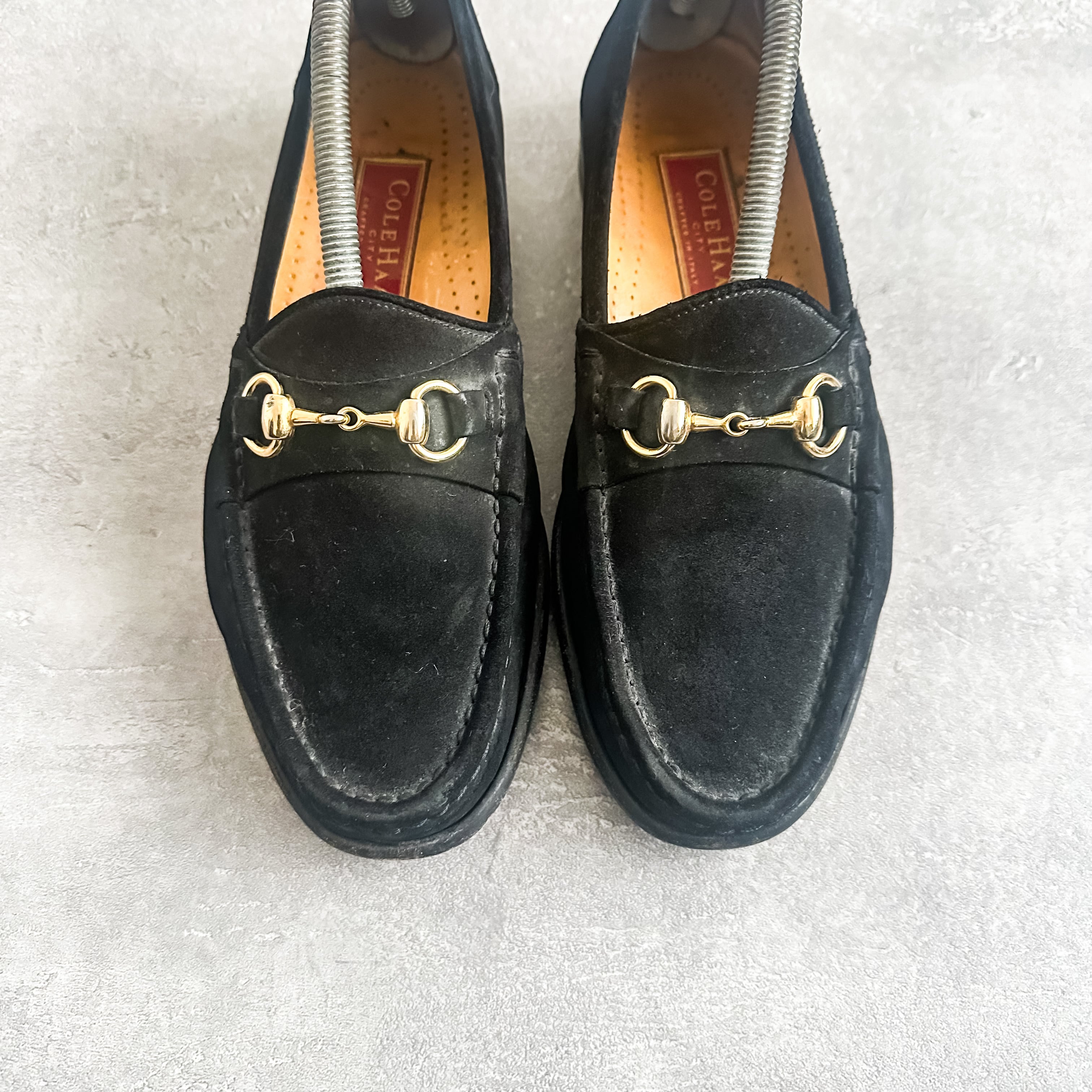 "COLEHAAN" black suede leather bit loafer made in Italy