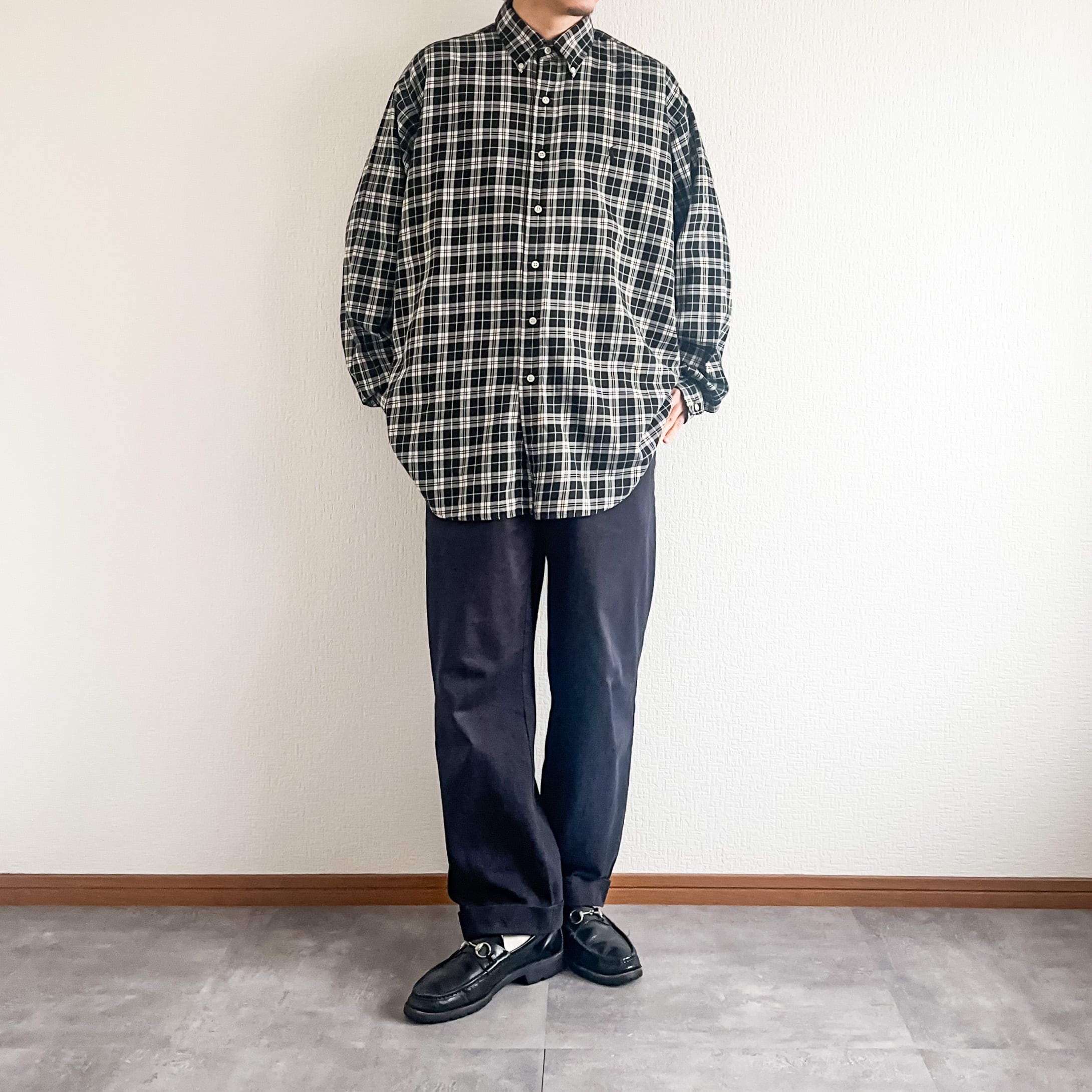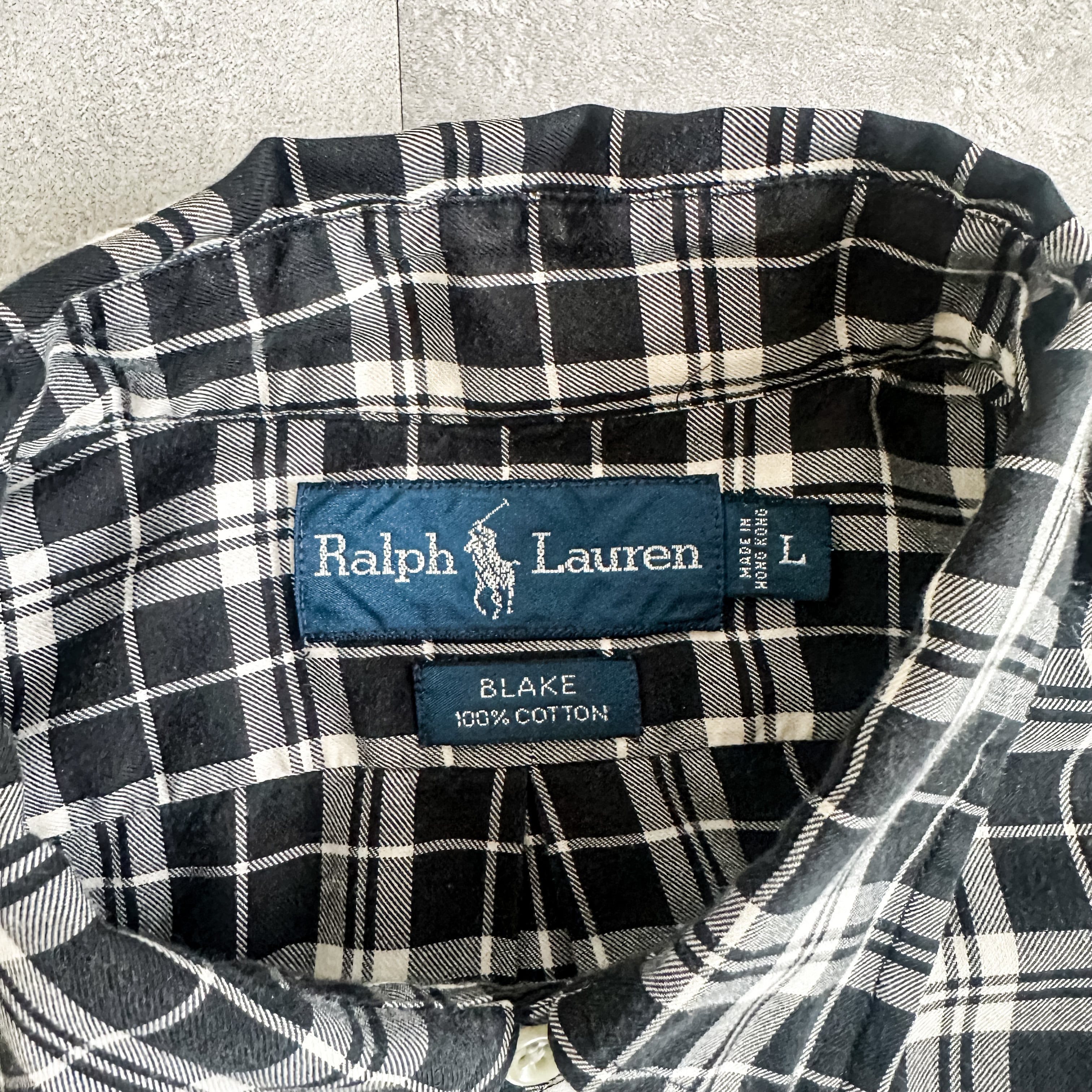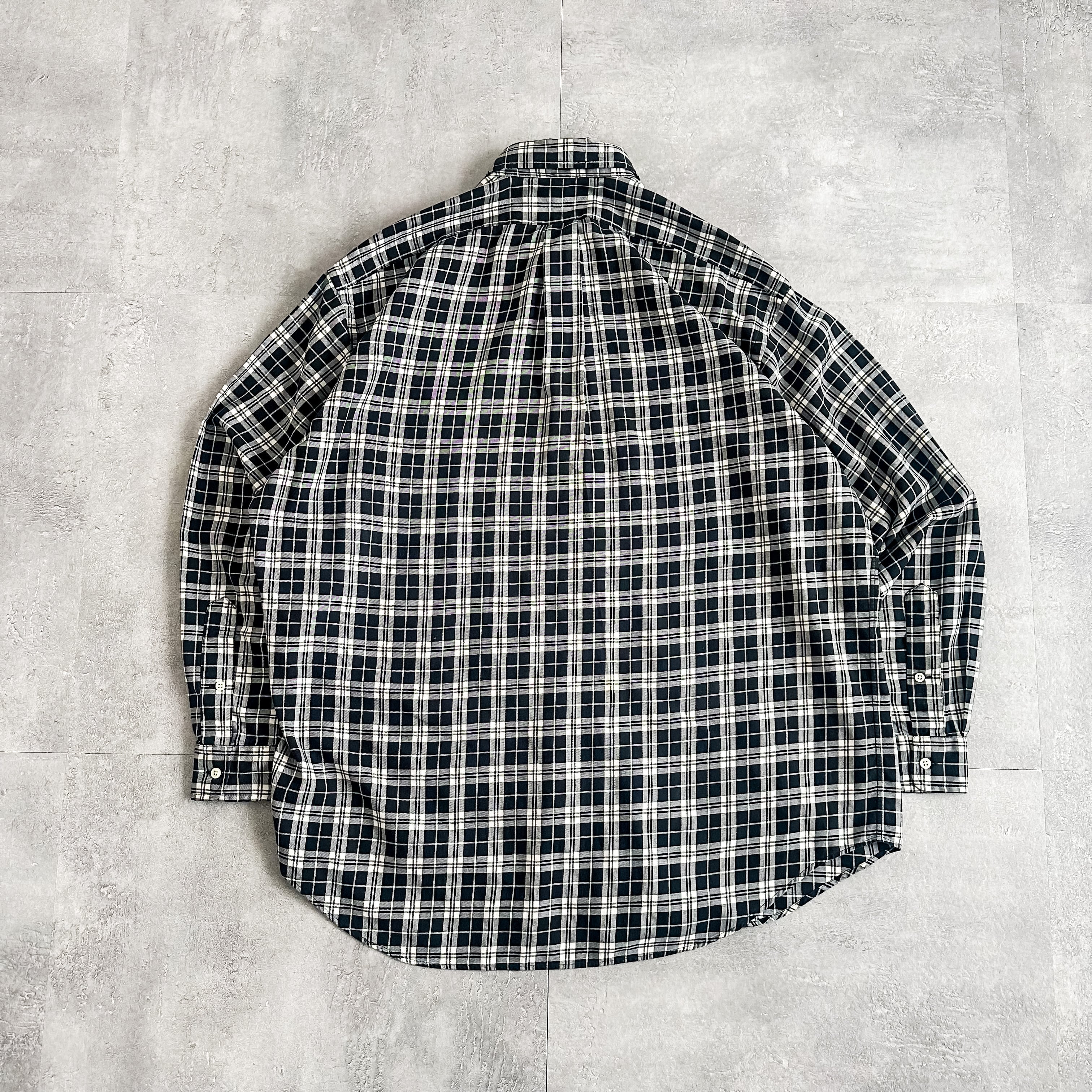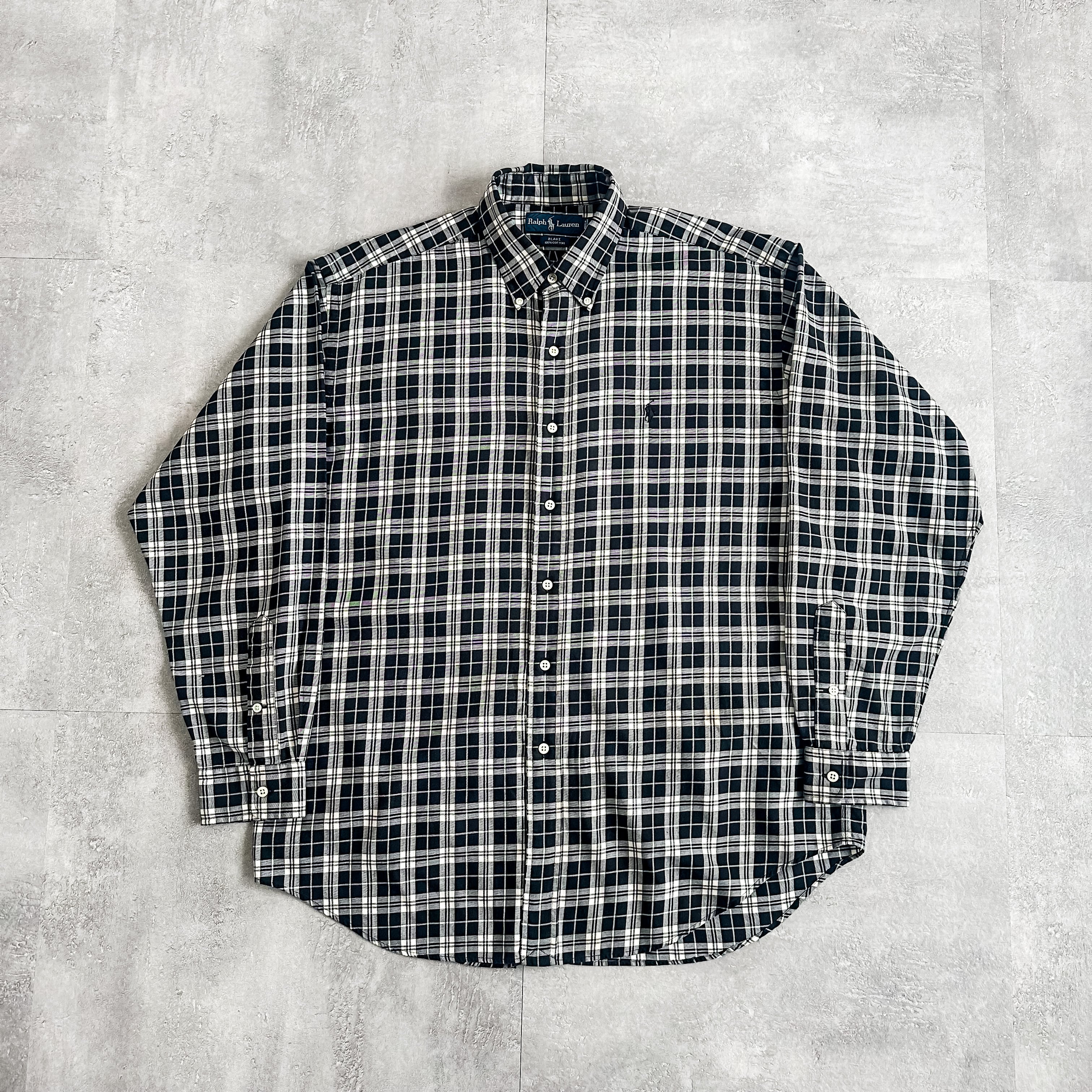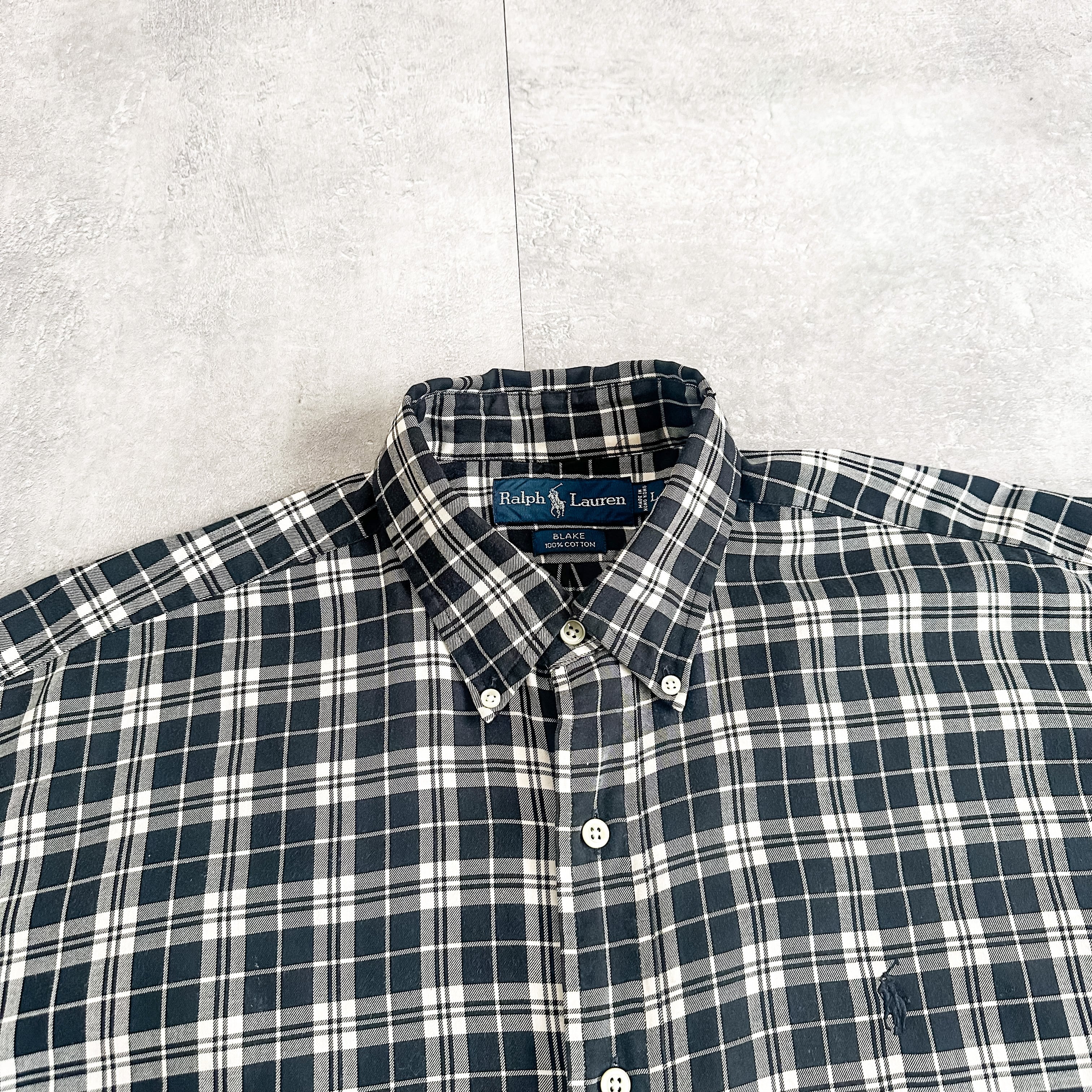 1990's Ralph Lauren "BLAKE" B/D monotone plaid pattern cotton shirt made in HONGKONG