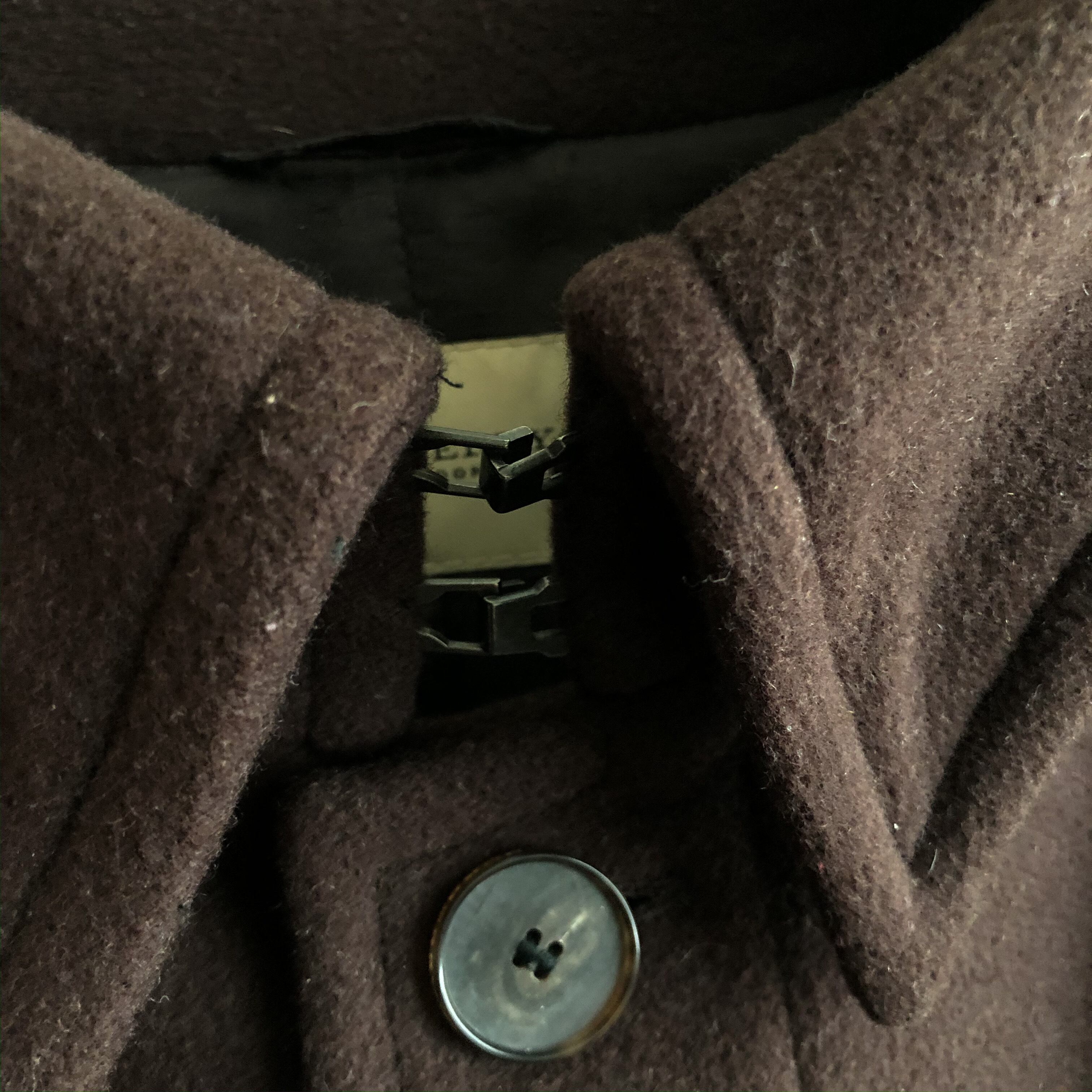 特徴 :落ち着いたダークブラウンカラーに暖かみのあるウール100%が使用されたイタリア製の上質なバーバリーロンドンのバルマカーンコート。