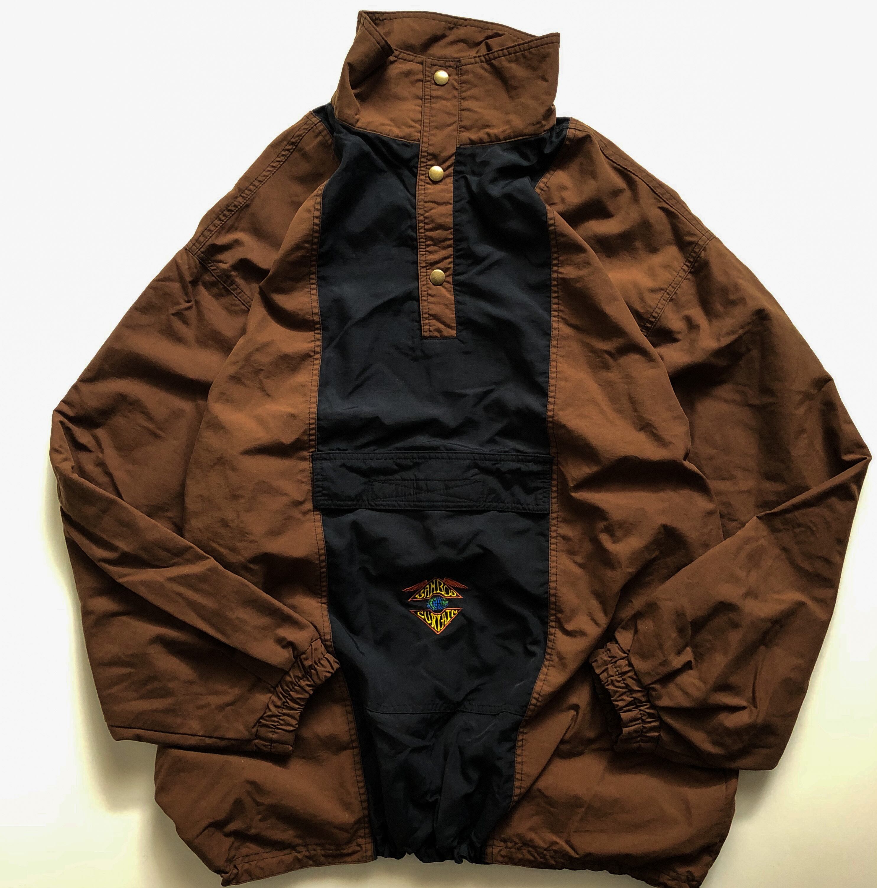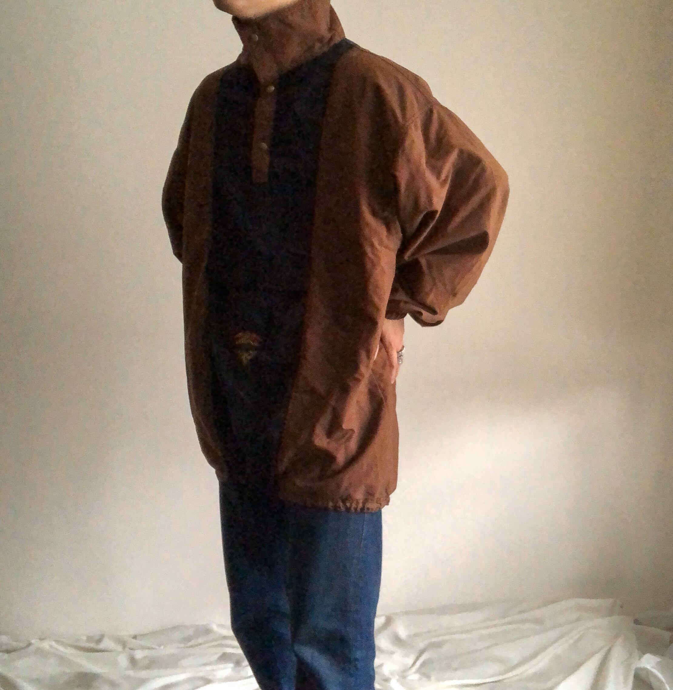 特徴 :90sらしい大胆な切り替えに、人気のハーフスナップのナイロンアノラックジャケット。