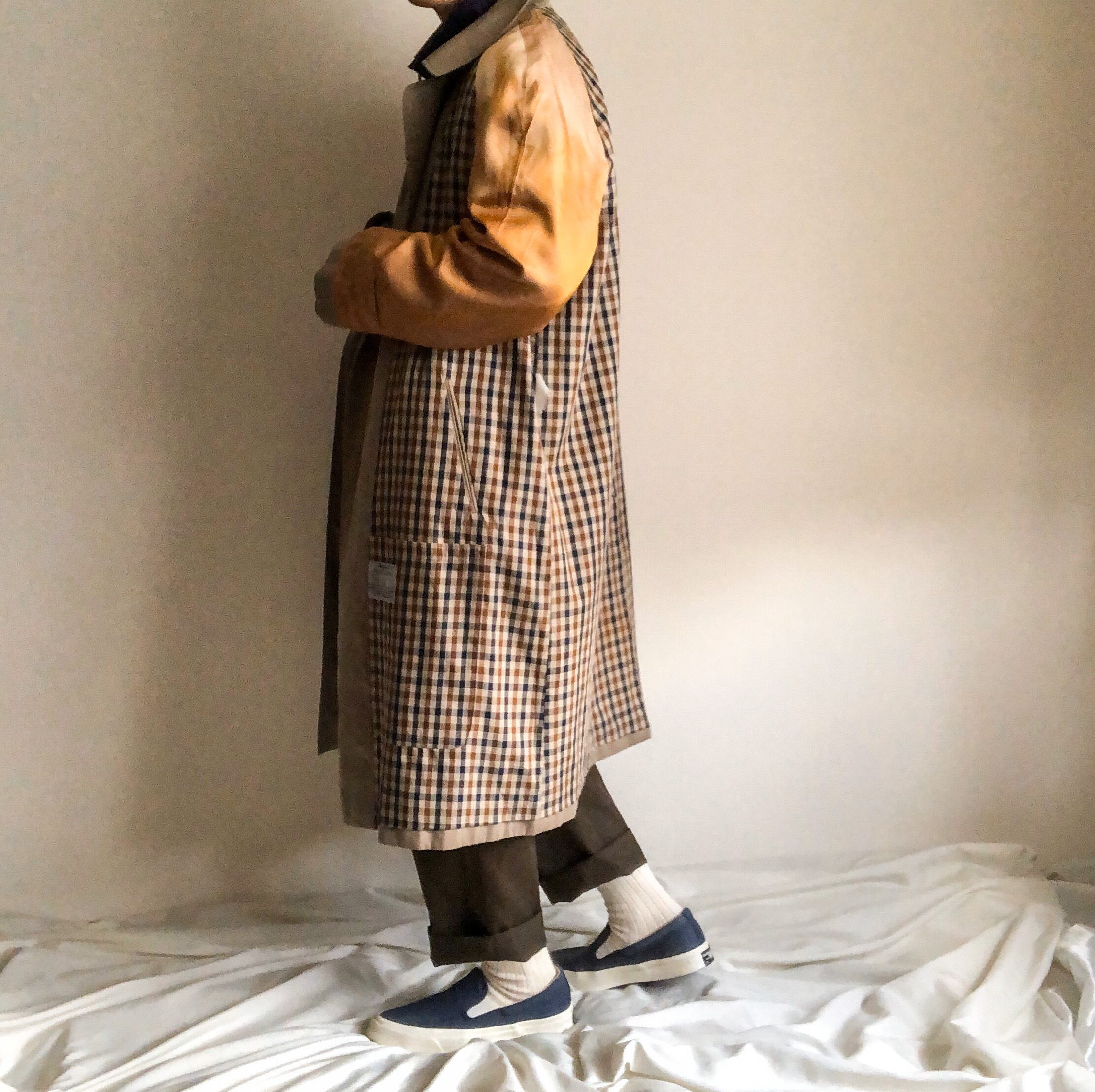 本来リバーシブルではありませんがこのAquascutumの裏地のチェック柄は配色も良く、裏返して着ても素晴らしいデザインだと思います。