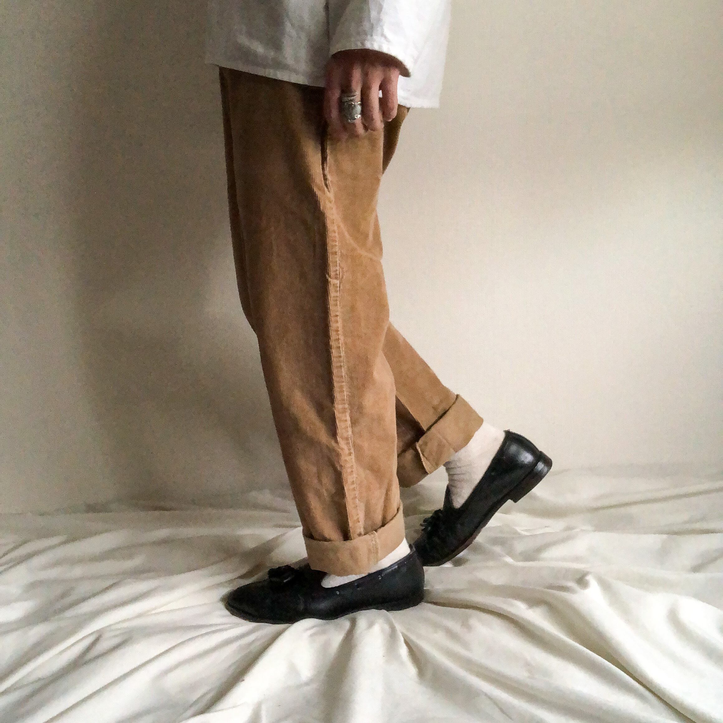 腰回りはゆったりで、裾に向かって緩やかにテーパードが効いている為穿きやすく90年代頃の物にはなりますが、古臭く無くこれが逆に今っぽく穿いて頂けるアイテムかと思います。