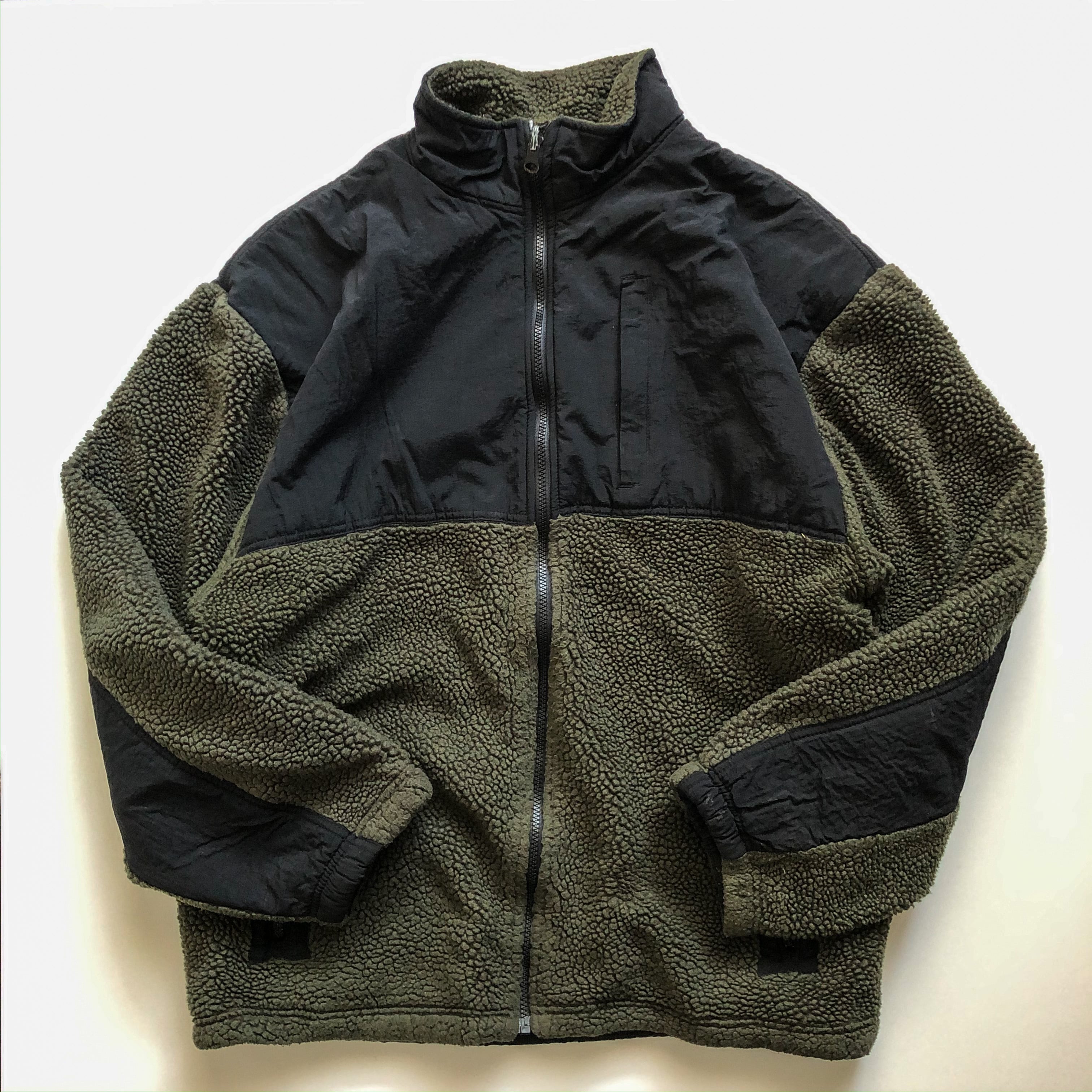 グリーン×ブラックのグッドな配色でしかもパイル面はノースフェイスのデナリジャケットのようなナイロンとの切り替えになった素晴らしいルックス。