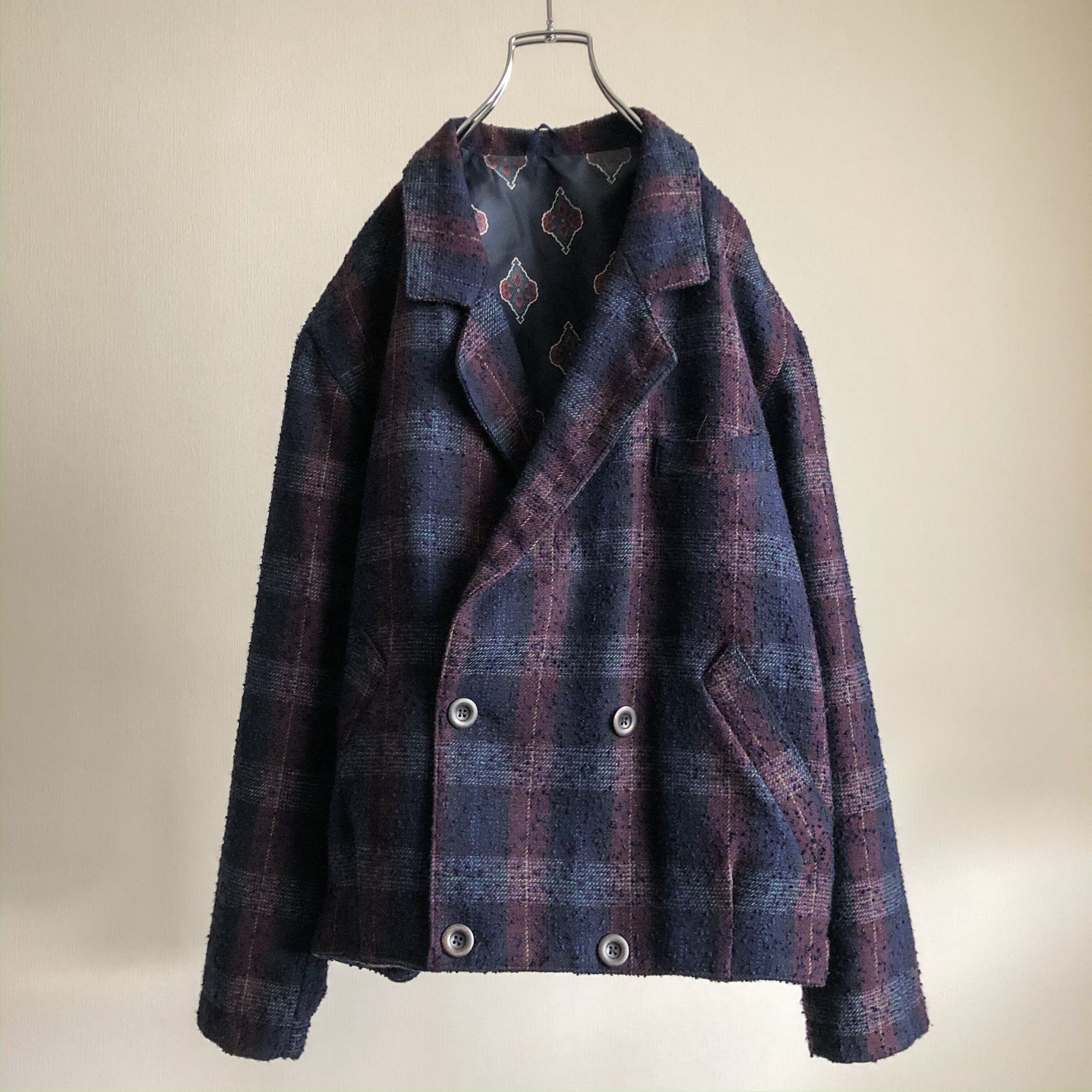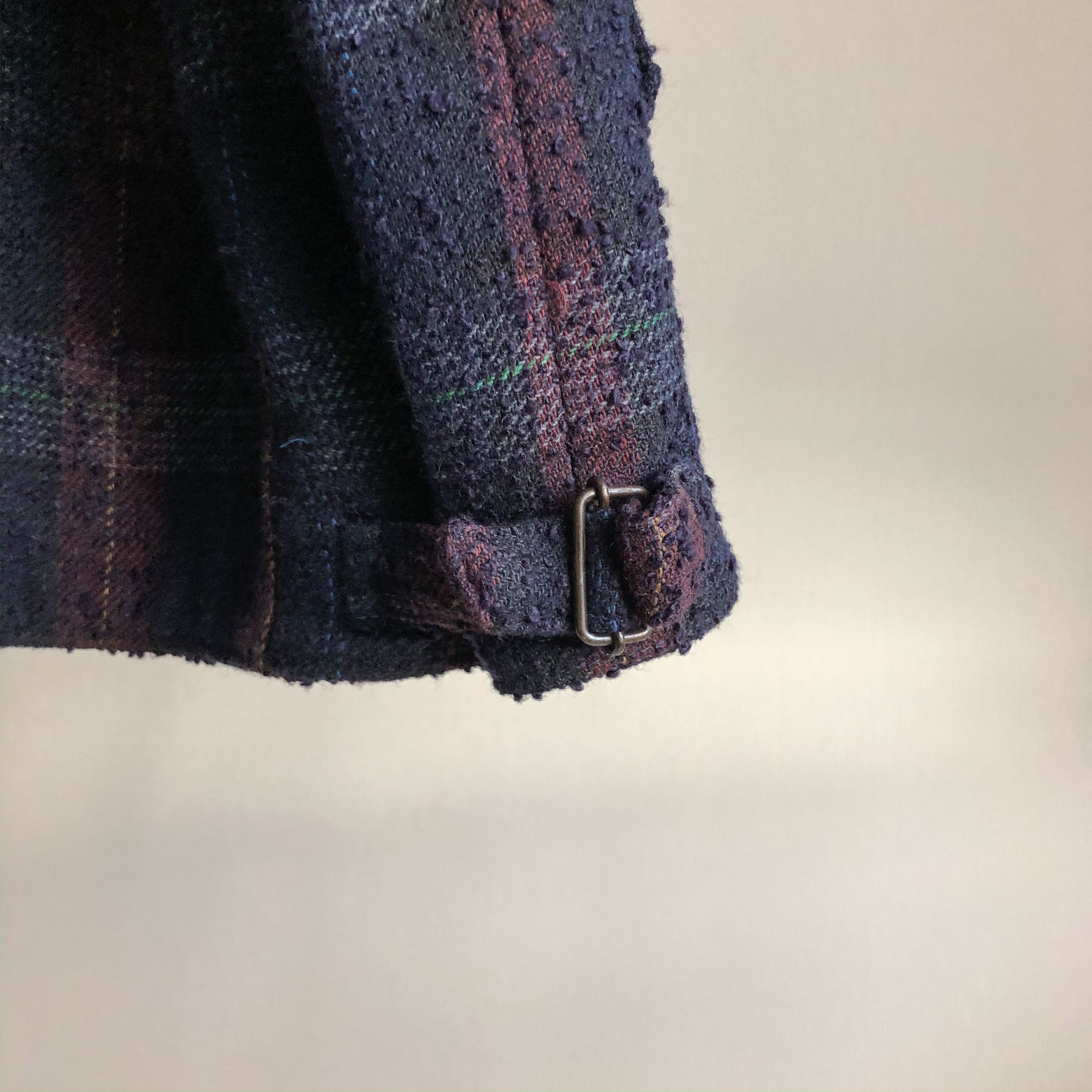 特徴 :ネップのようなポツポツとした立体感のある生地に落ち着いたカラーリングのチェック柄がグッドなテーラードジャケット。