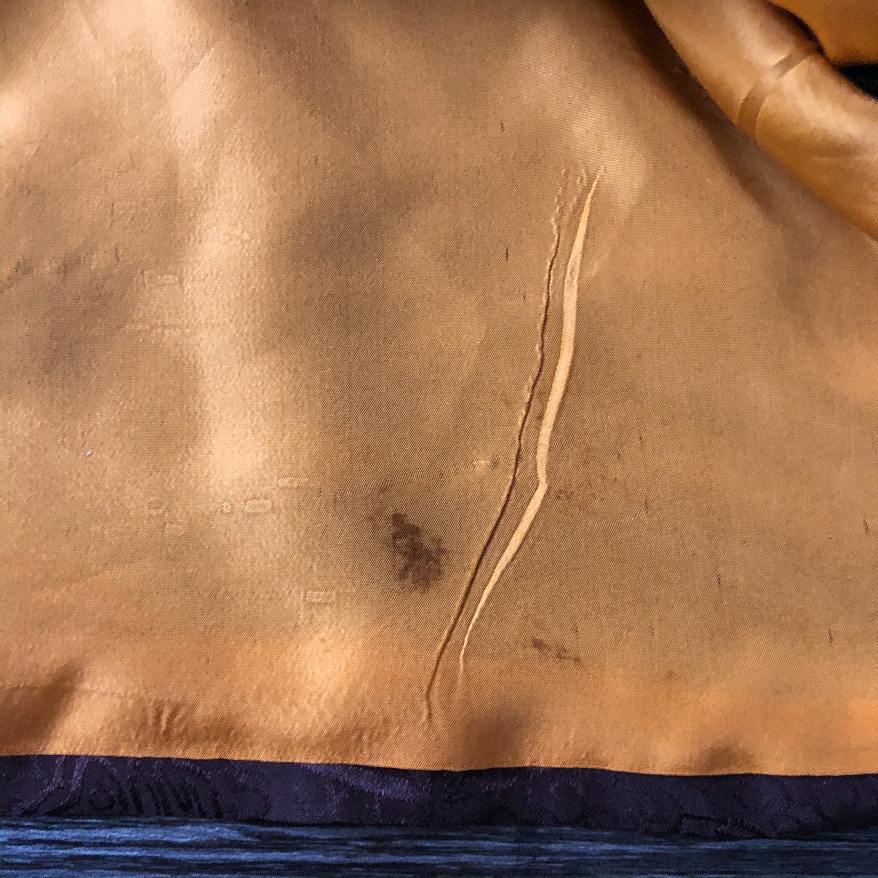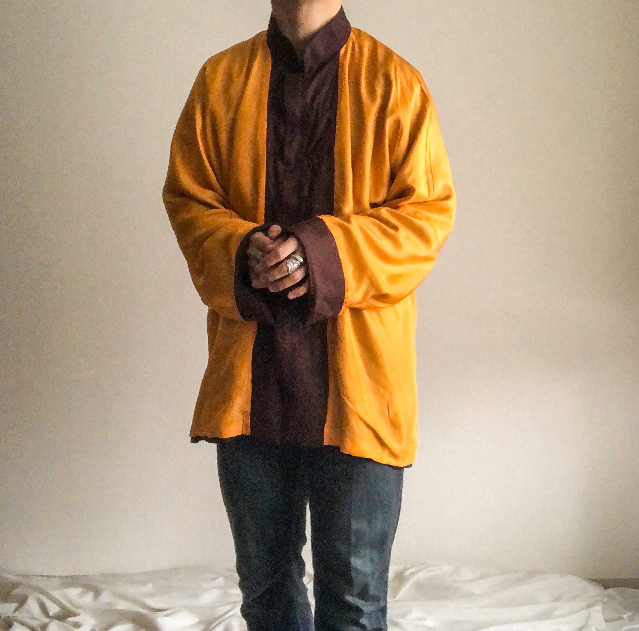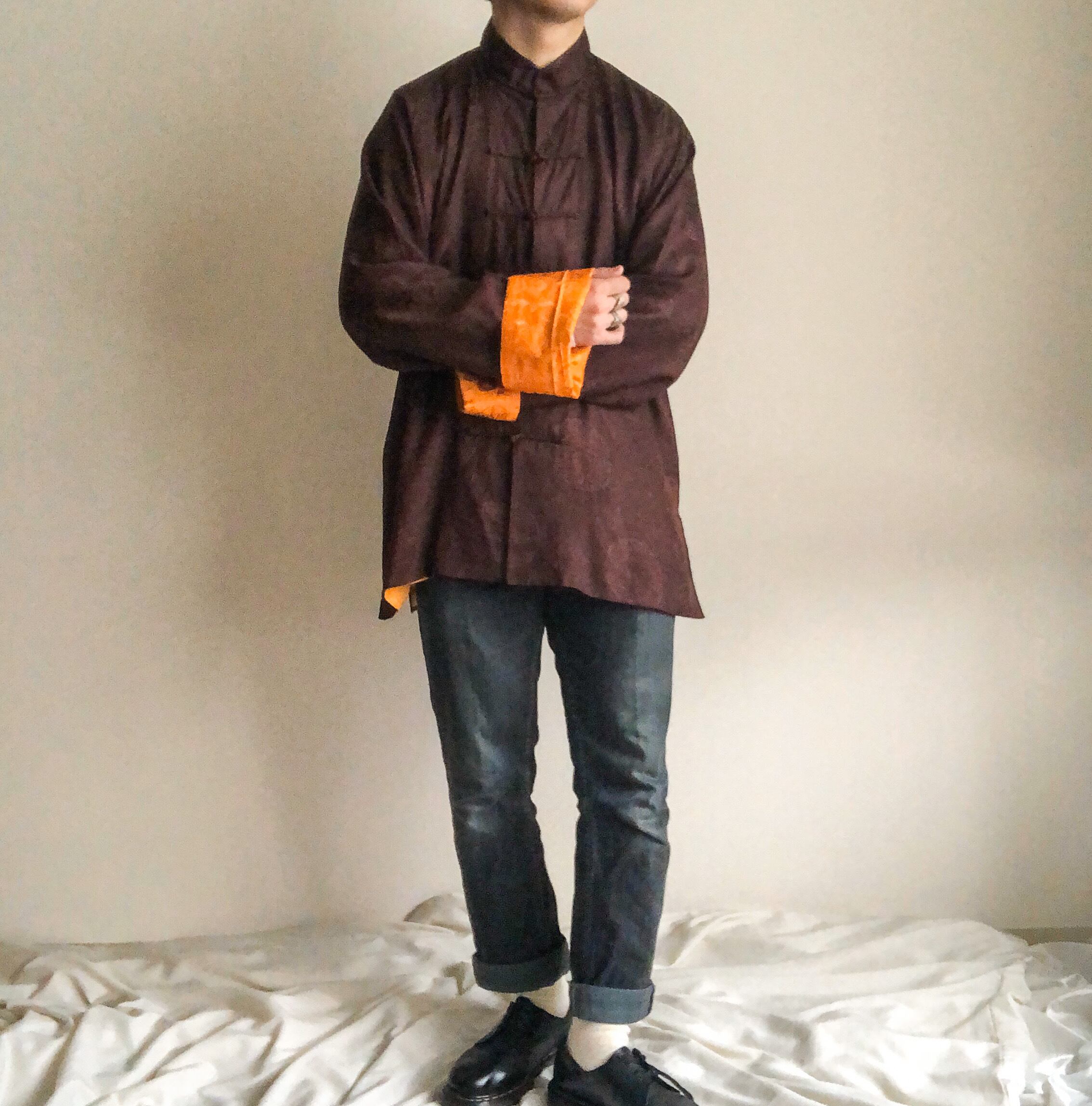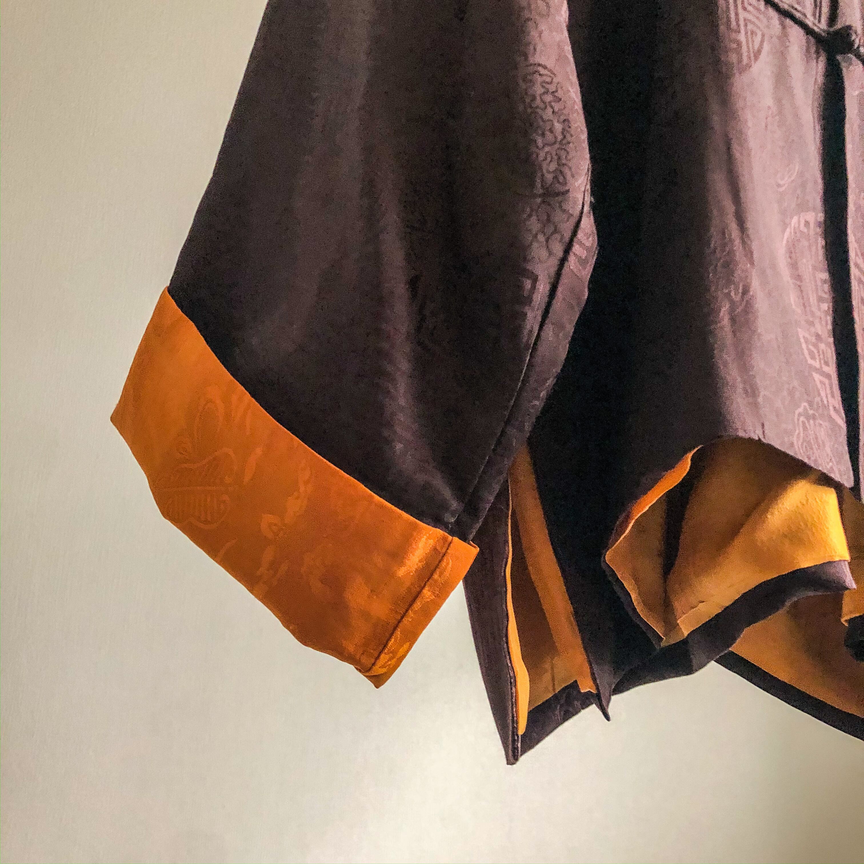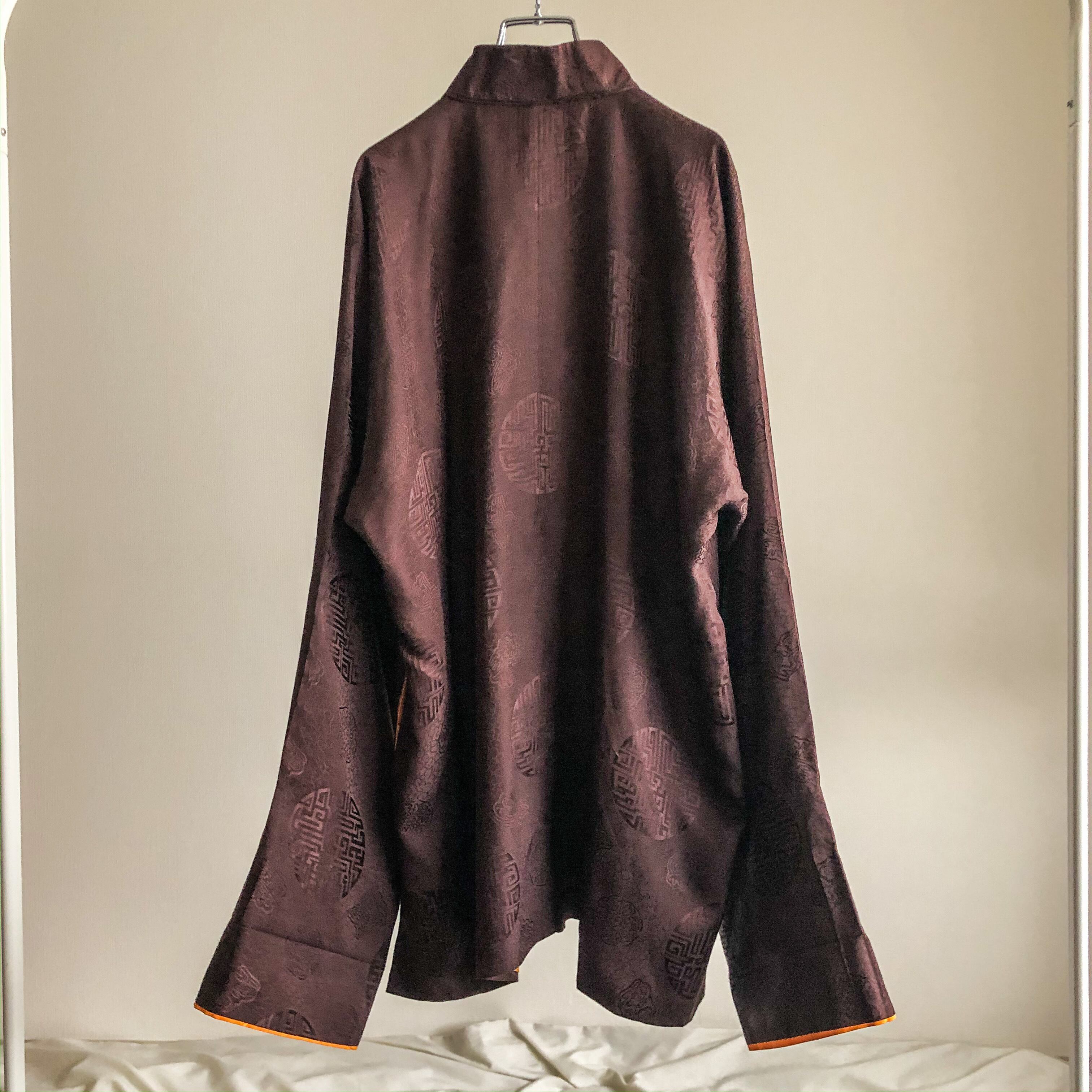 特徴 :ブラウンカラーにチャイナジャケットらしいテキスタイルが素晴らしいシルクチャイナジャケット。
