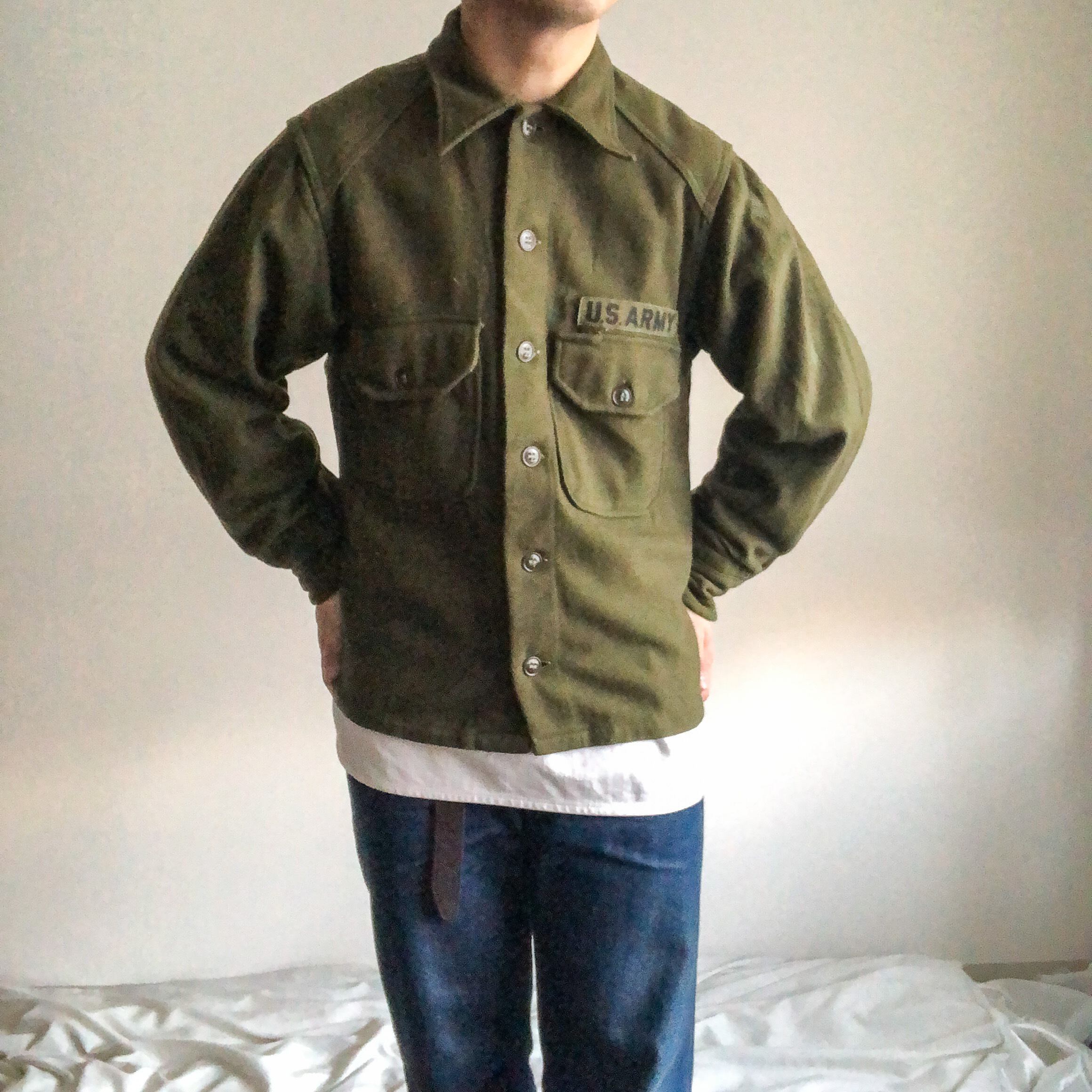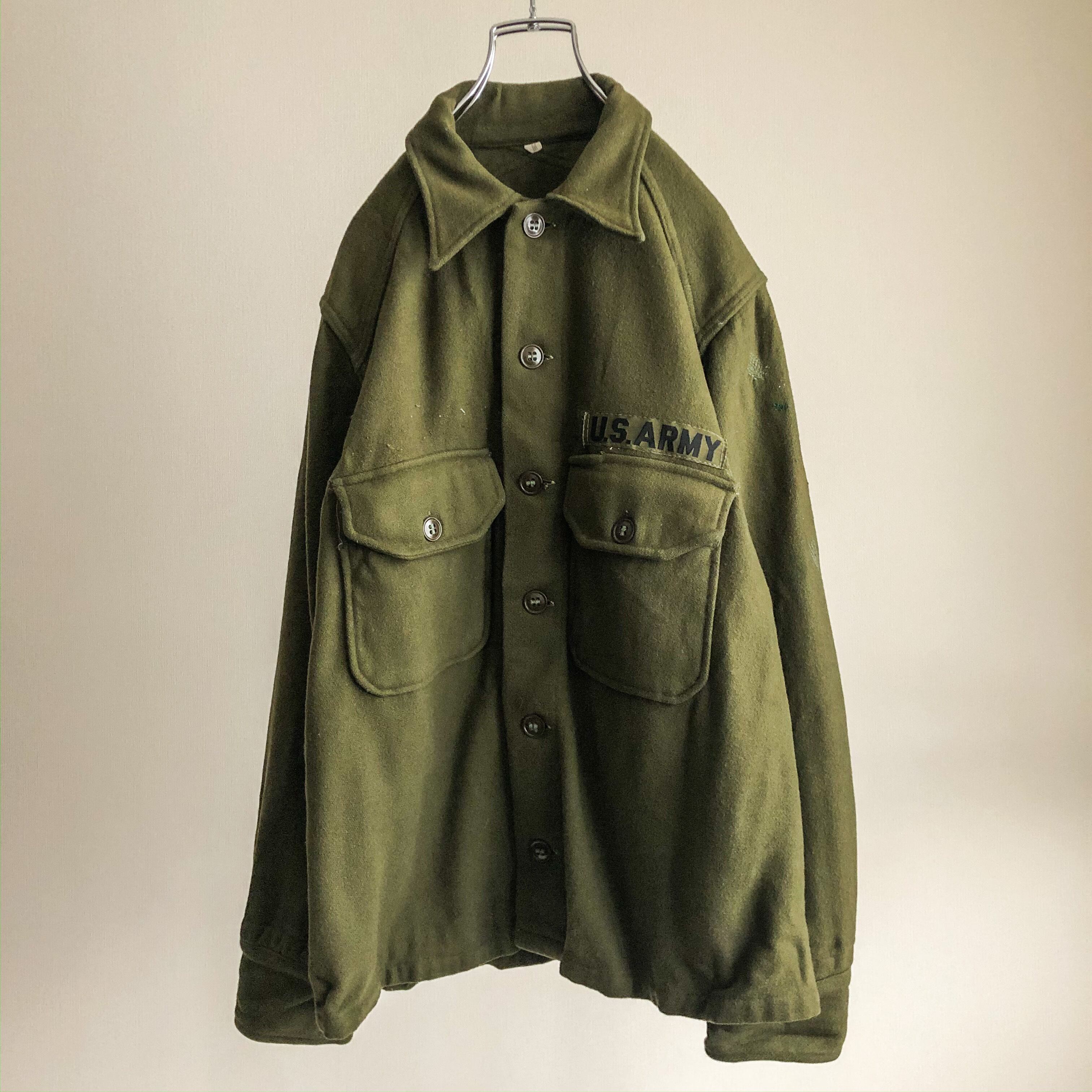 特徴 :ミリタリーらしいオリーブカラーでしっかりとした質感のウールが使用された50年代頃のUS ARMYのヴィンテージウールシャツ。