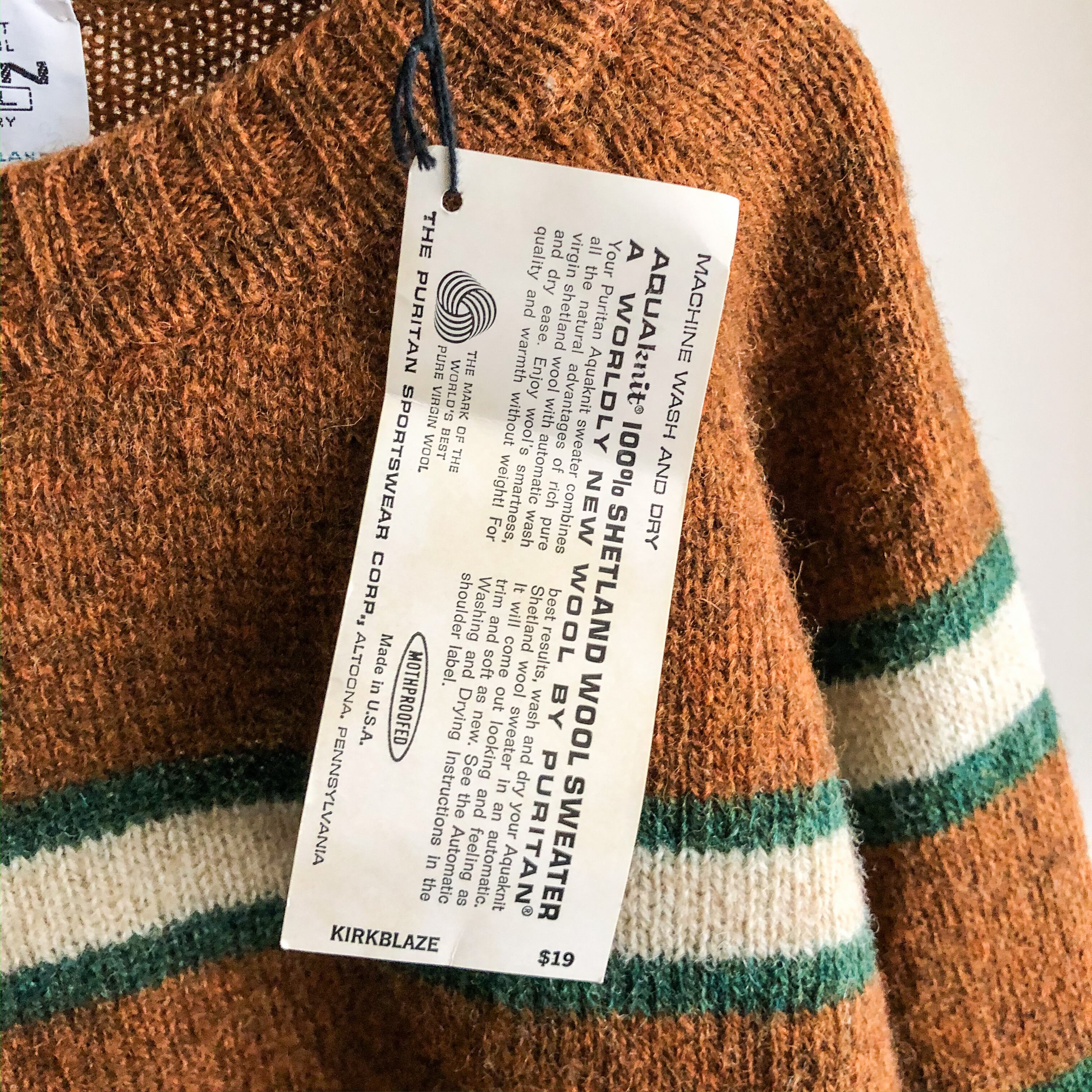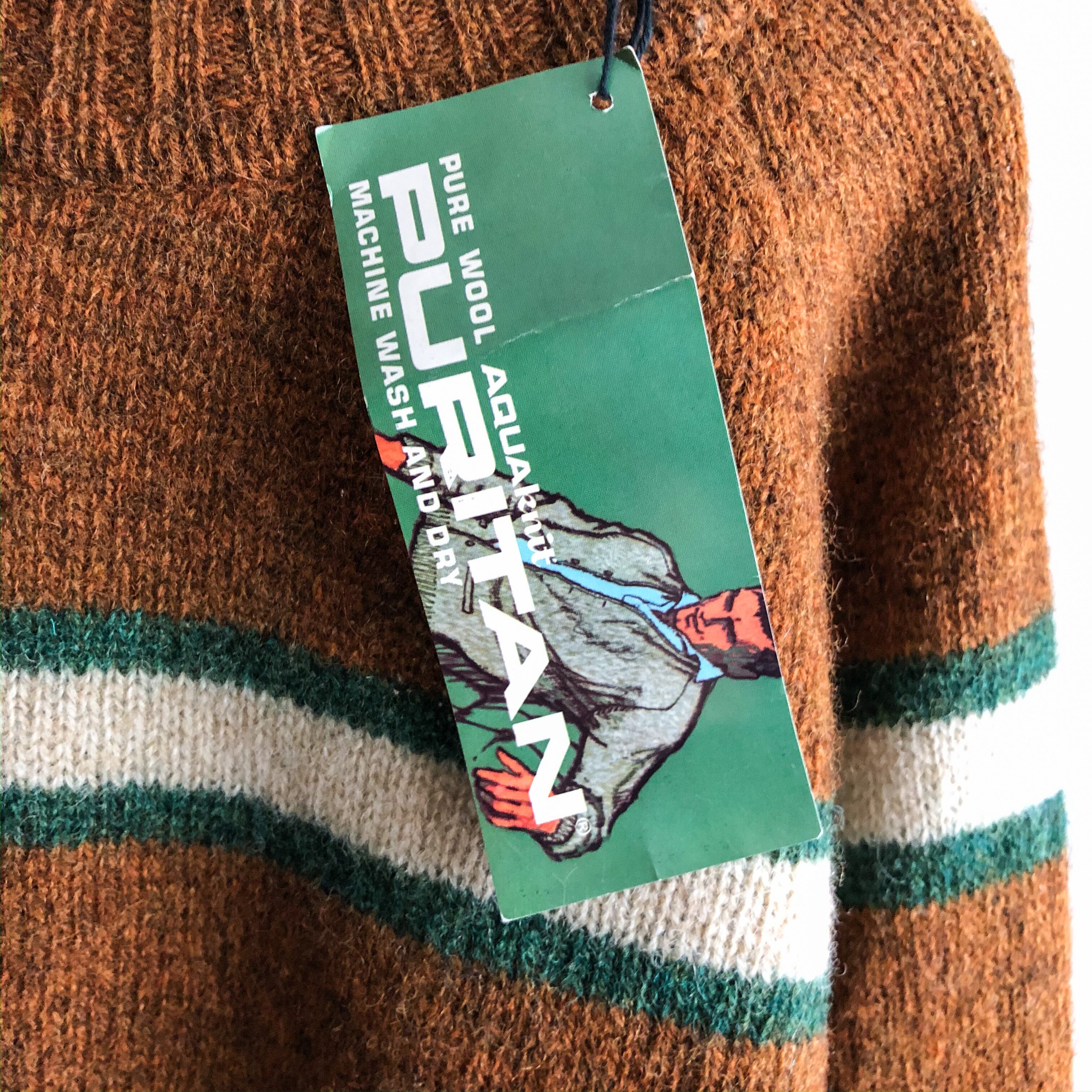 Dead Stock! Vintage 1970s "PURITAN" Brown border pattern wool sweater made in USA