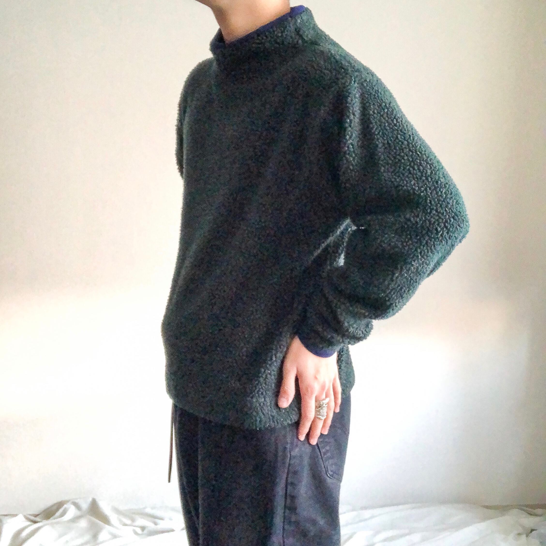 広めのモックネックとシンプルなプルオーバーデザインで近年ビンテージ市場でも評価が高いアイテムの一つでしょう。